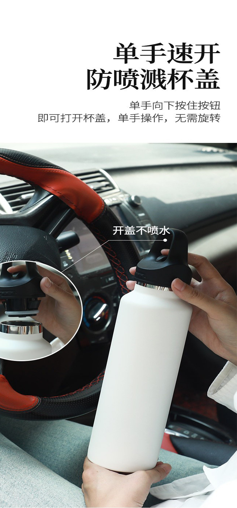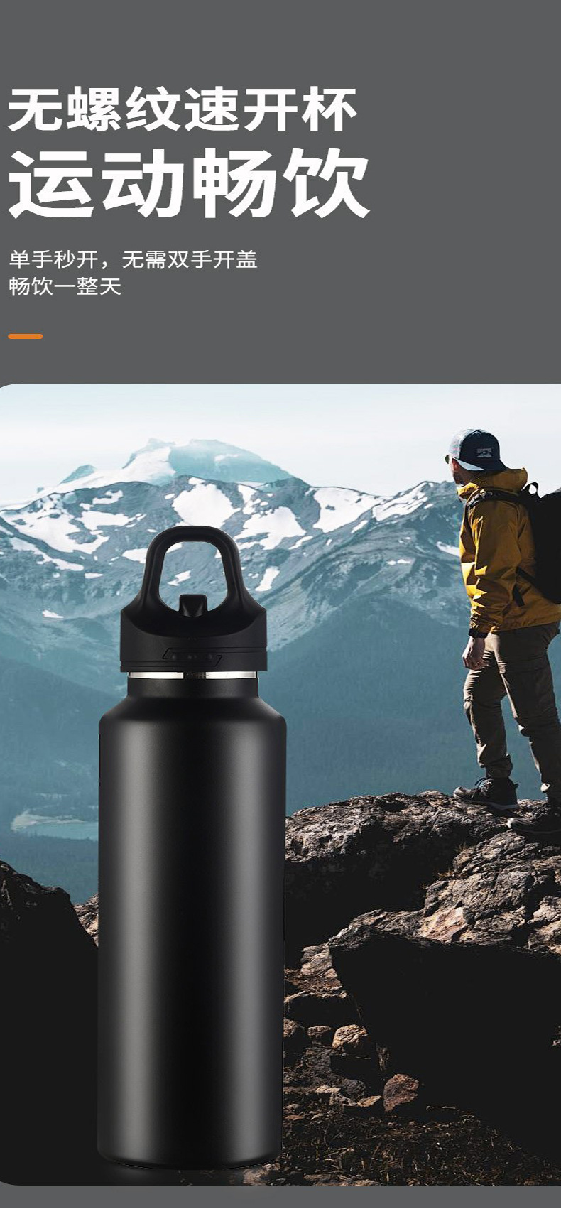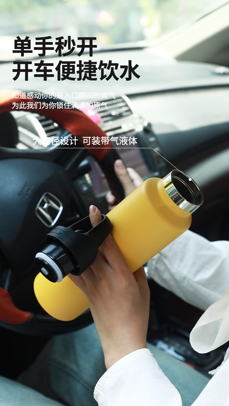 新款无螺纹单指速开保温杯316保温壶真空保冷水杯不锈钢运动水壶