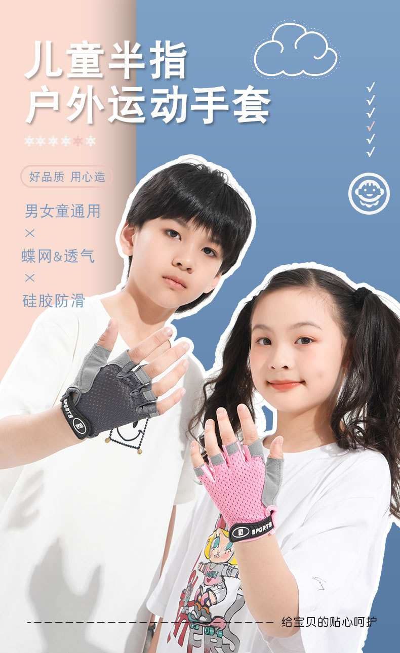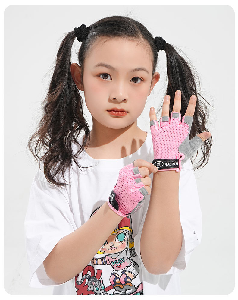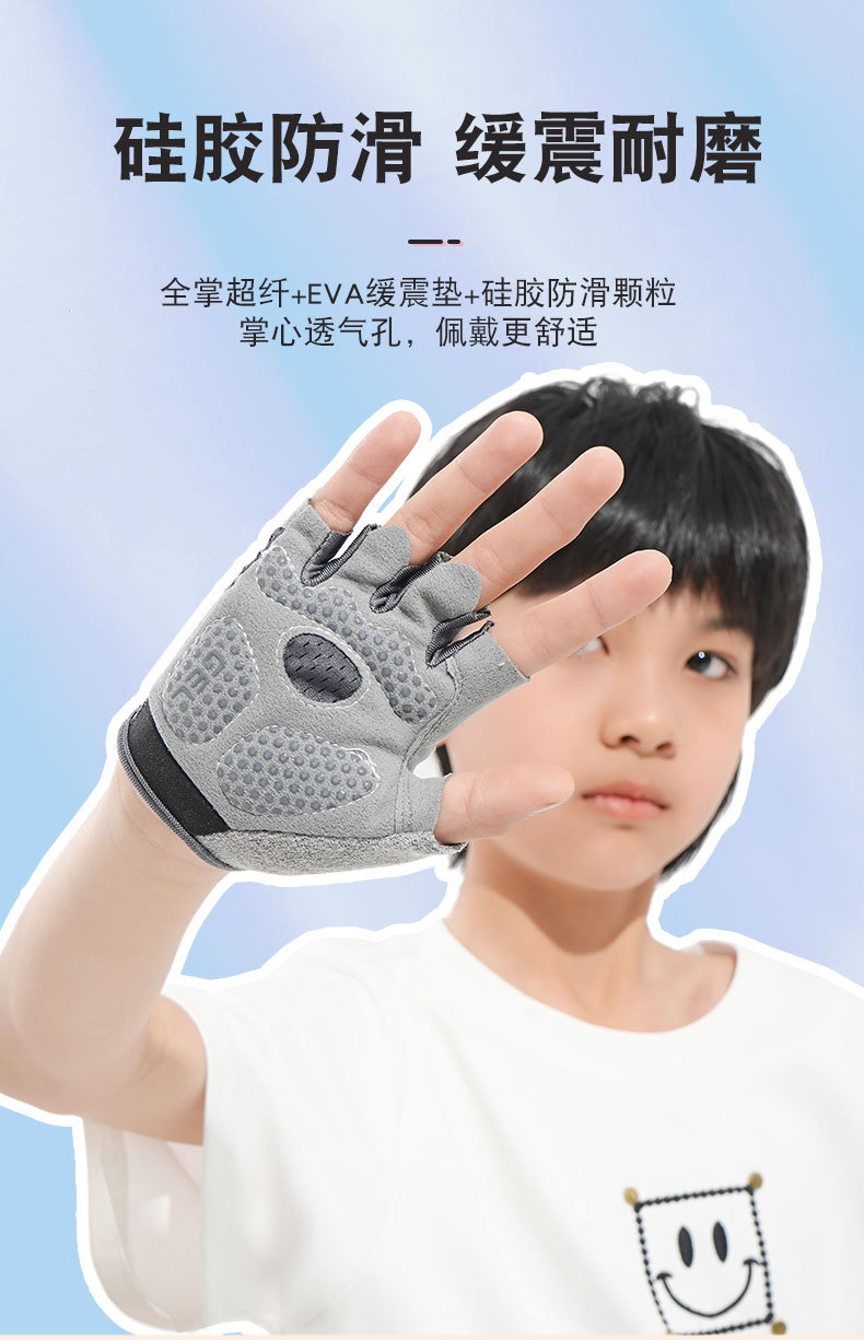 儿童薄款半指男女童滑轮平衡车防滑单杠防护棒球骑行运动健身手套