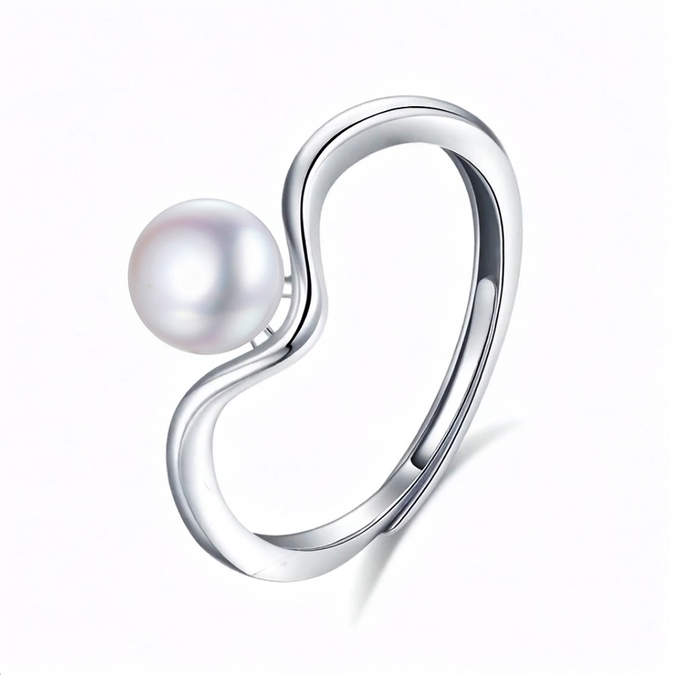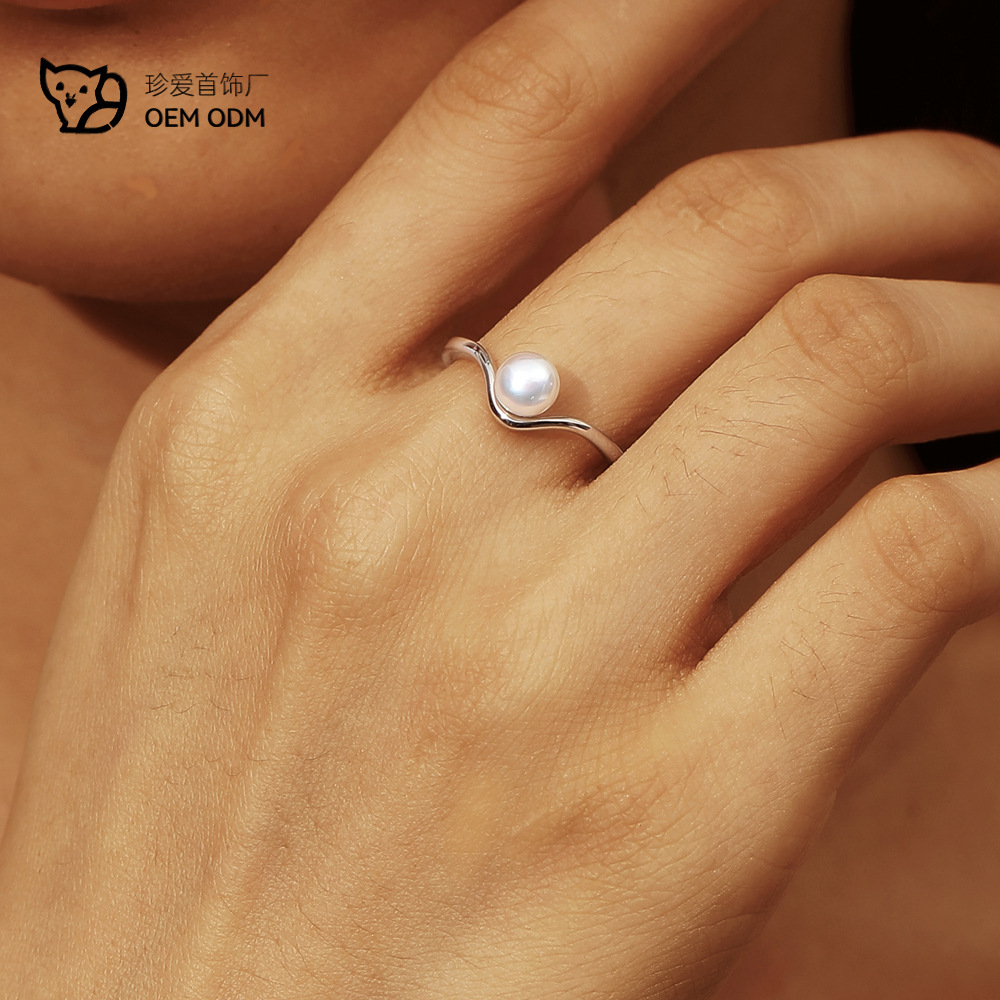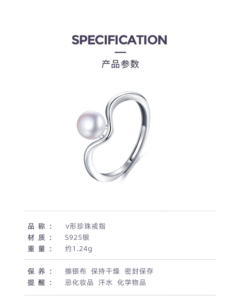 925纯银天然淡水珍珠v形戒指几何不规则女ins风小众设计简约百搭