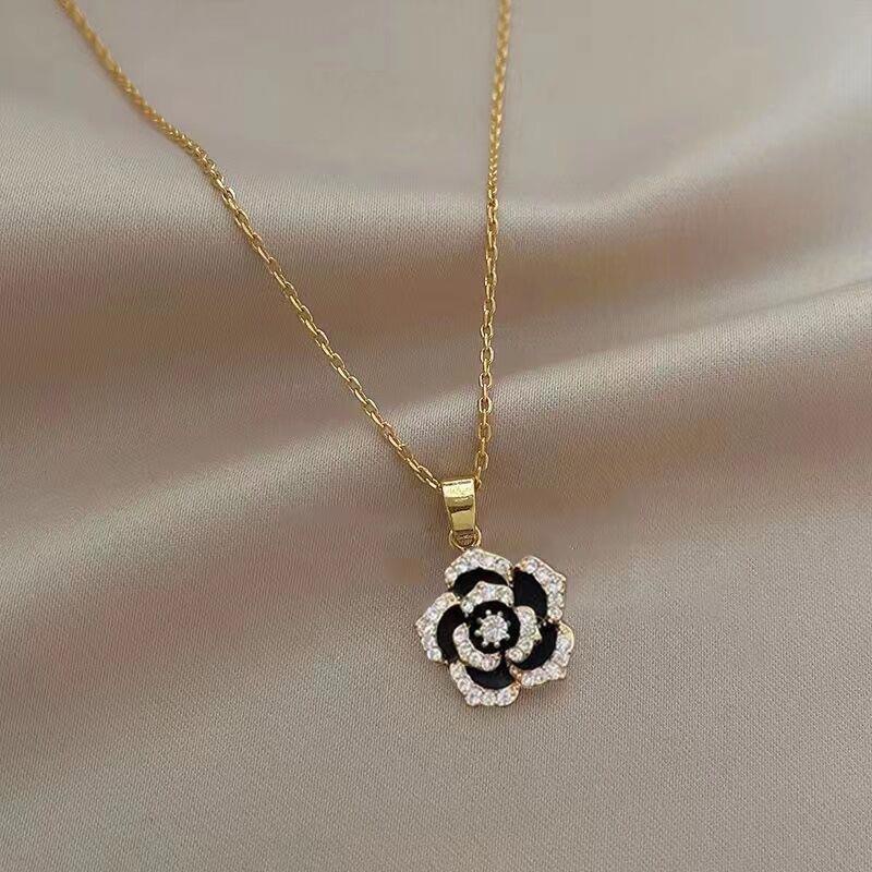 设计感小众黑色山茶花项链女锁骨链2022年新款ins简约气质颈链夏
