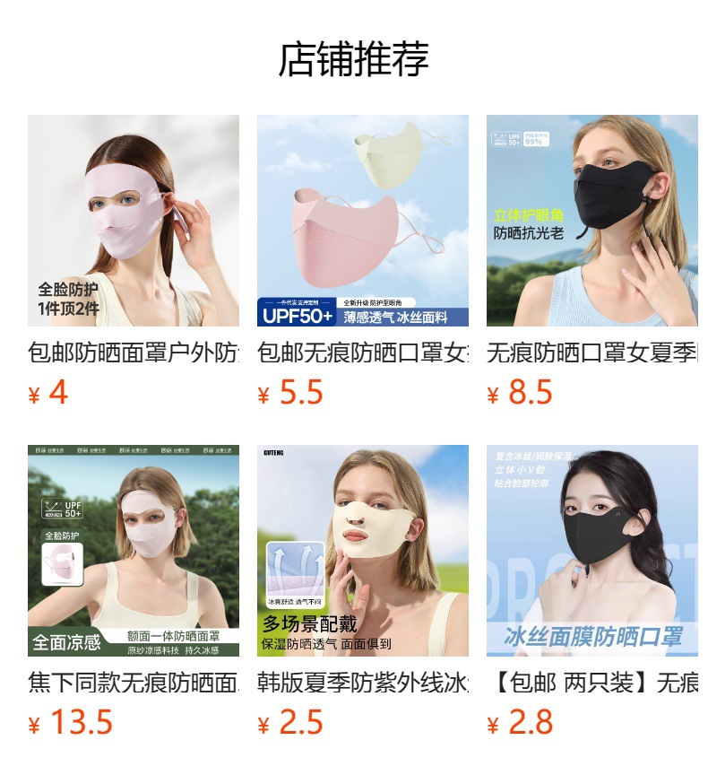 包邮夏季无痕防晒口罩女护眼角防紫外线遮阳透气冰丝薄款面罩便携