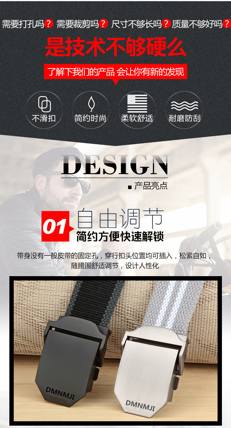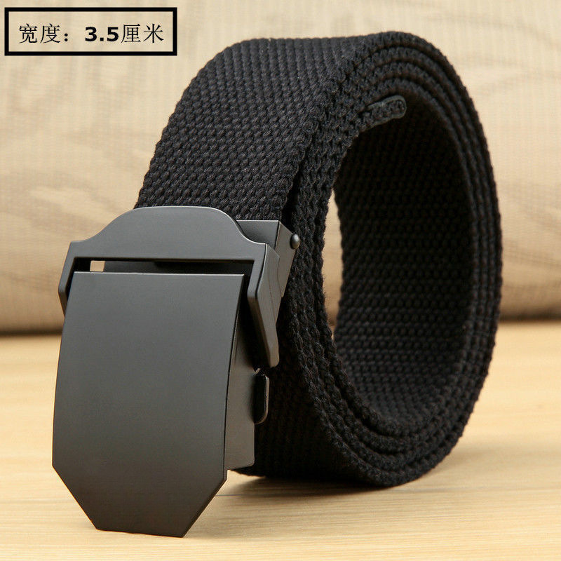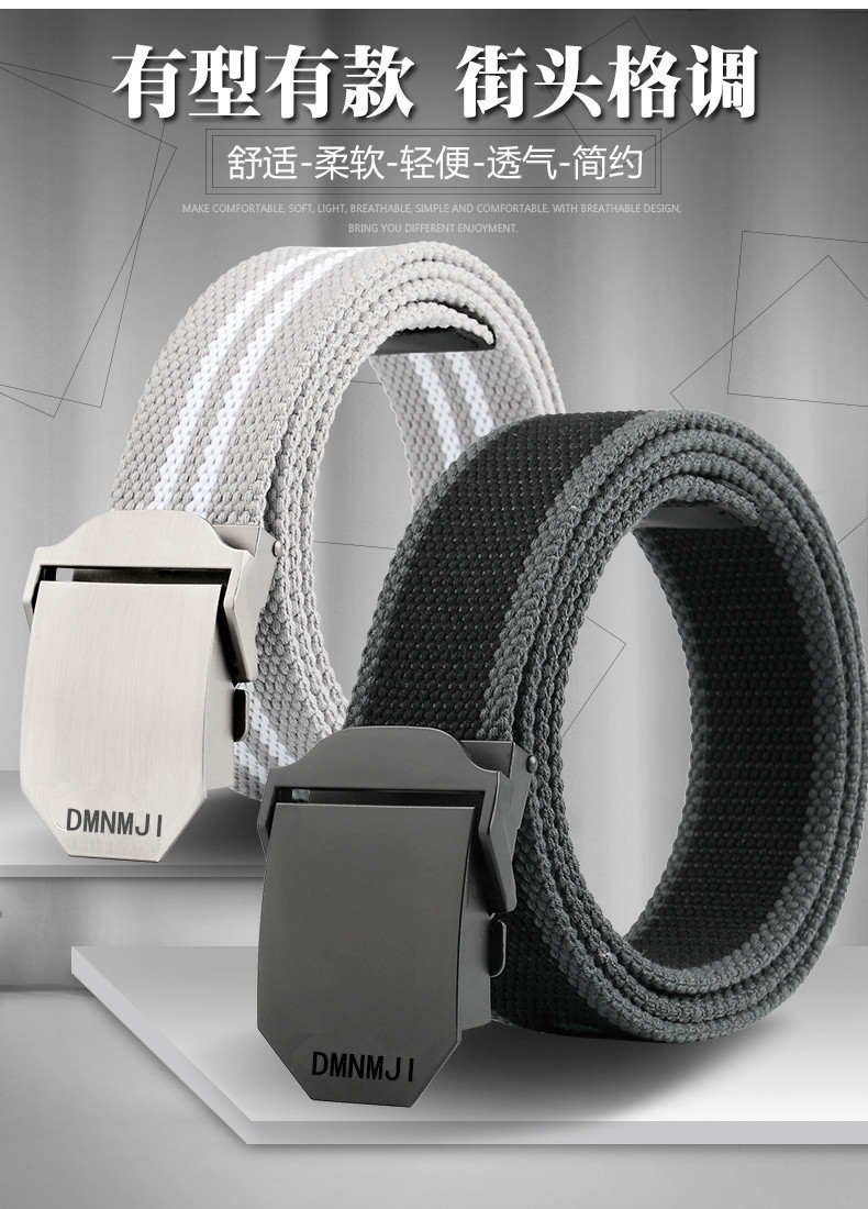 帆布腰带男士自动扣平滑扣皮带休闲工装裤带韩版学生青年军训户外