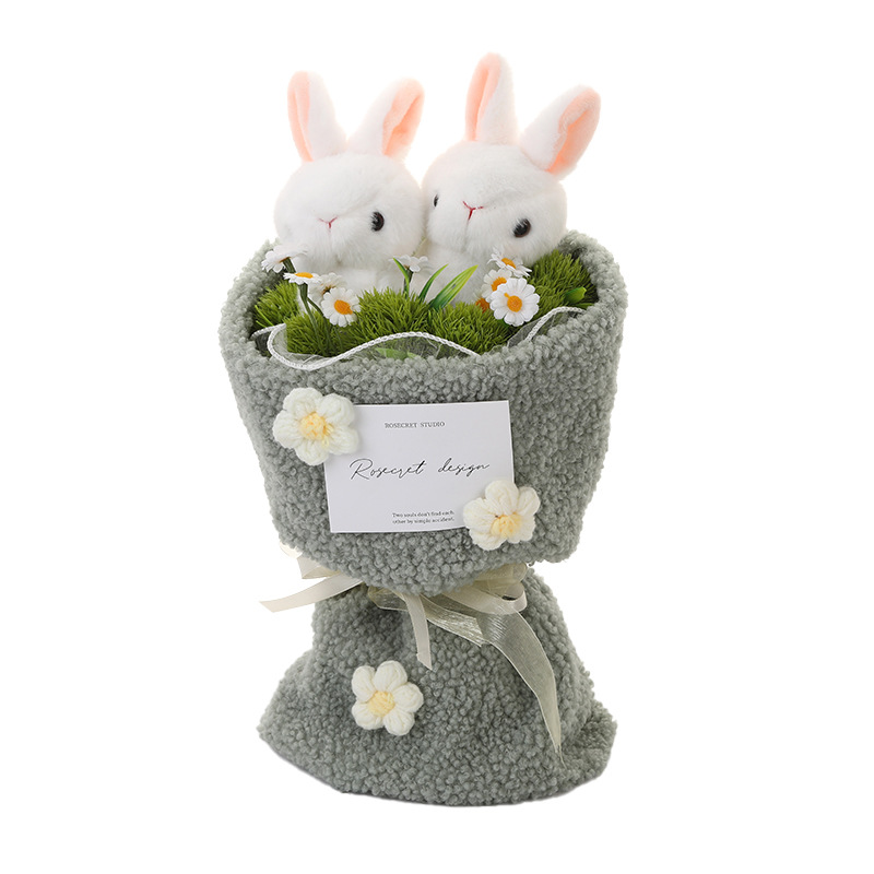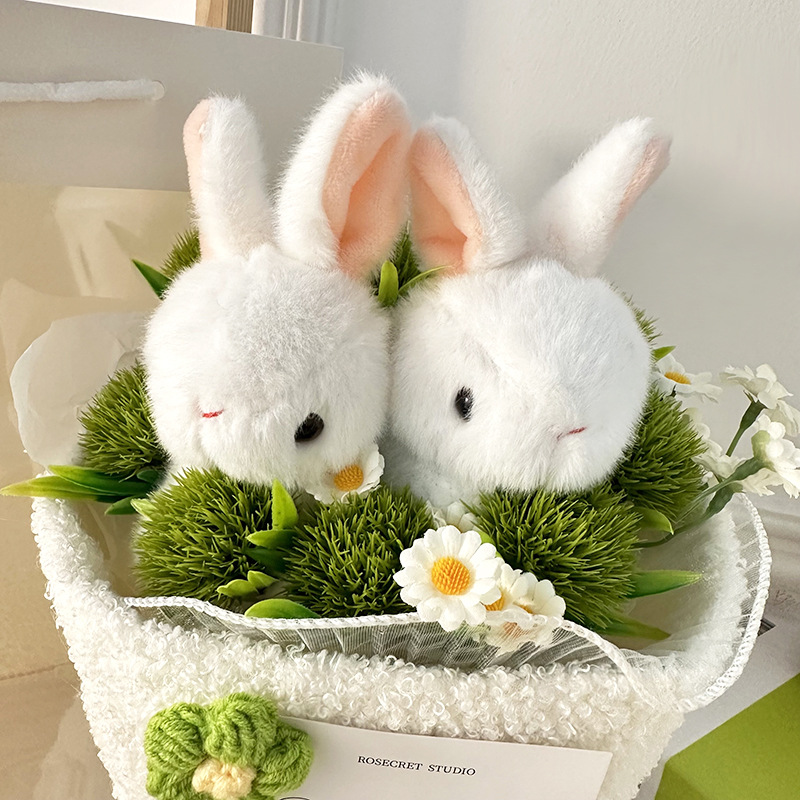 网红款兔子吃草玩偶毛绒花束七夕情人节送女友手工编织手捧花带灯