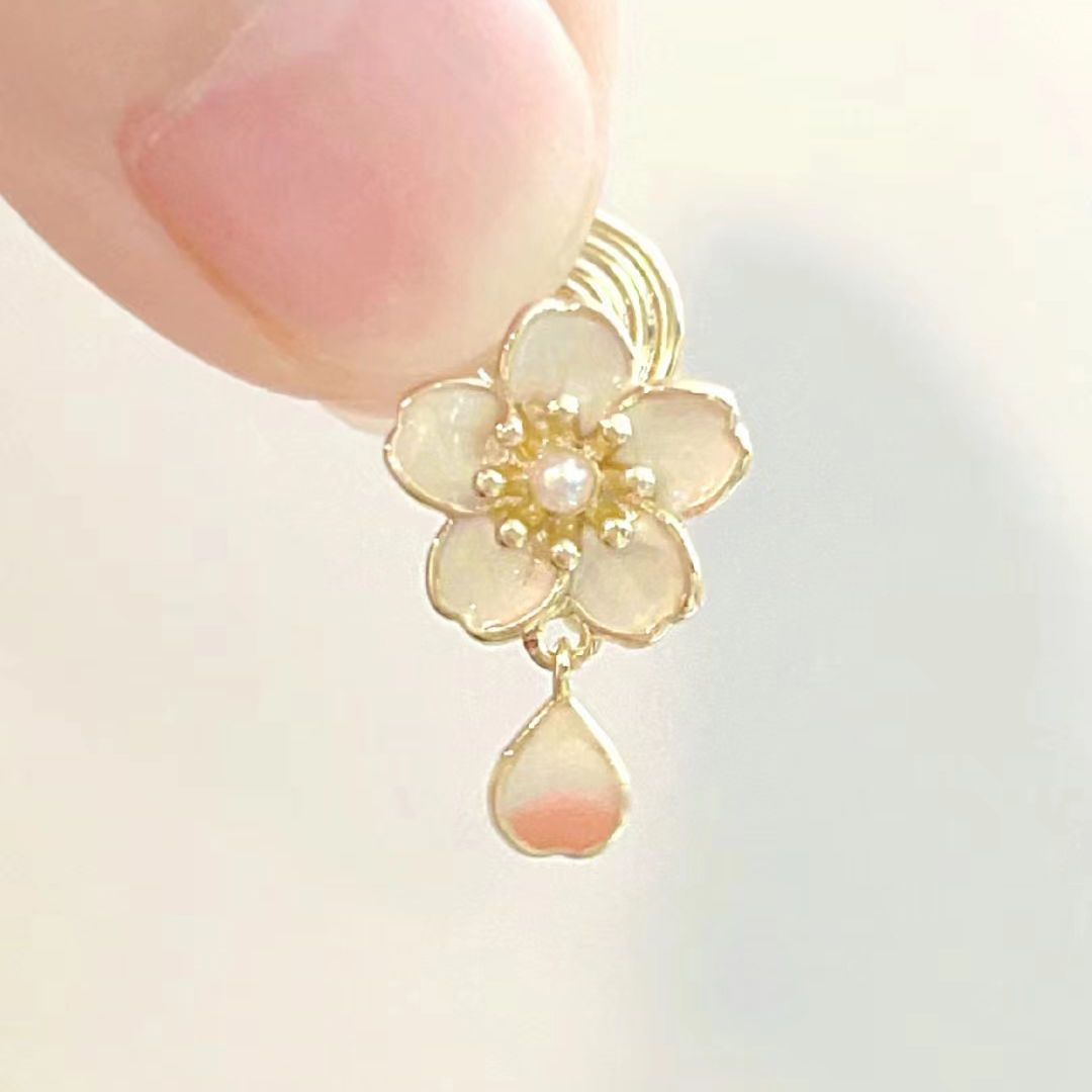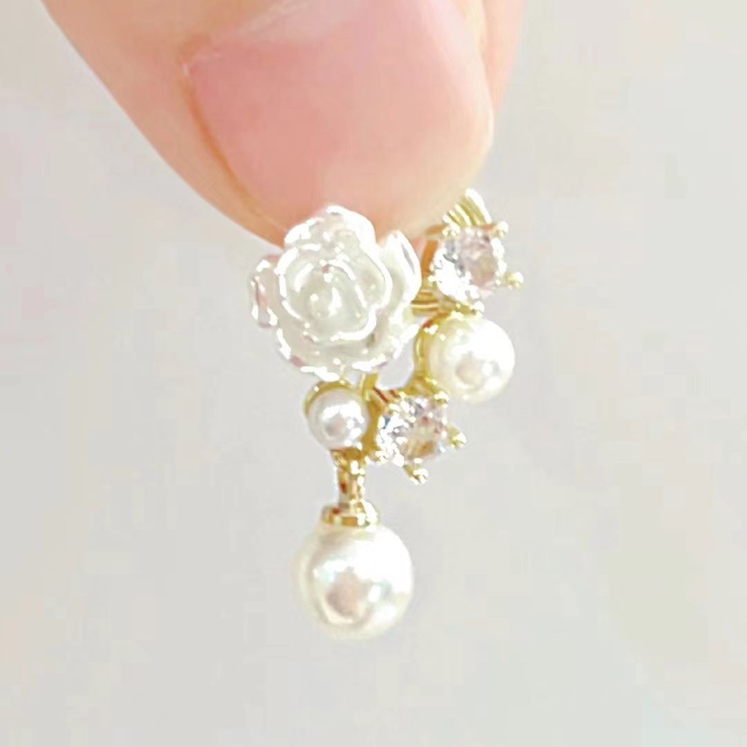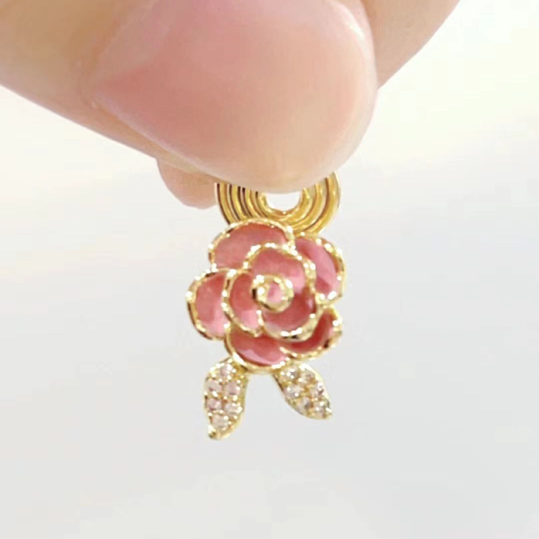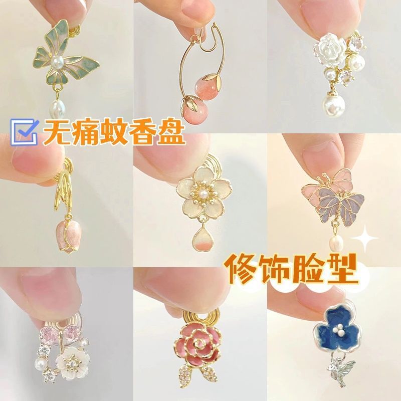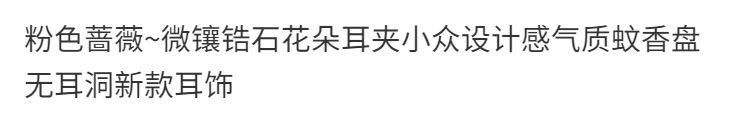 粉色蔷薇~微镶锆石花朵耳夹蚊香盘无耳洞新款气质小众设计感耳饰
