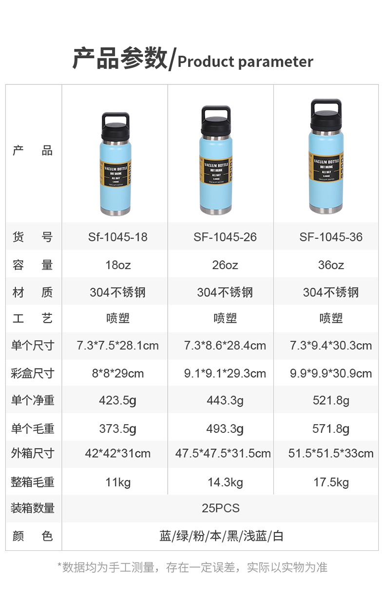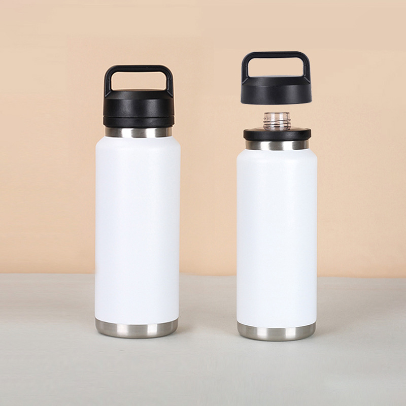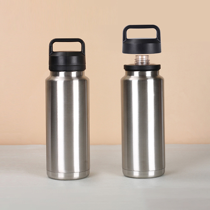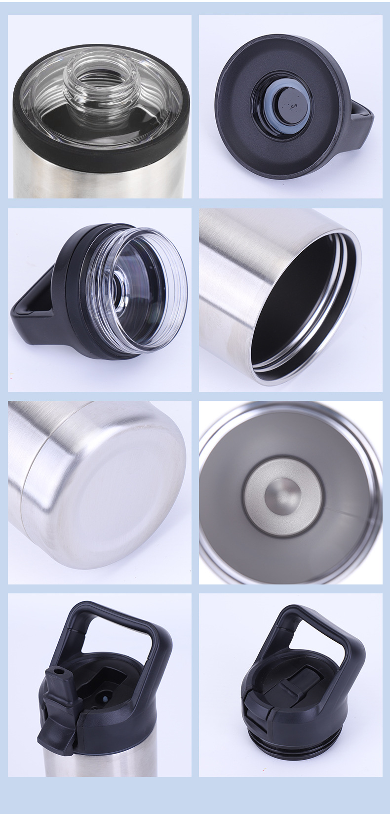 跨境双层真空不锈钢保温杯双盖手提式旅行壶大容量户外运动水壶