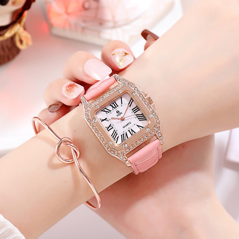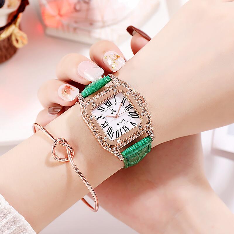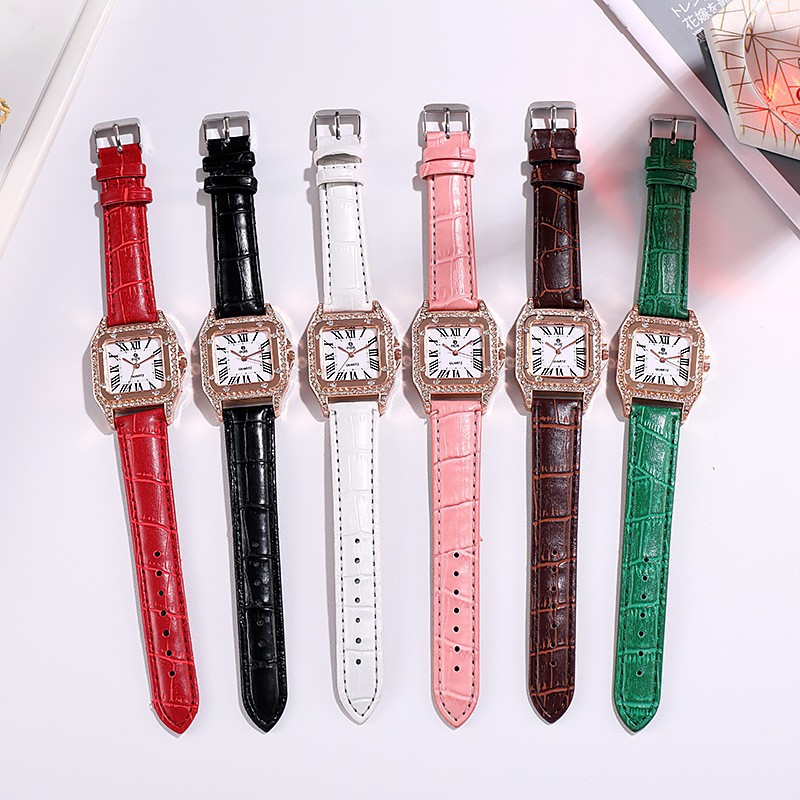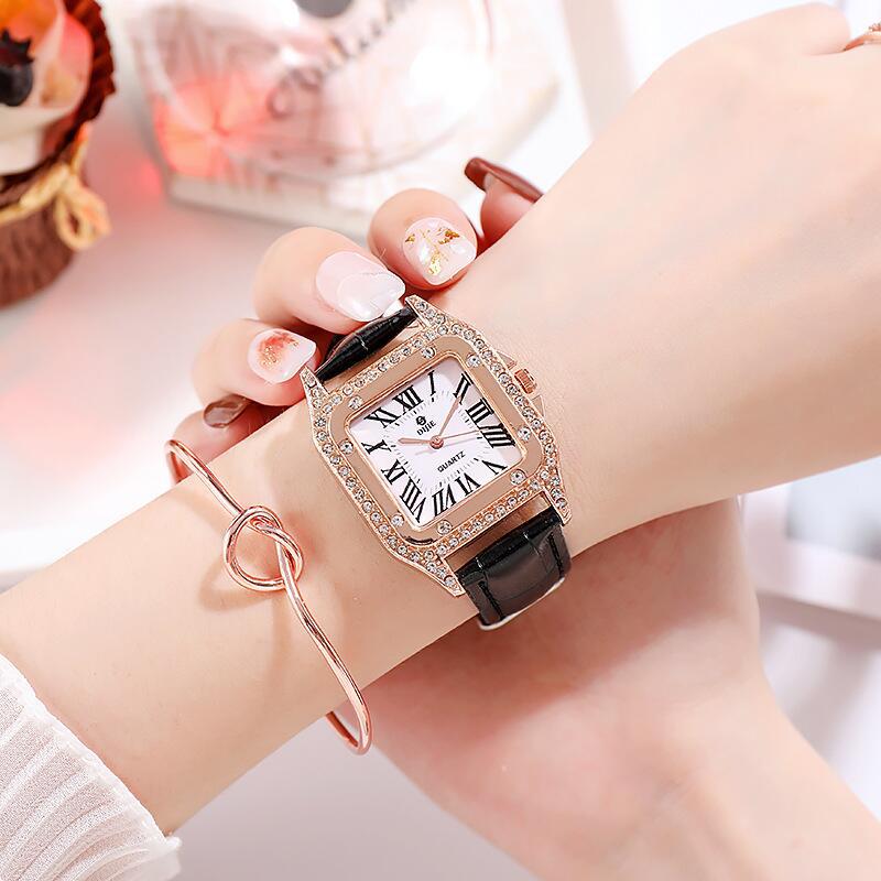 韩国高档流行罗马小清新文艺女士水钻表时尚潮流皮带腕表石英手表