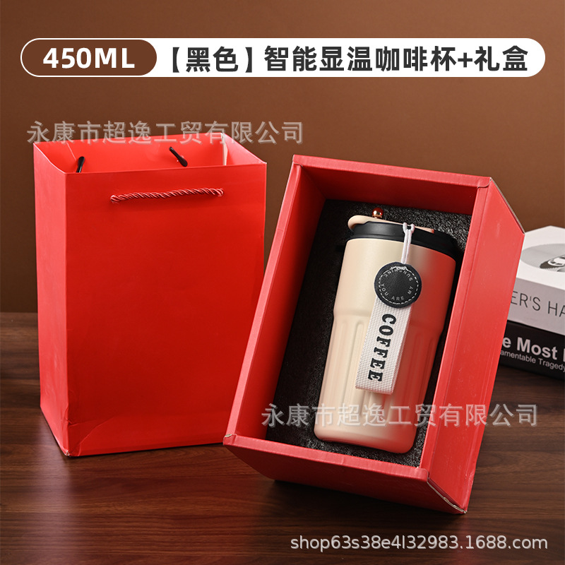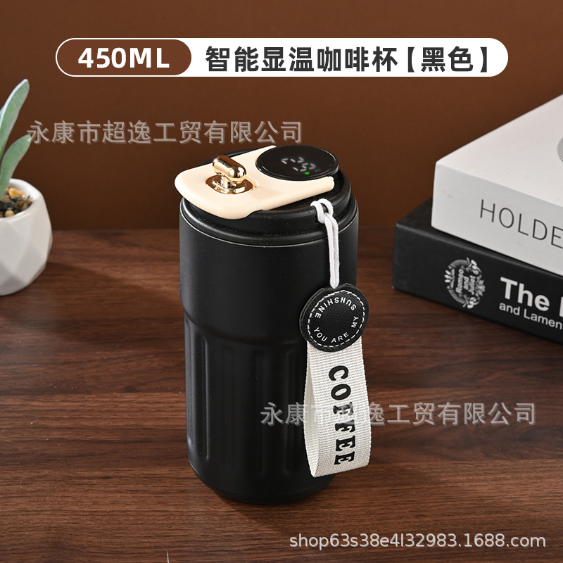 跨境智能显温家用咖啡杯316不锈钢保温杯随行杯车载杯子便携水杯