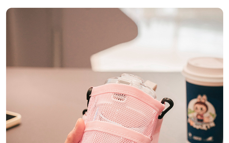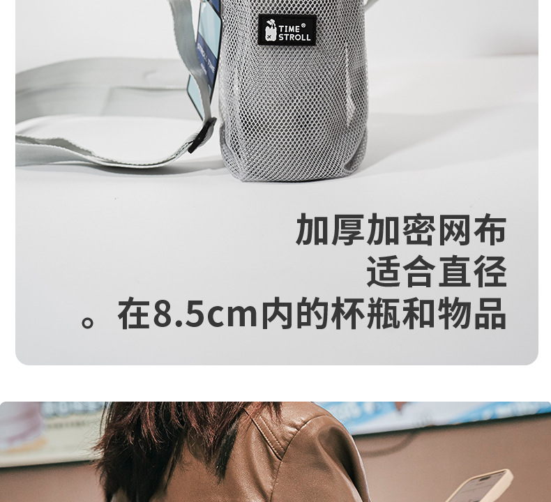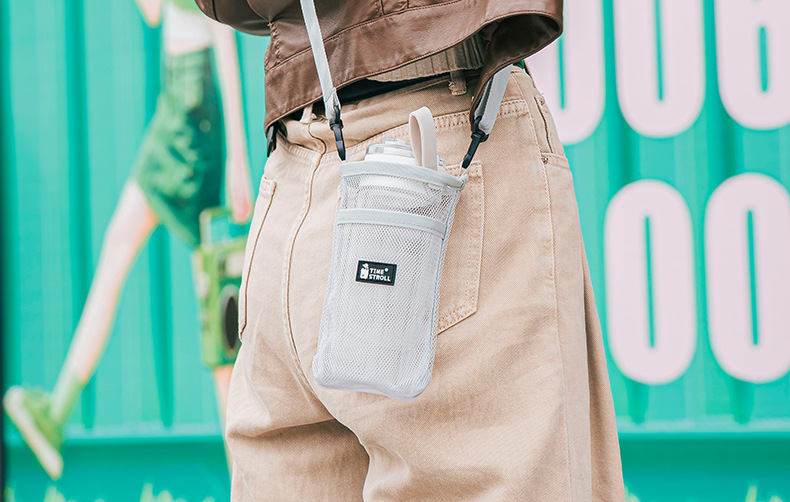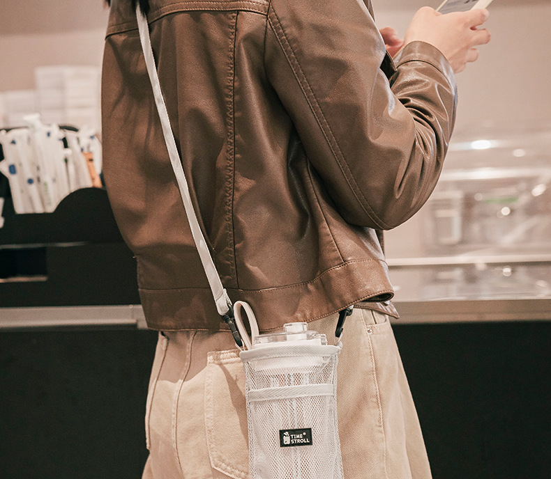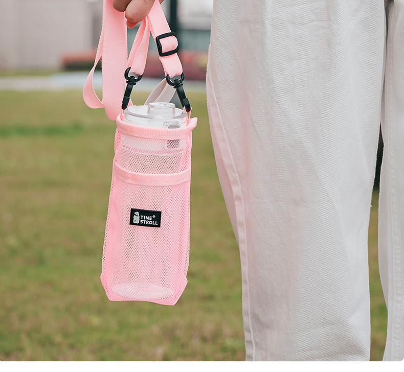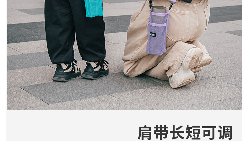 户外水杯套保护袋网格背带,可斜挂矿水泉饮料奶茶保温杯杯套袋