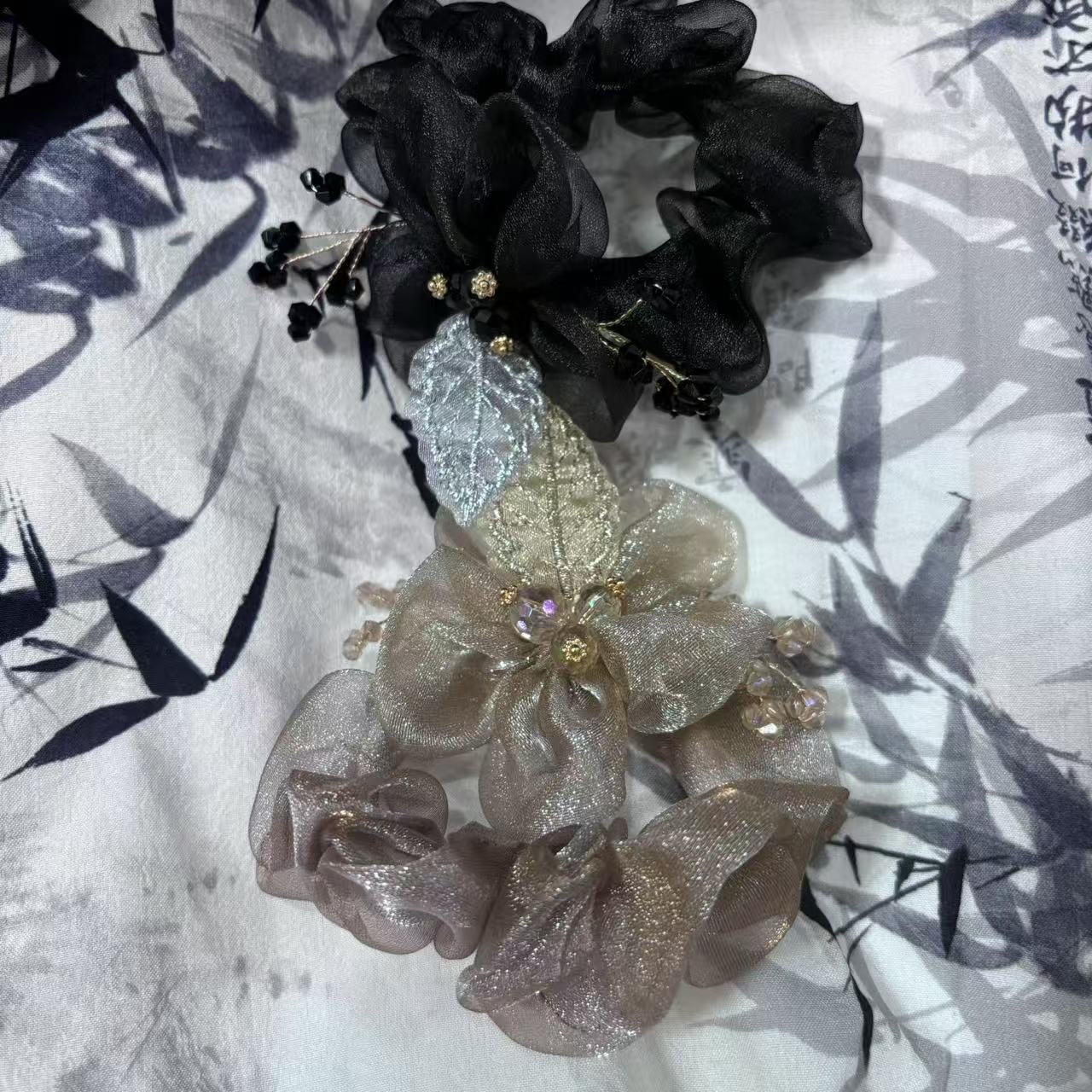 满天星欧根纱大肠发圈女高级感发绳盘发丸子头头花头饰打结