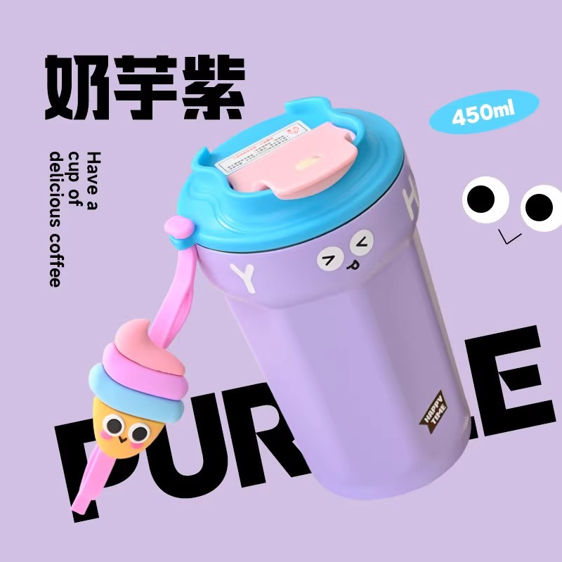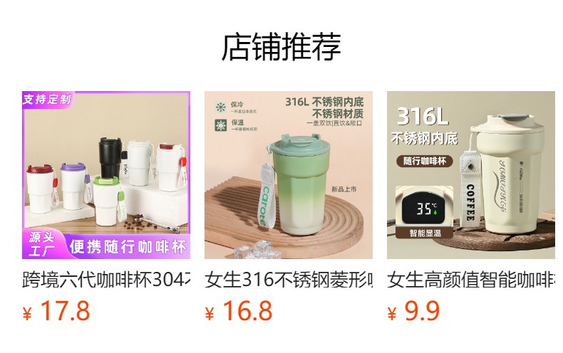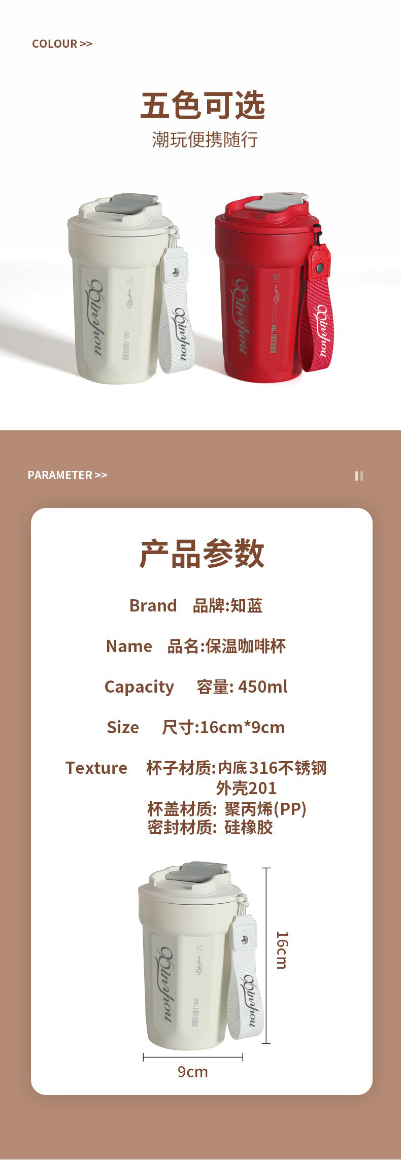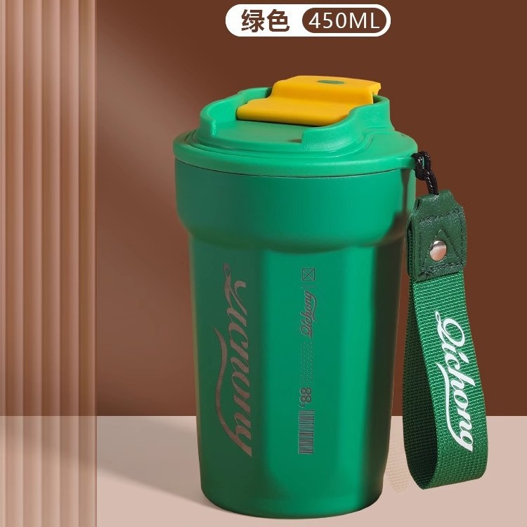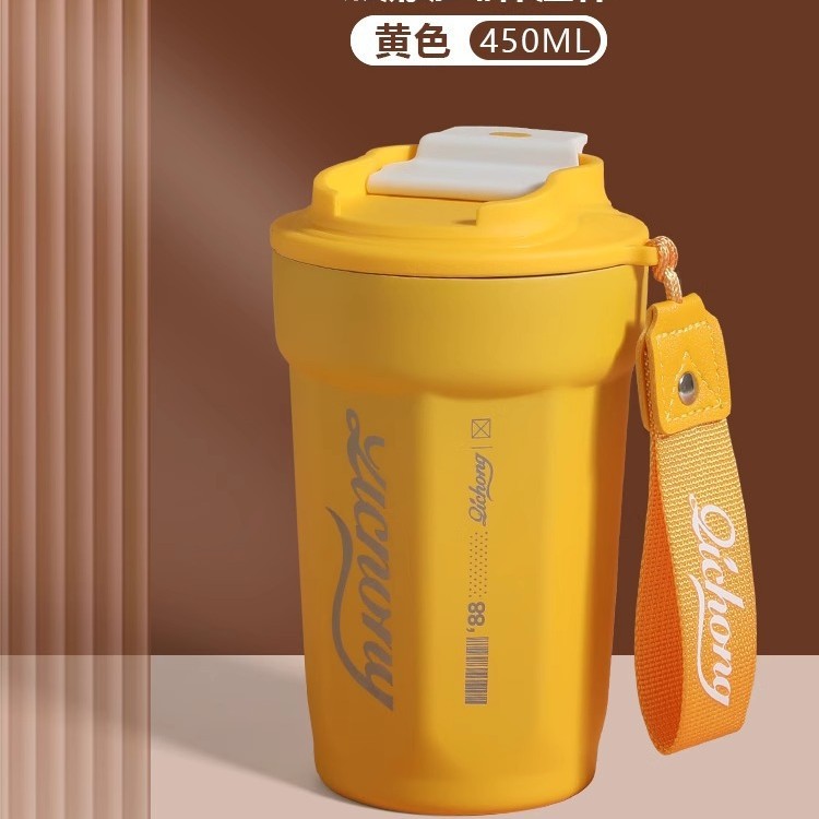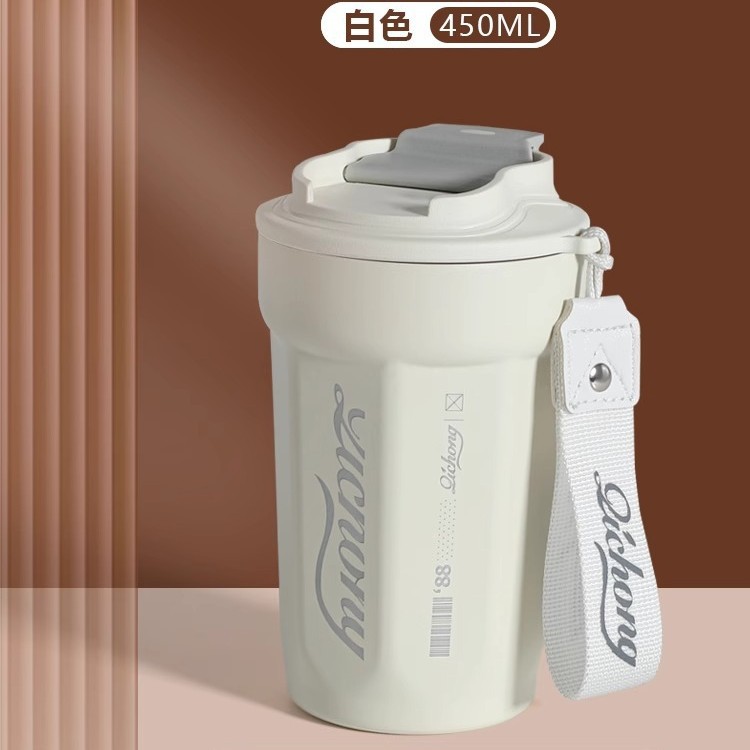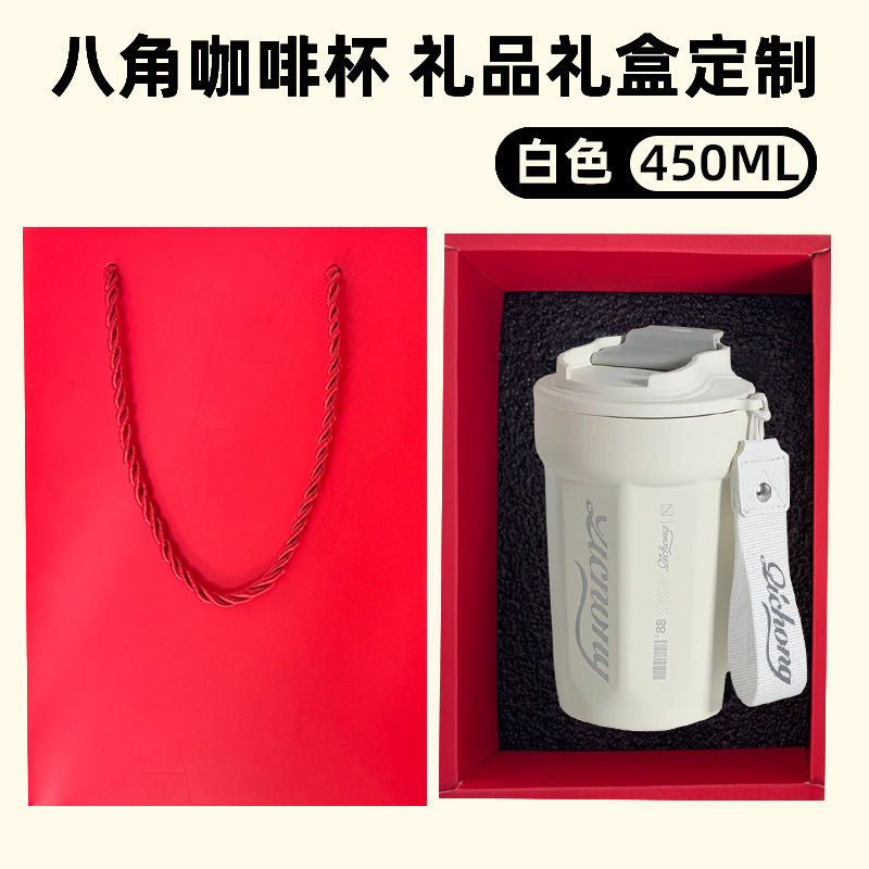 高颜值316不锈钢八角咖啡杯户外便携带提绳随手杯双层真空保温杯