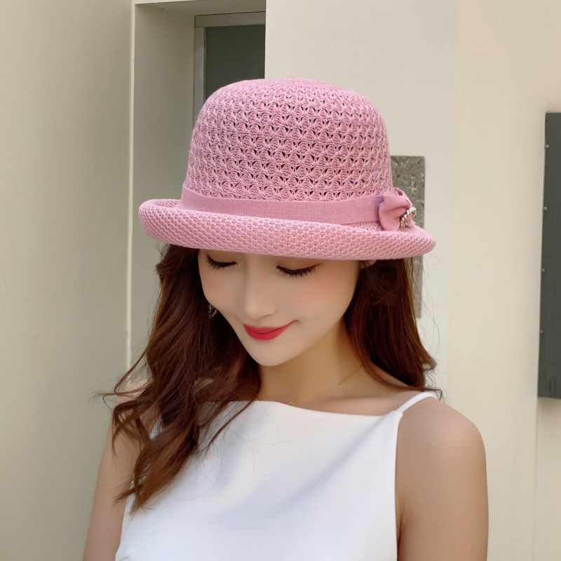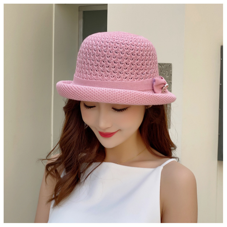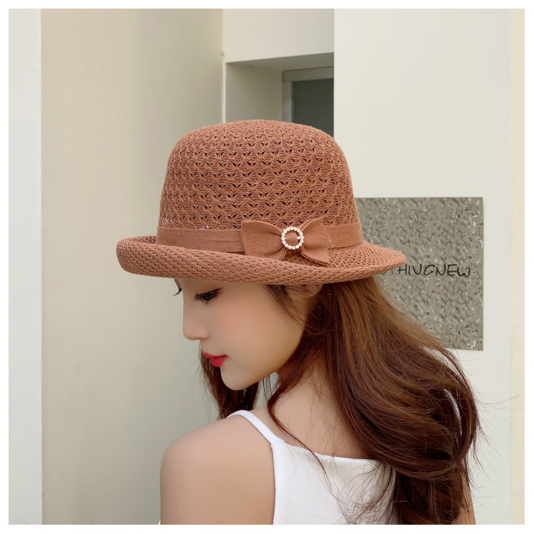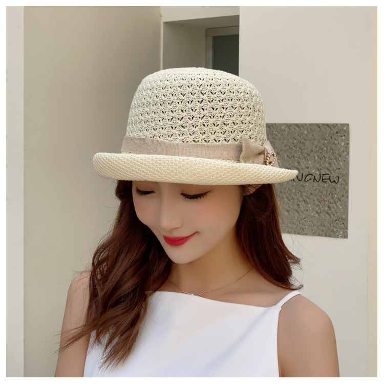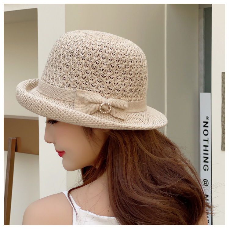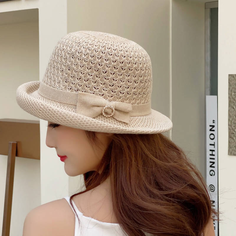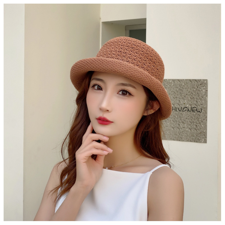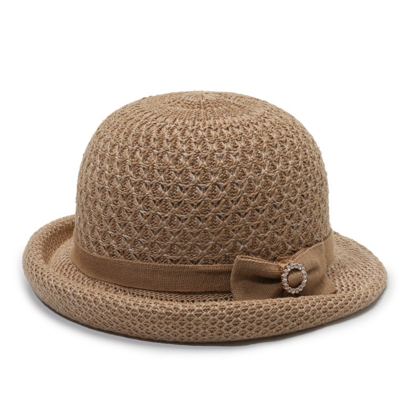 小礼帽夏季新款时尚百搭编织帽子卷边妈妈遮阳帽厂家批发复古风