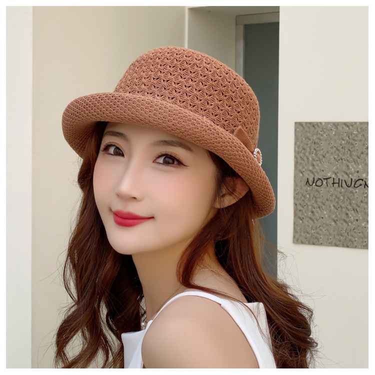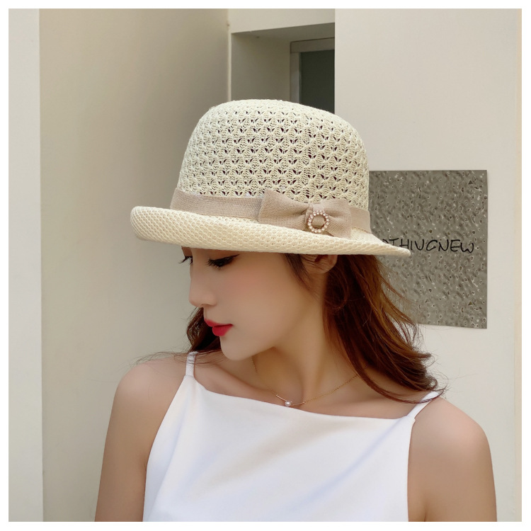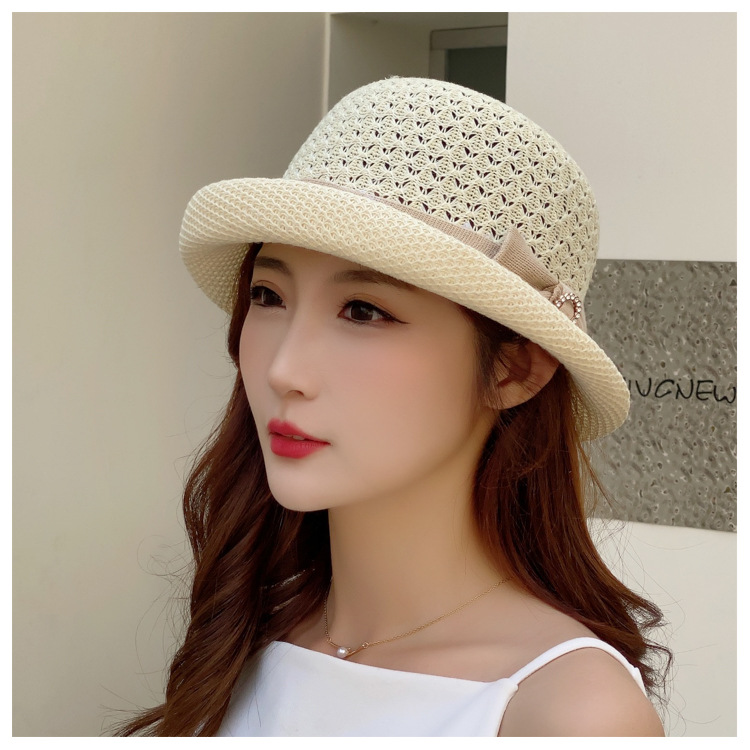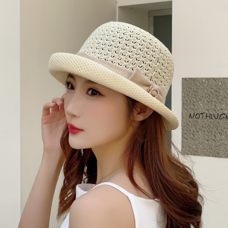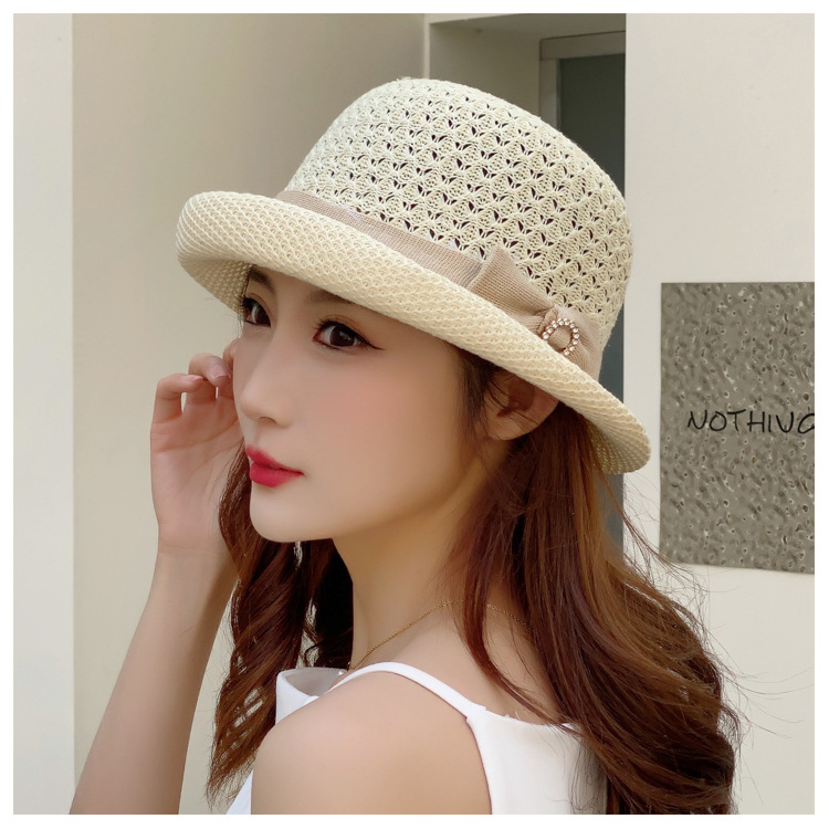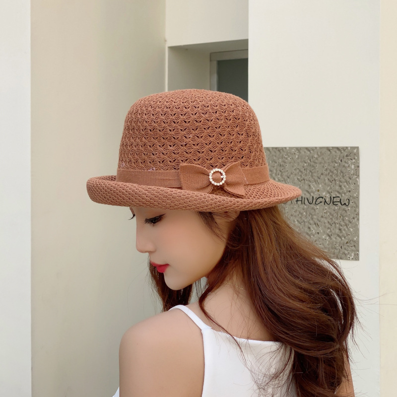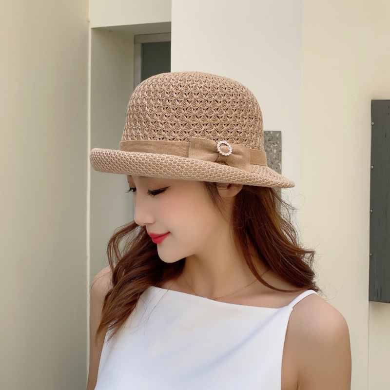 小礼帽夏季新款时尚百搭编织帽子卷边妈妈遮阳帽厂家批发复古风
