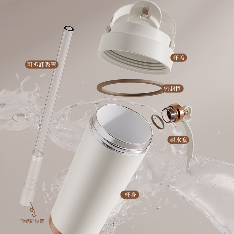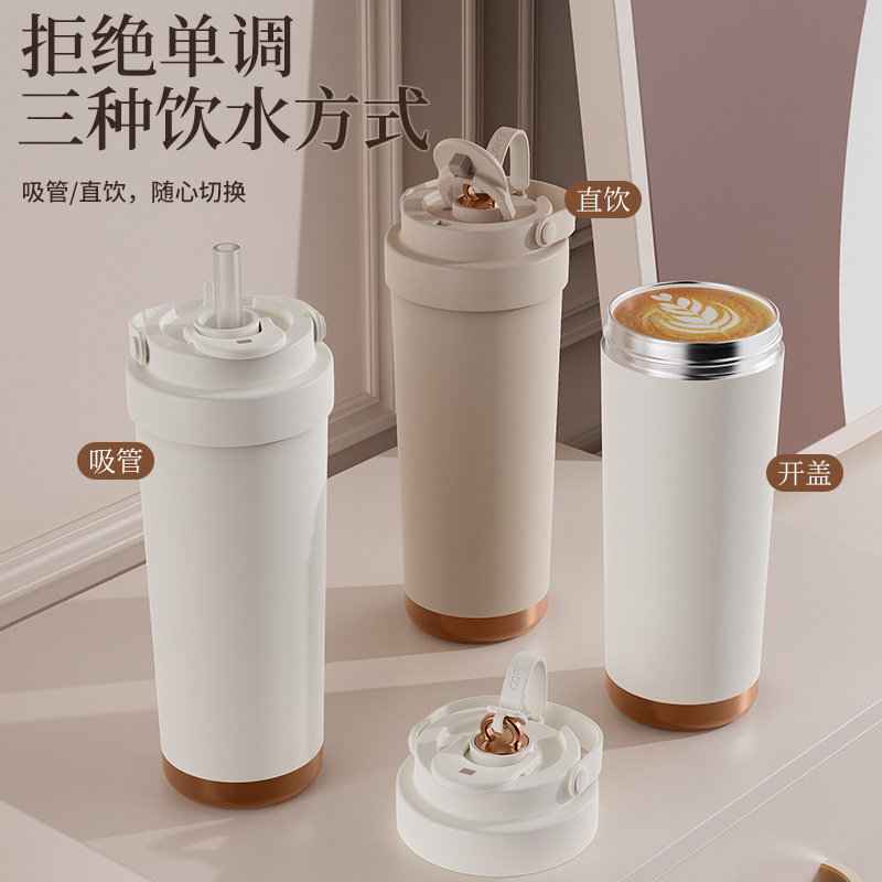 高颜值大容量陶瓷内胆保温杯男女士学生便携带吸管双饮车载咖啡杯