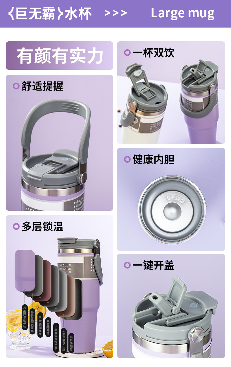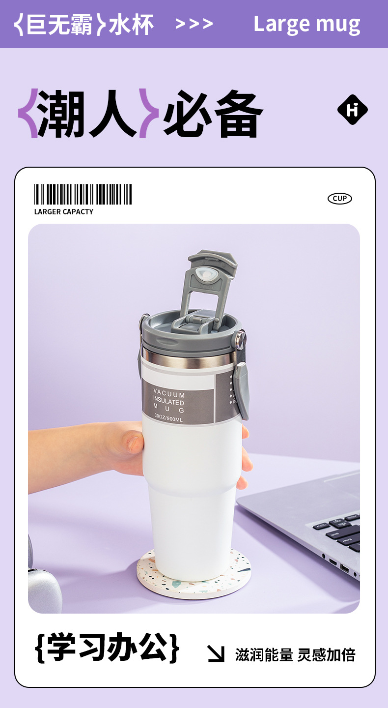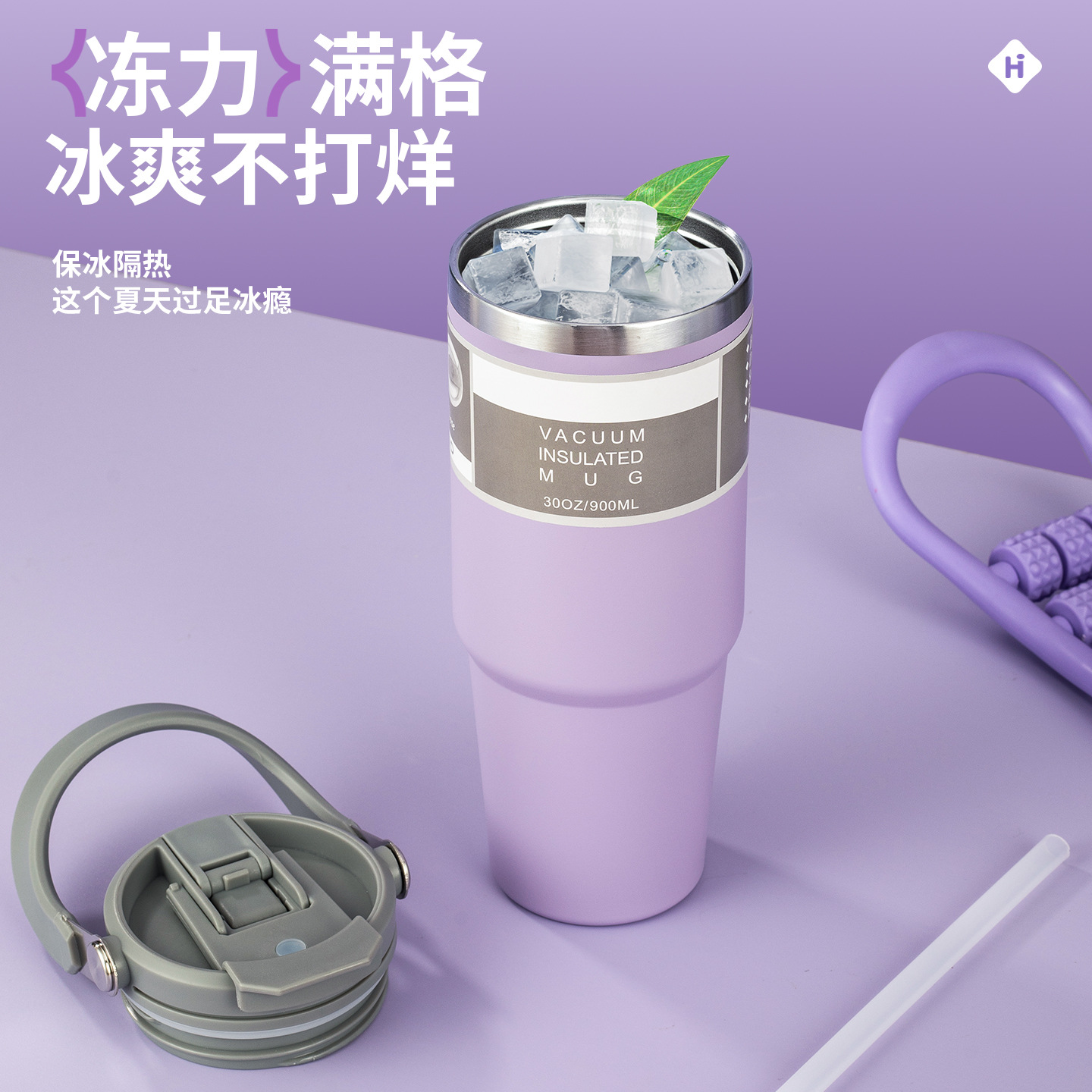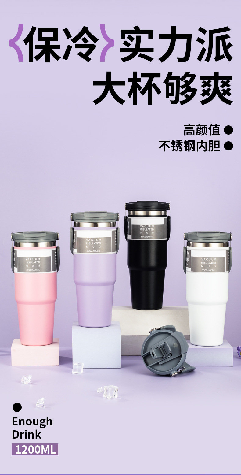 保温杯高颜值汽车杯不锈钢车载冰霸杯便携巨无霸真空手提吸管水杯