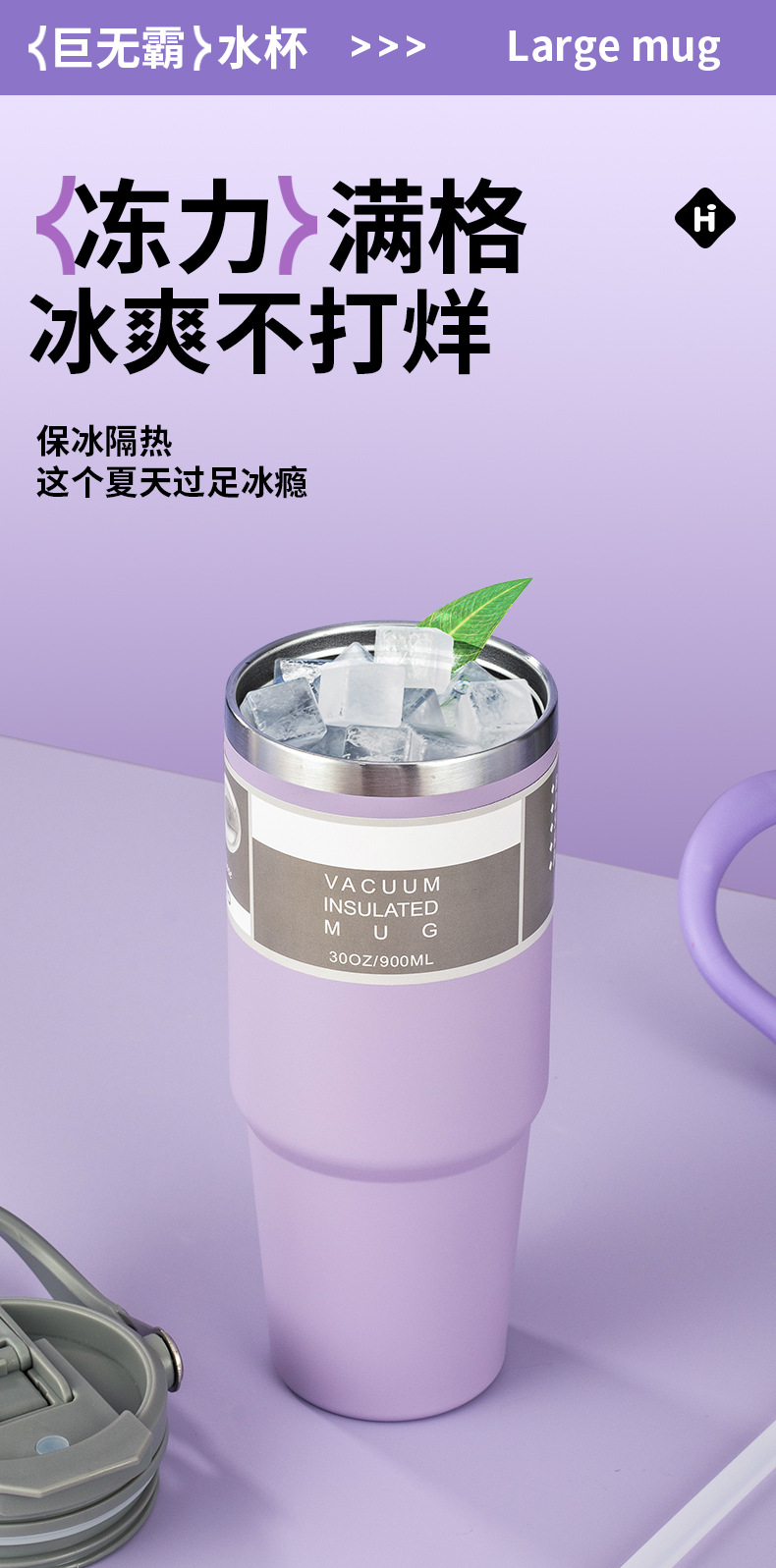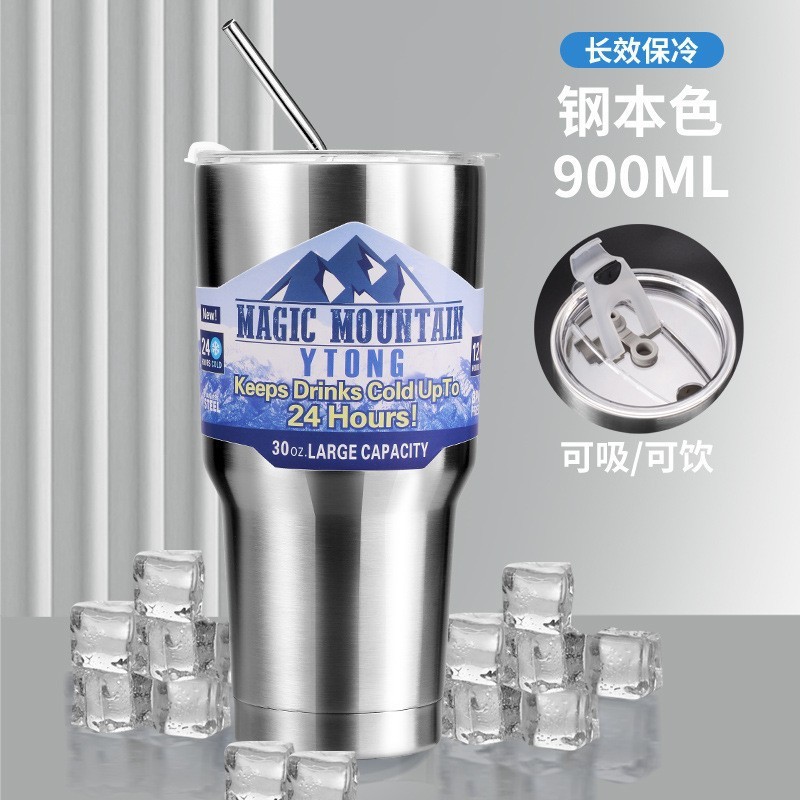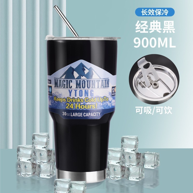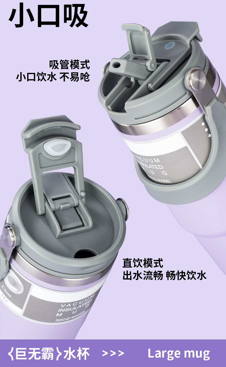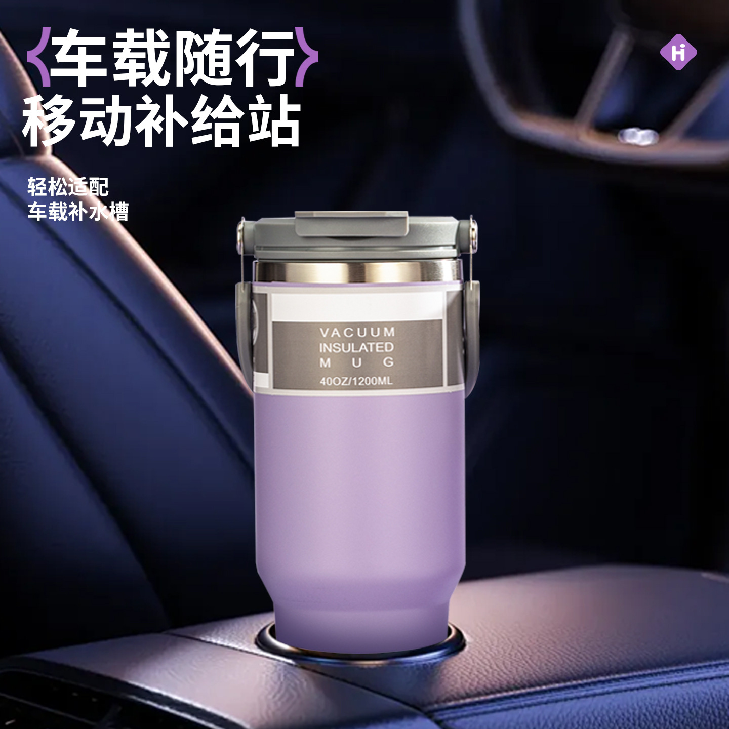保温杯高颜值汽车杯不锈钢车载冰霸杯便携巨无霸真空手提吸管水杯