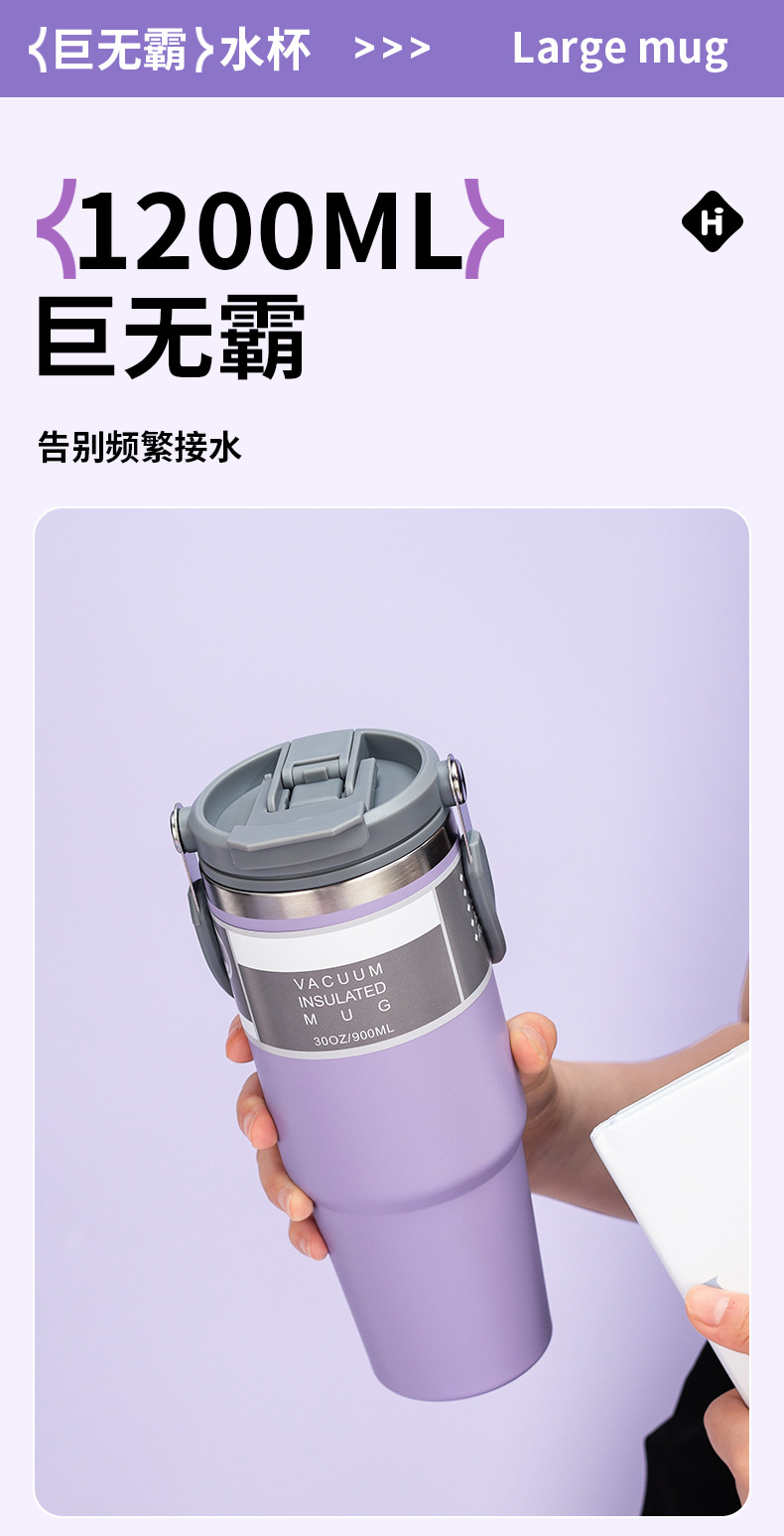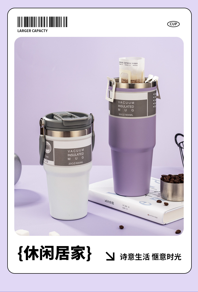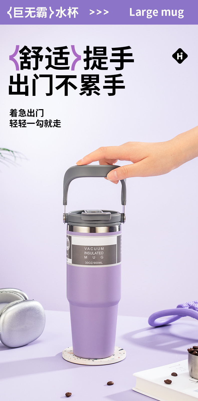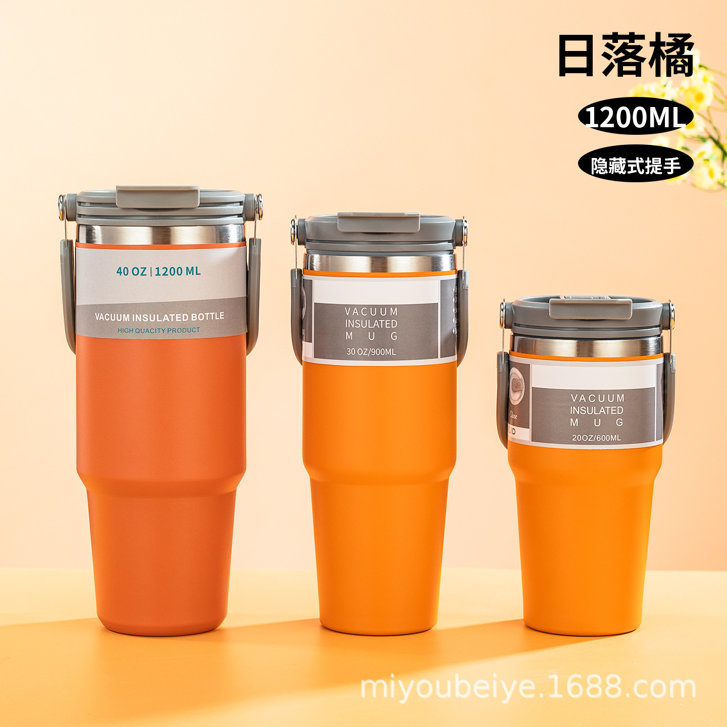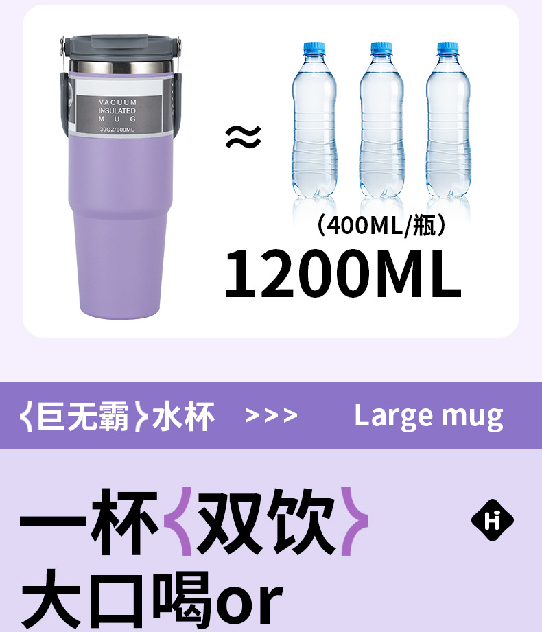 保温杯高颜值汽车杯不锈钢车载冰霸杯便携巨无霸真空手提吸管水杯