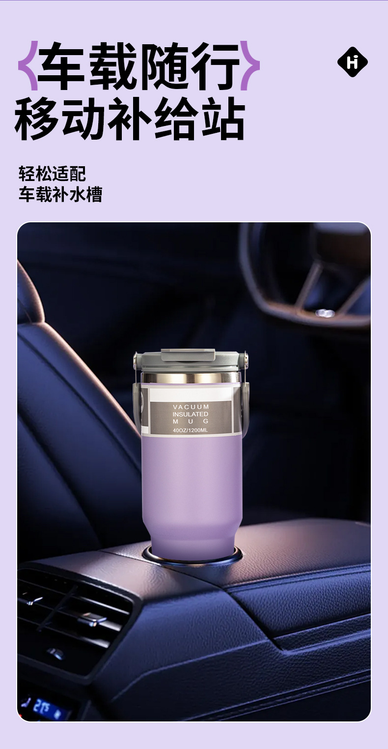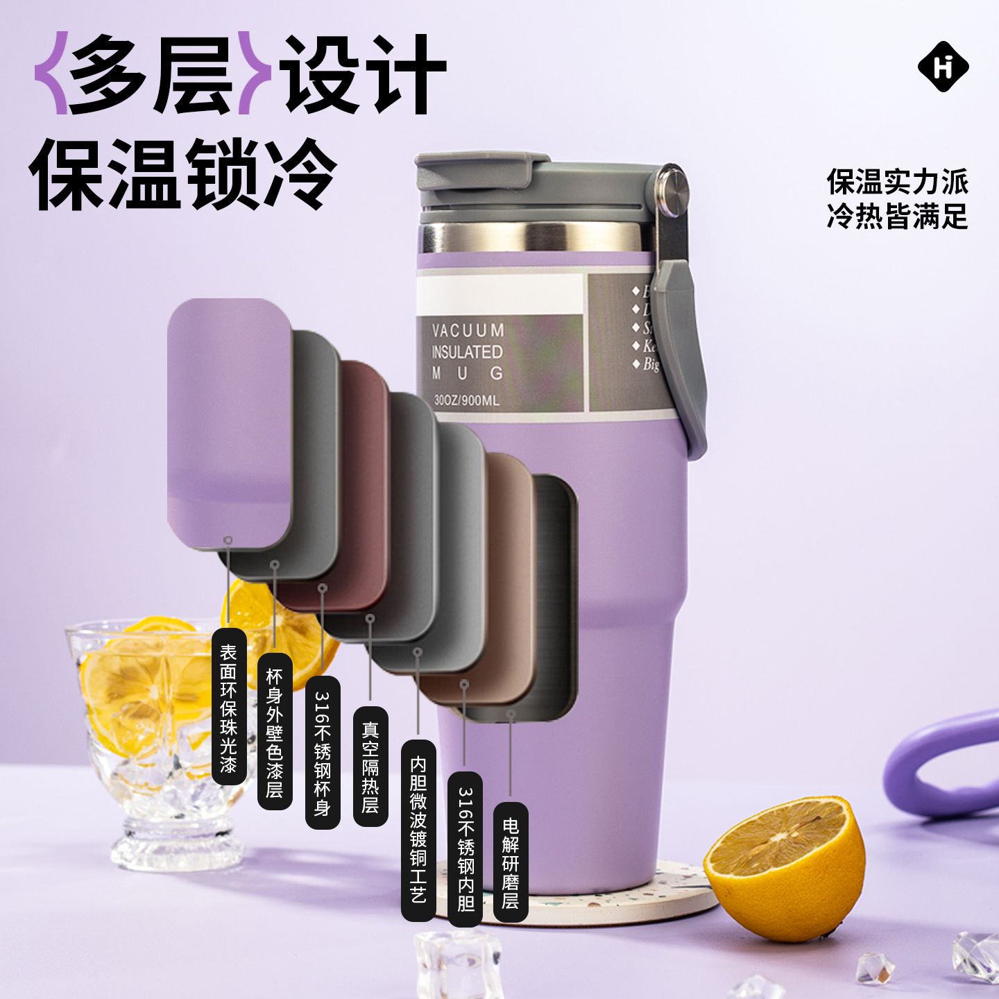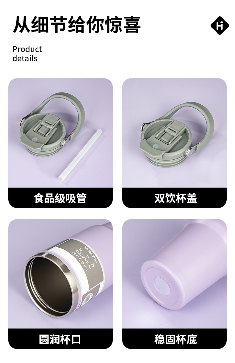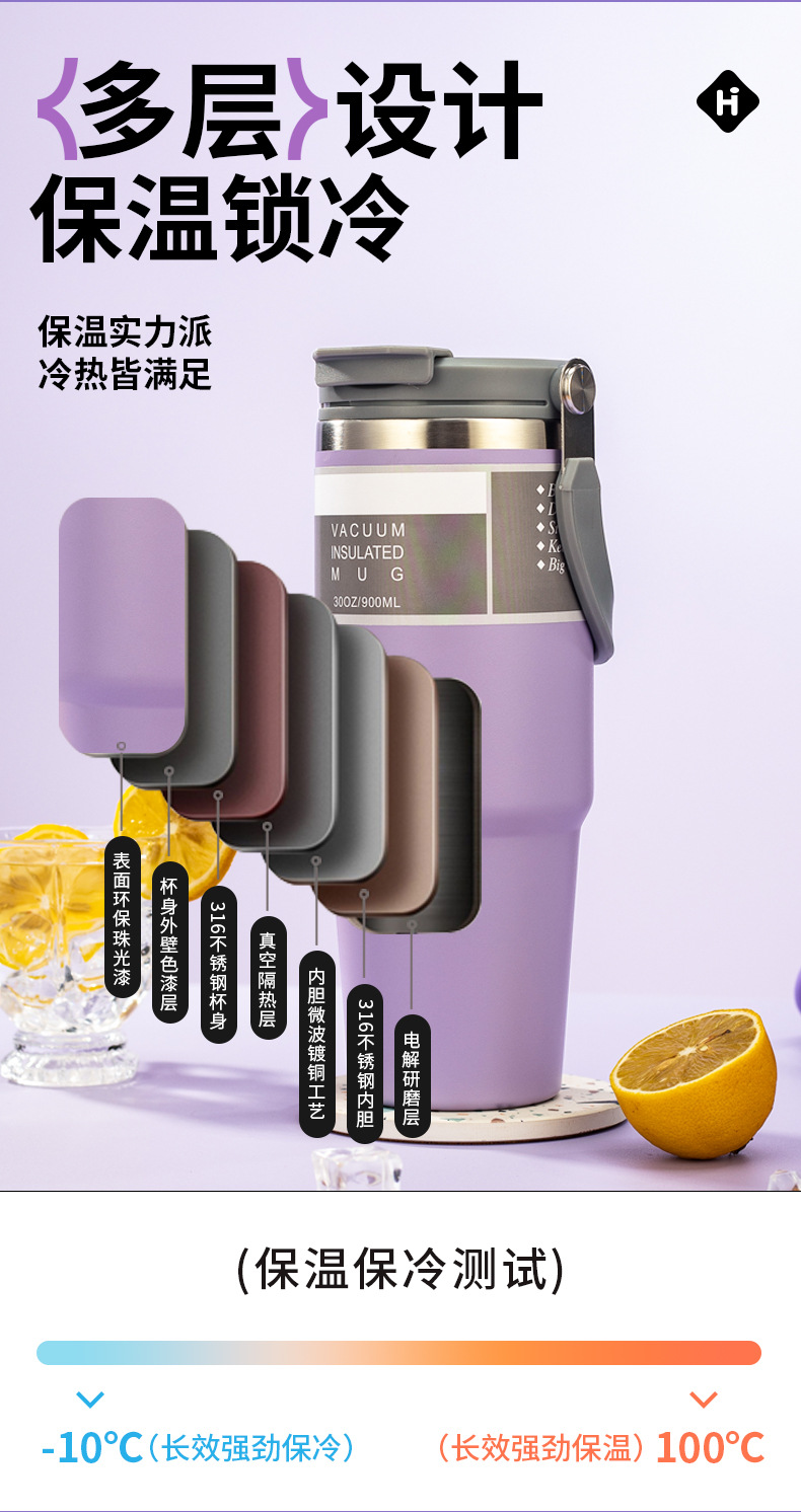 保温杯高颜值汽车杯不锈钢车载冰霸杯便携巨无霸真空手提吸管水杯