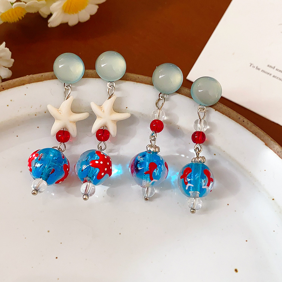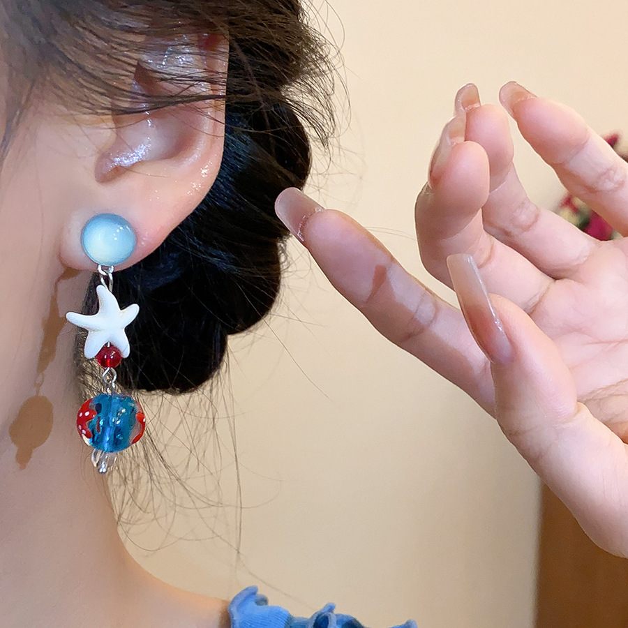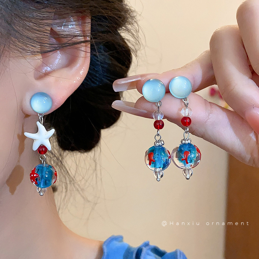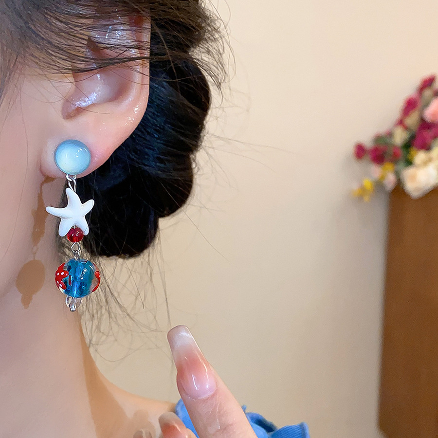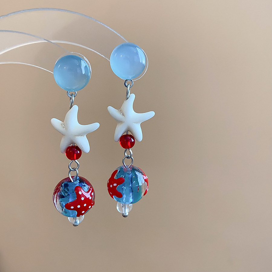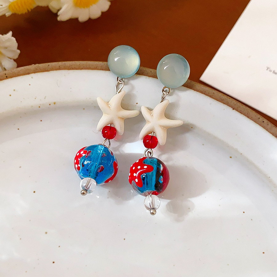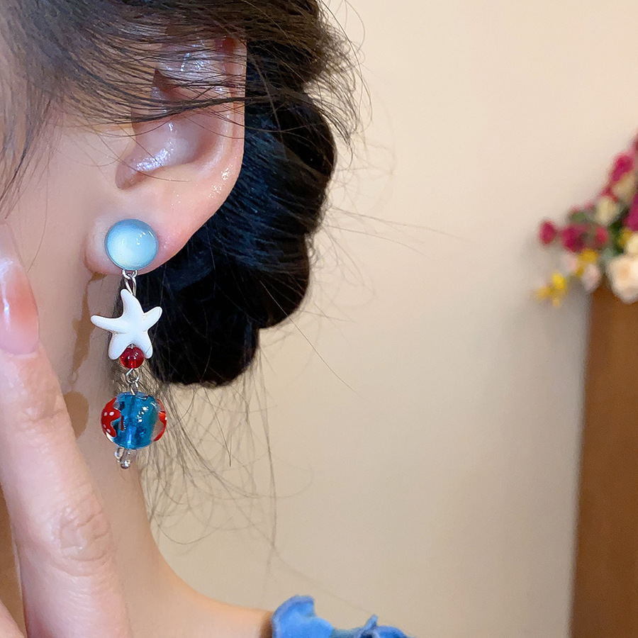 银针琉璃圆珠海星耳钉女海边度假风耳环轻奢高级感耳饰设计感小众