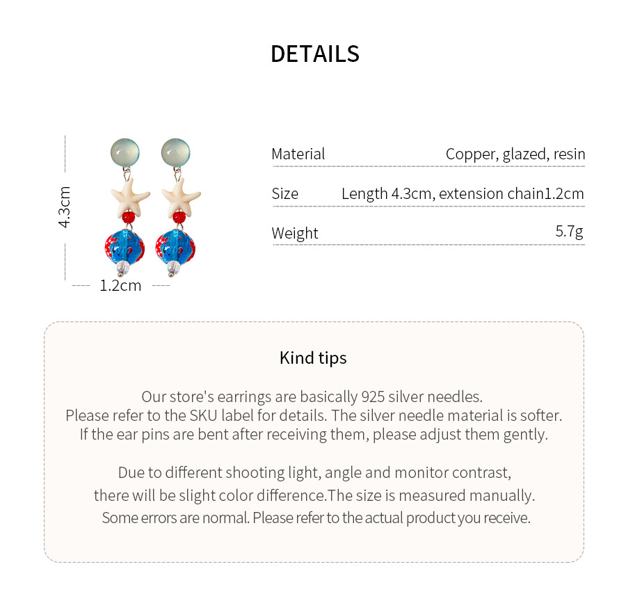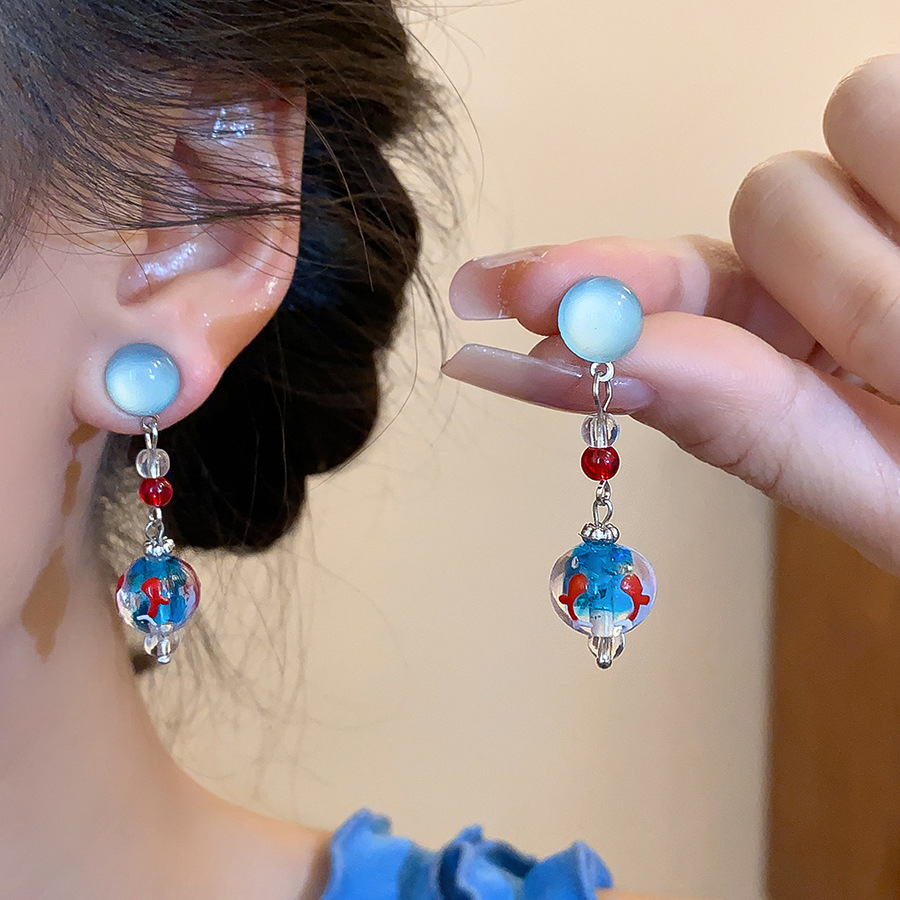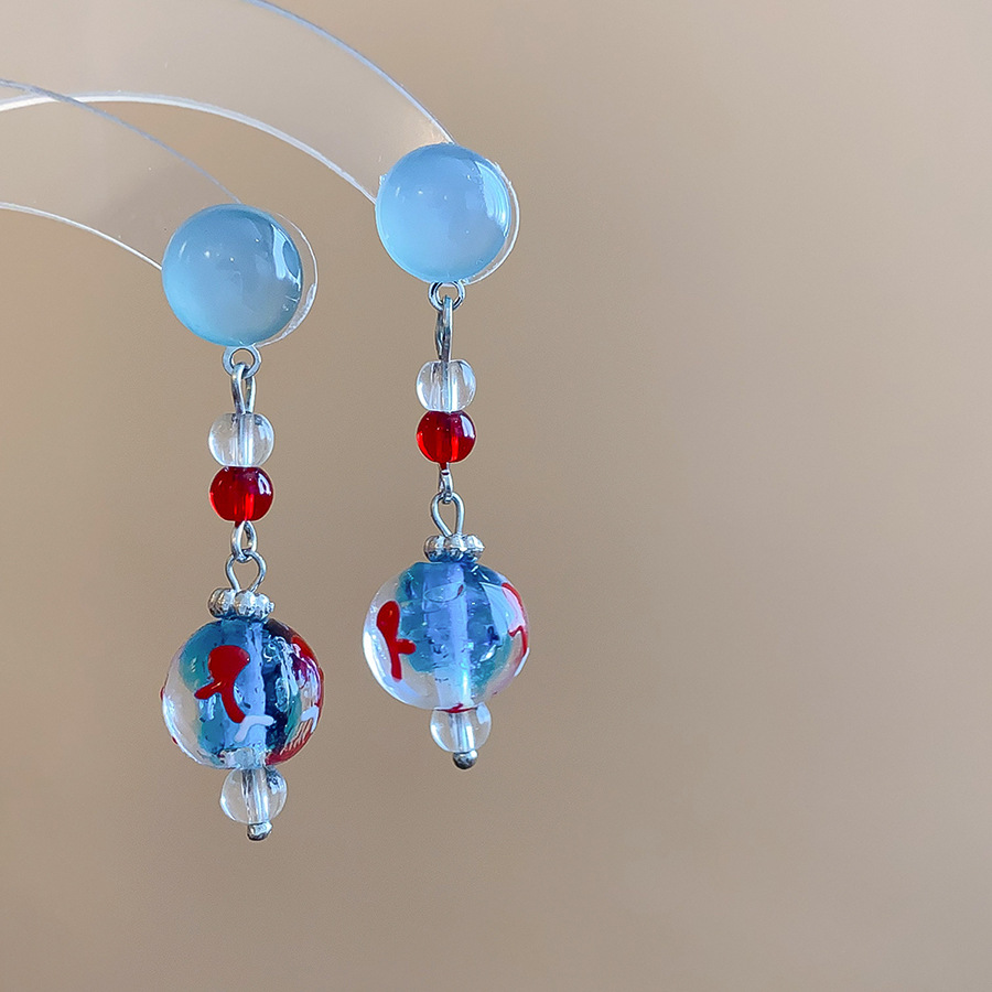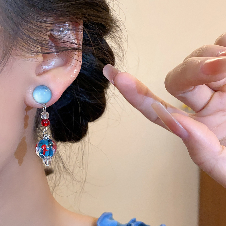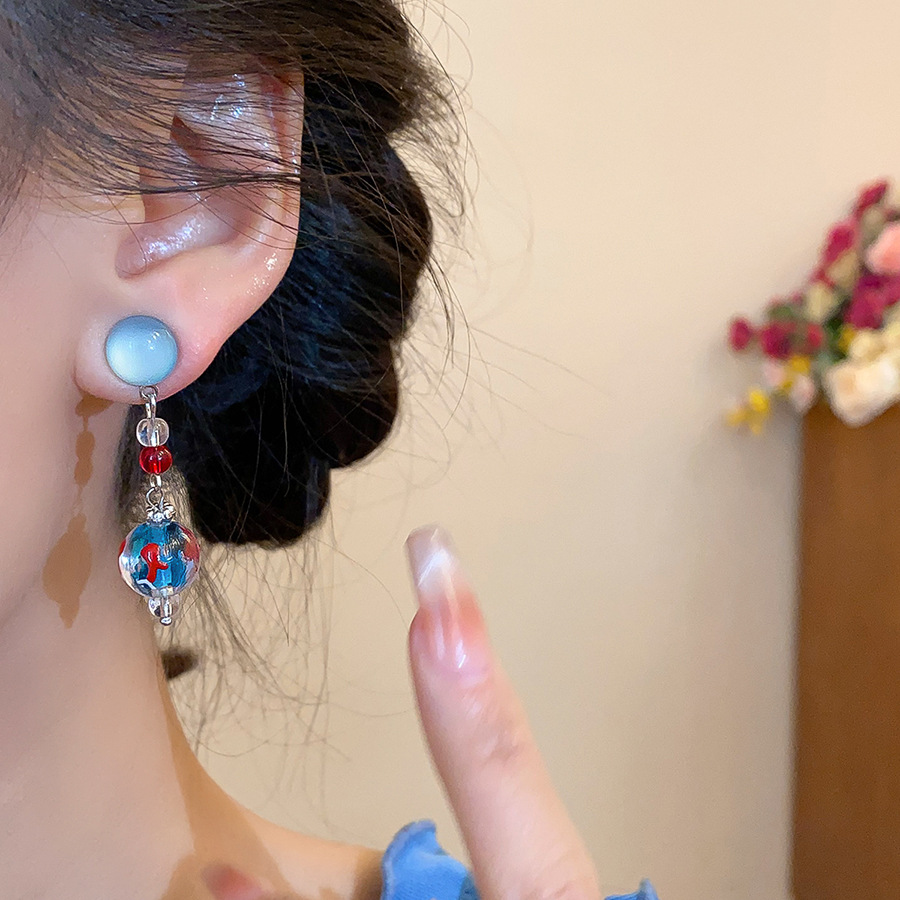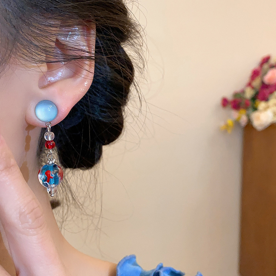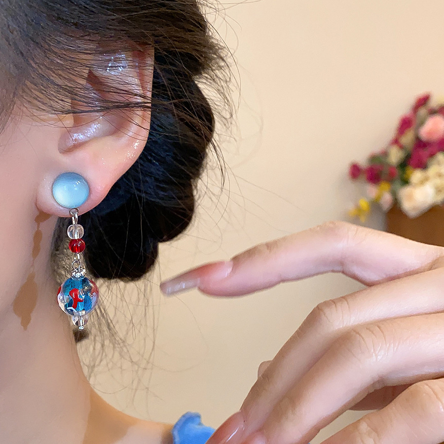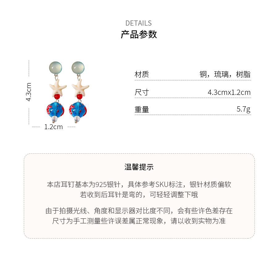 银针琉璃圆珠海星耳钉女海边度假风耳环轻奢高级感耳饰设计感小众