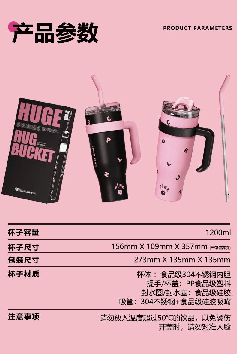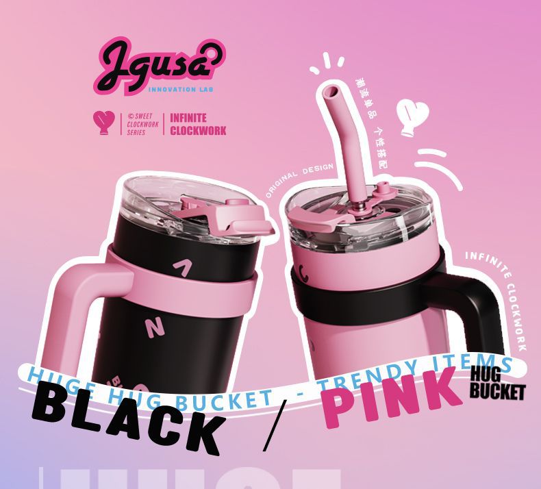 新款黑粉冰霸杯保温水杯巨无霸大容量手柄吸管保温杯40oz汽车杯