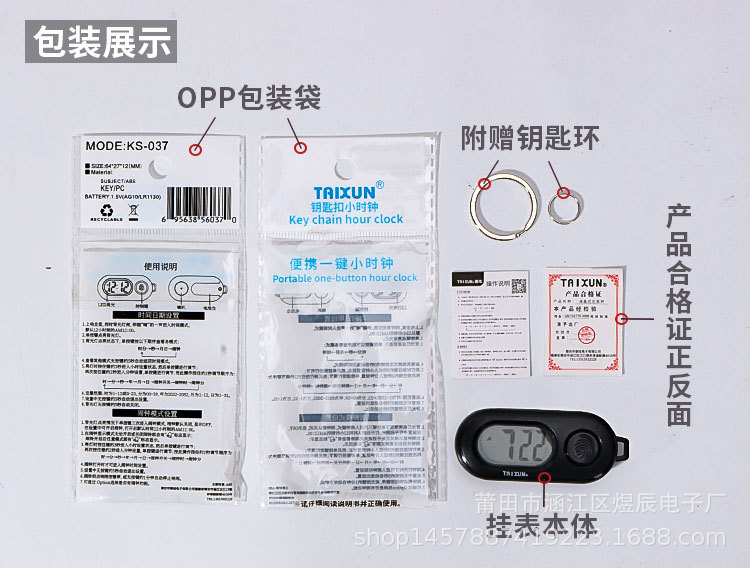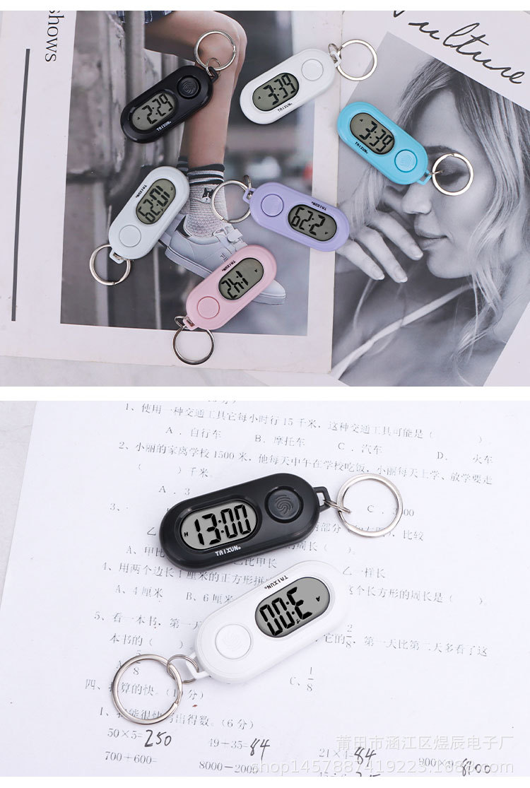 迷你型电子闹钟学生学习用电子小挂表跨境适用户外钥匙扣电子挂表