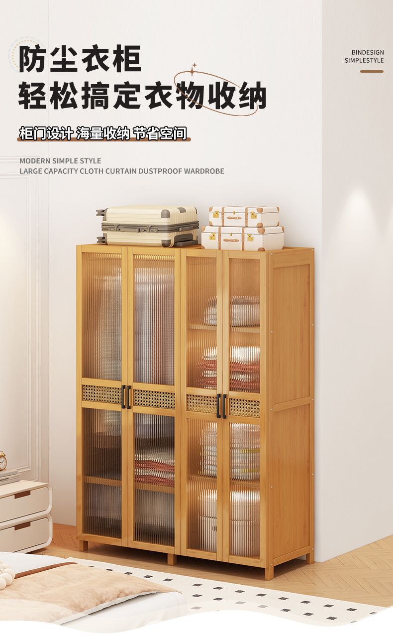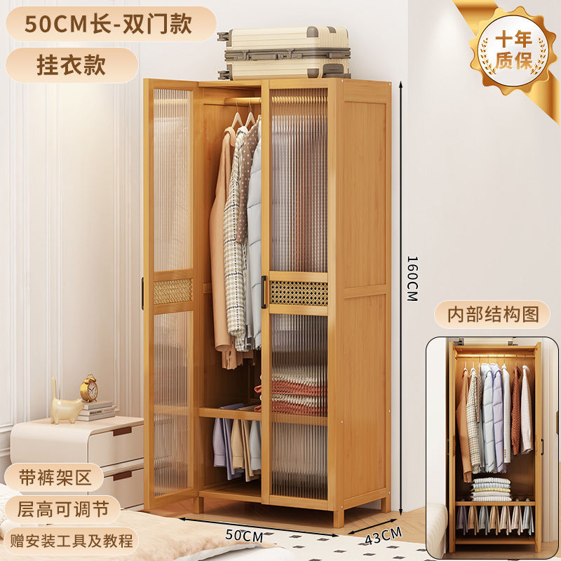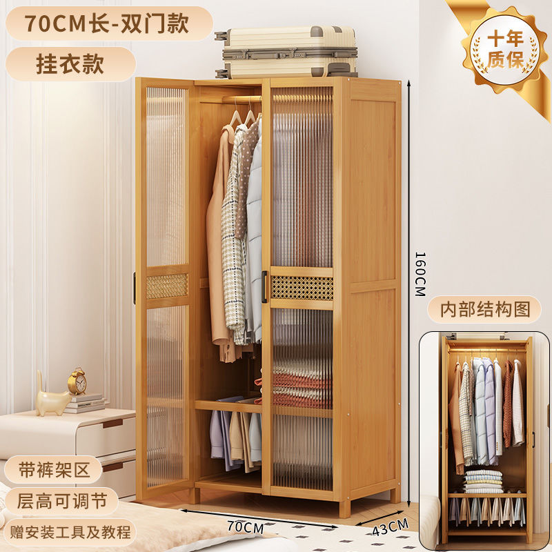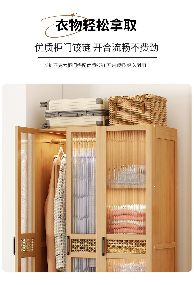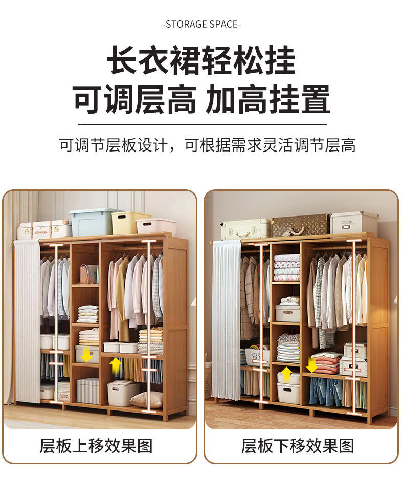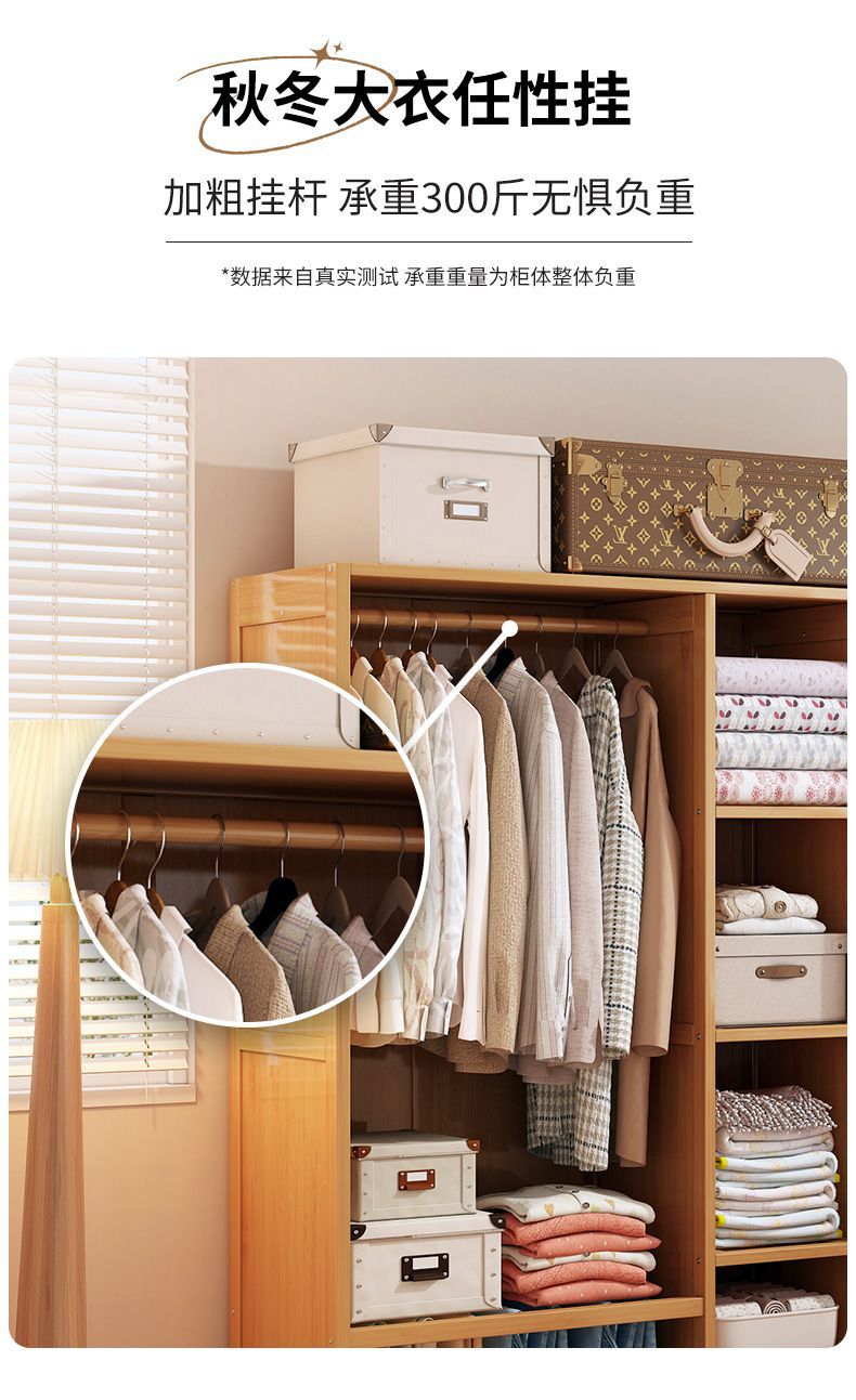 衣柜家用卧室出租房用简易组装儿童防尘布衣橱实木挂衣柜结实耐用