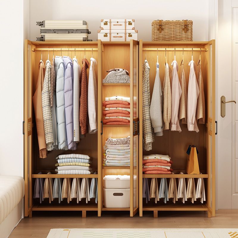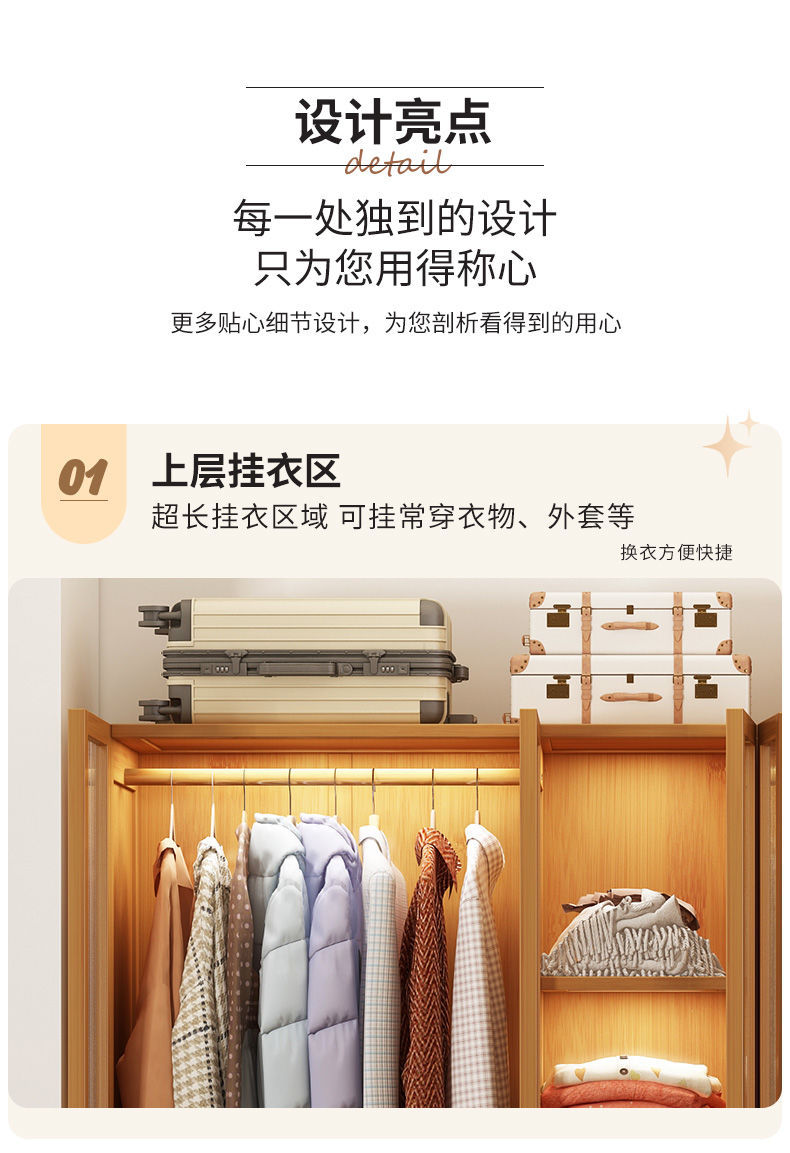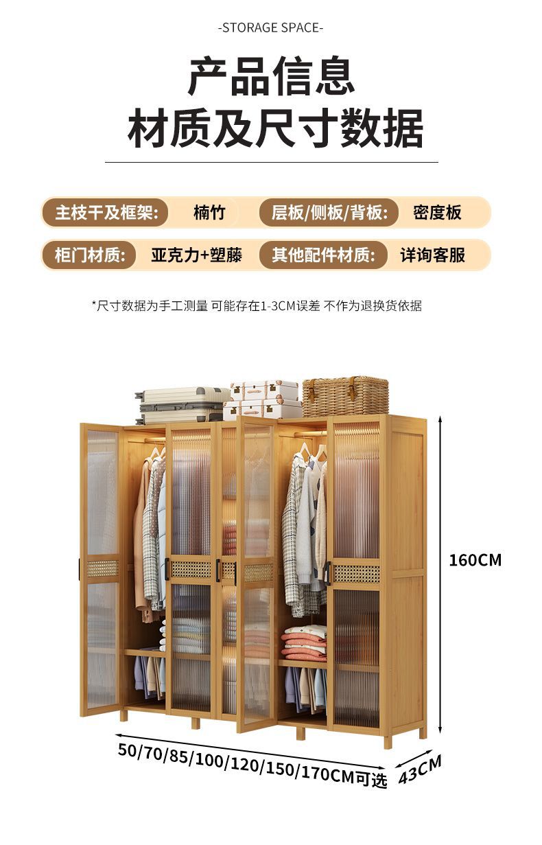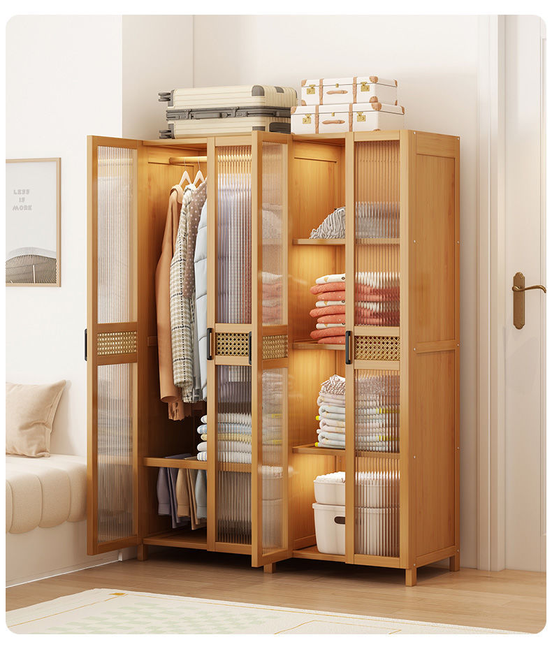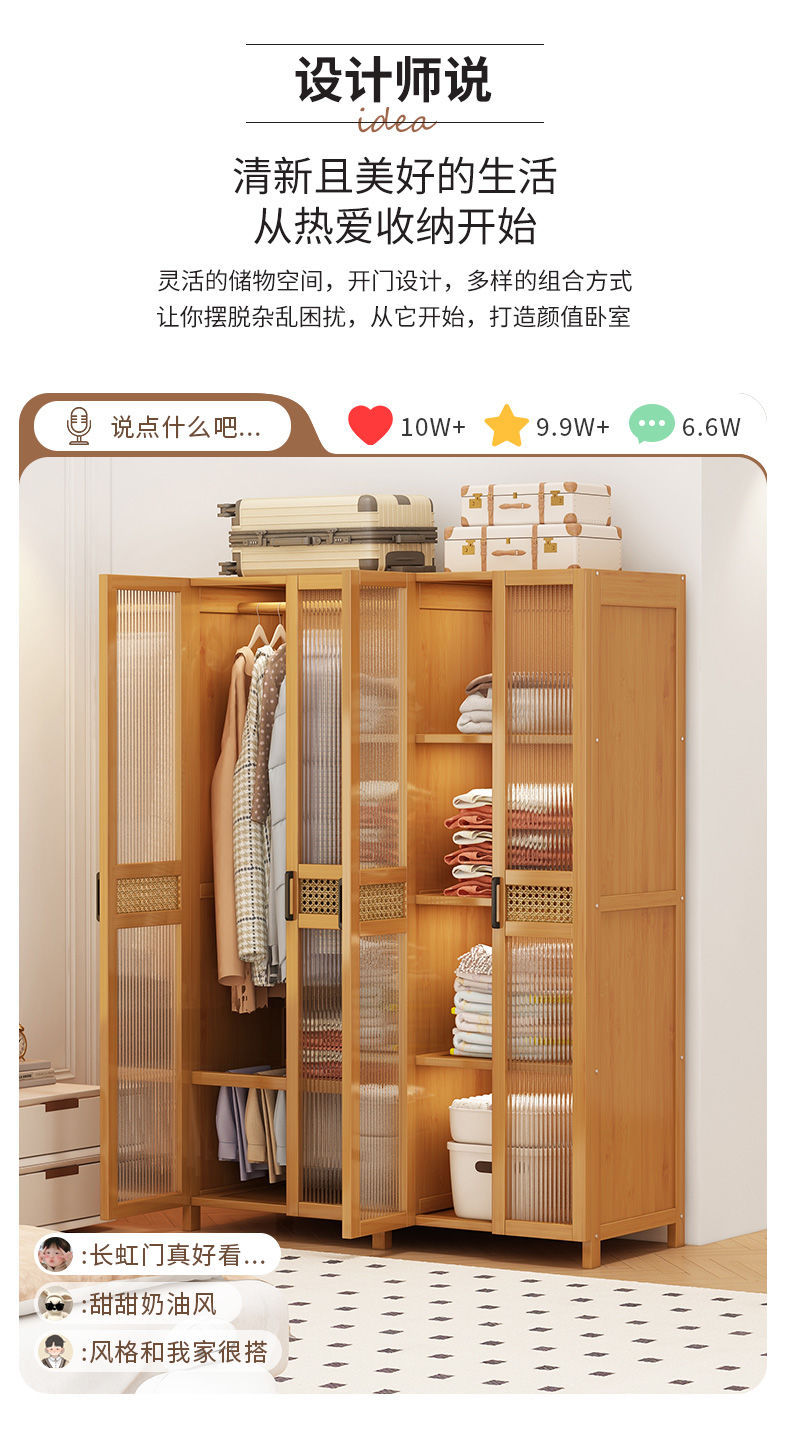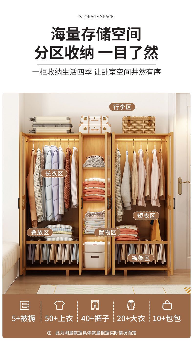 衣柜家用卧室出租房用简易组装儿童防尘布衣橱实木挂衣柜结实耐用