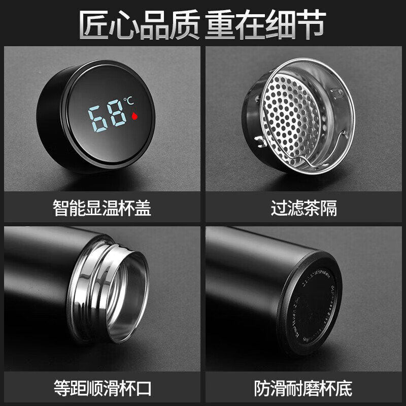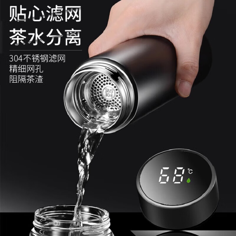 数显版不锈钢保温杯500ml茶水杯304不锈钢智能显温带茶漏