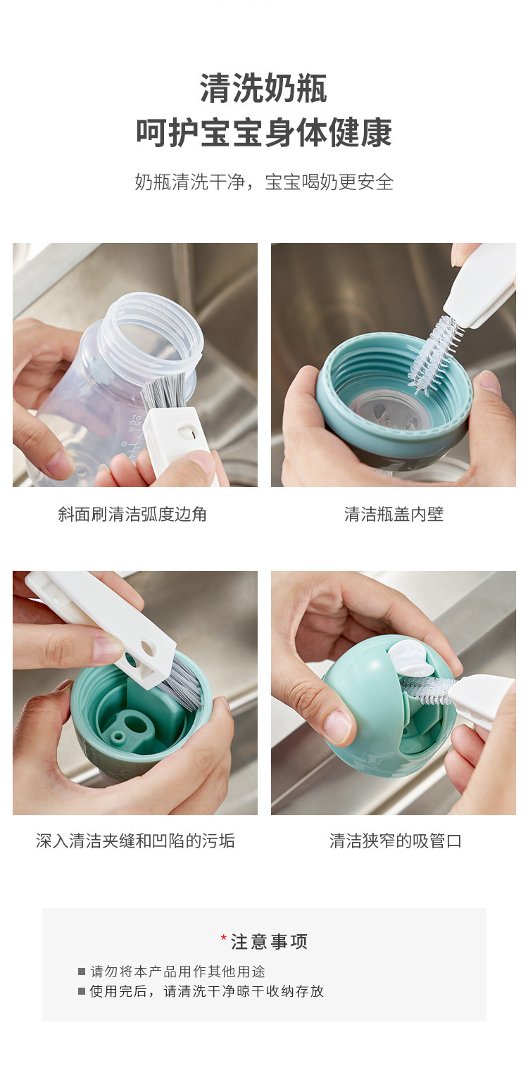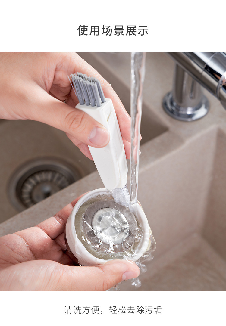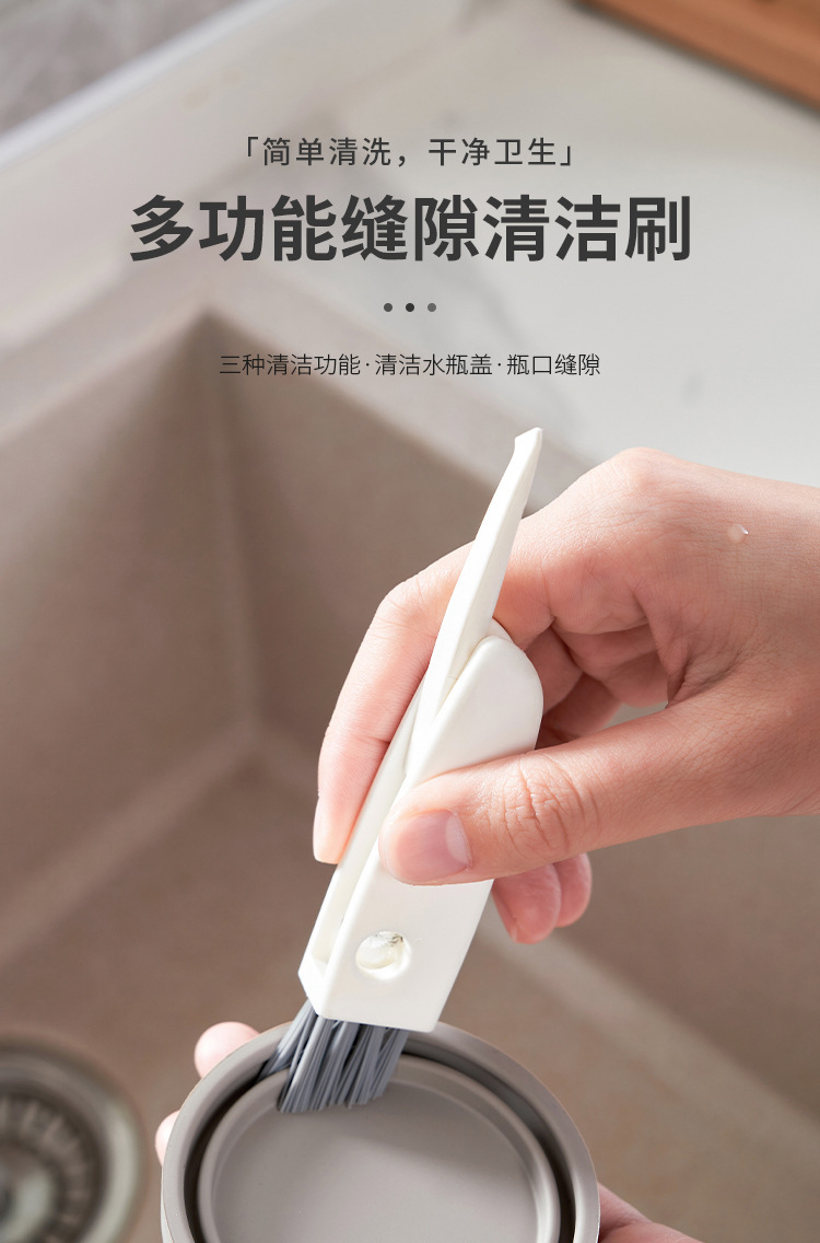 日本KM保温杯盖内侧缝隙刷 厨房缝隙清洁刷 三刷一体随意切换批发