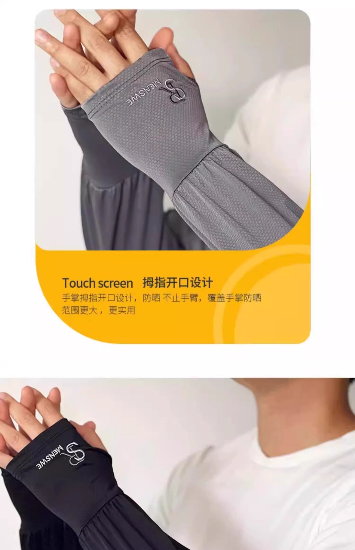 男士冰丝加长加宽冰袖夏季大码宽松防晒袖套防紫外线套袖手臂护袖