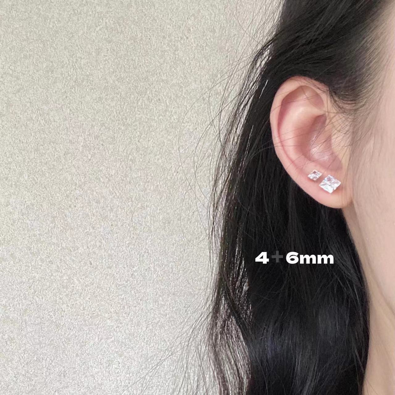 网红6件套925银针养耳洞防过敏小巧方块耳钉耳骨钉小众耳饰女2023