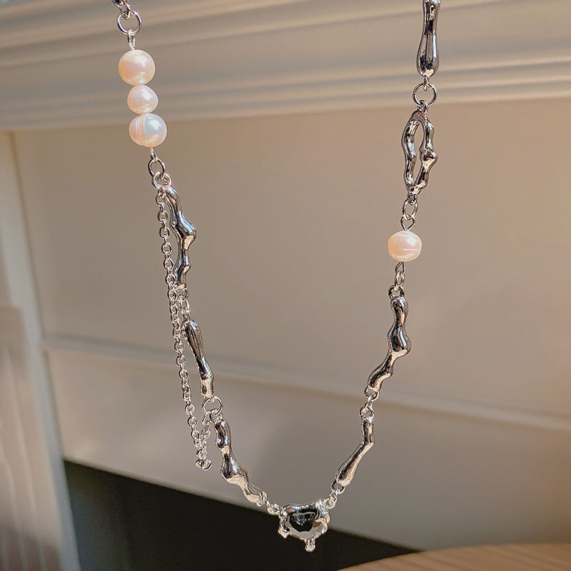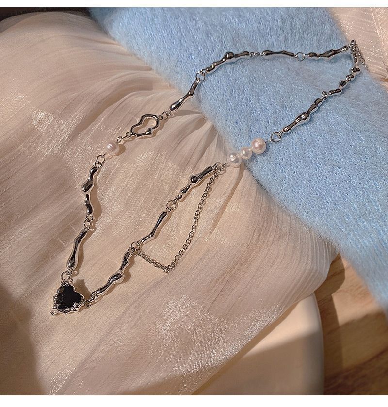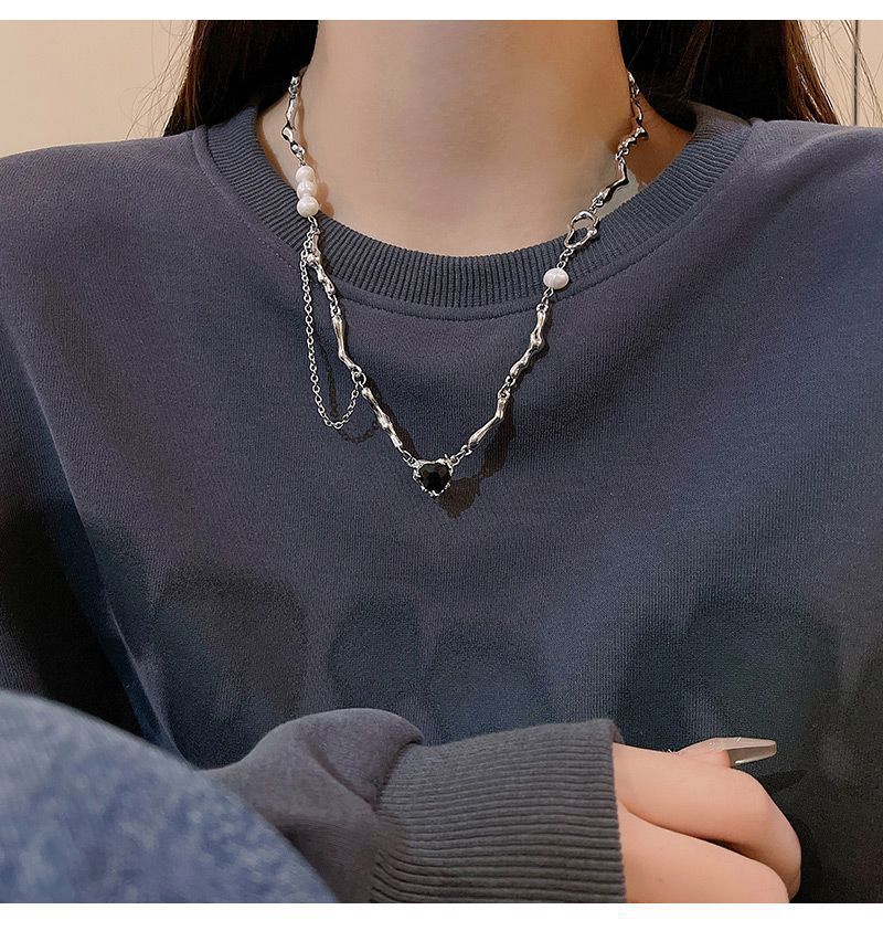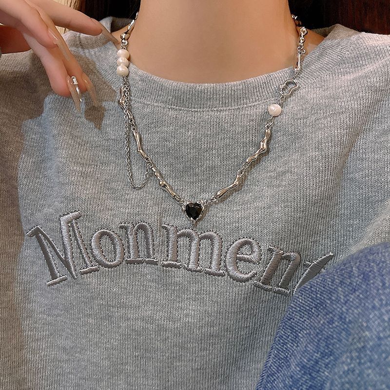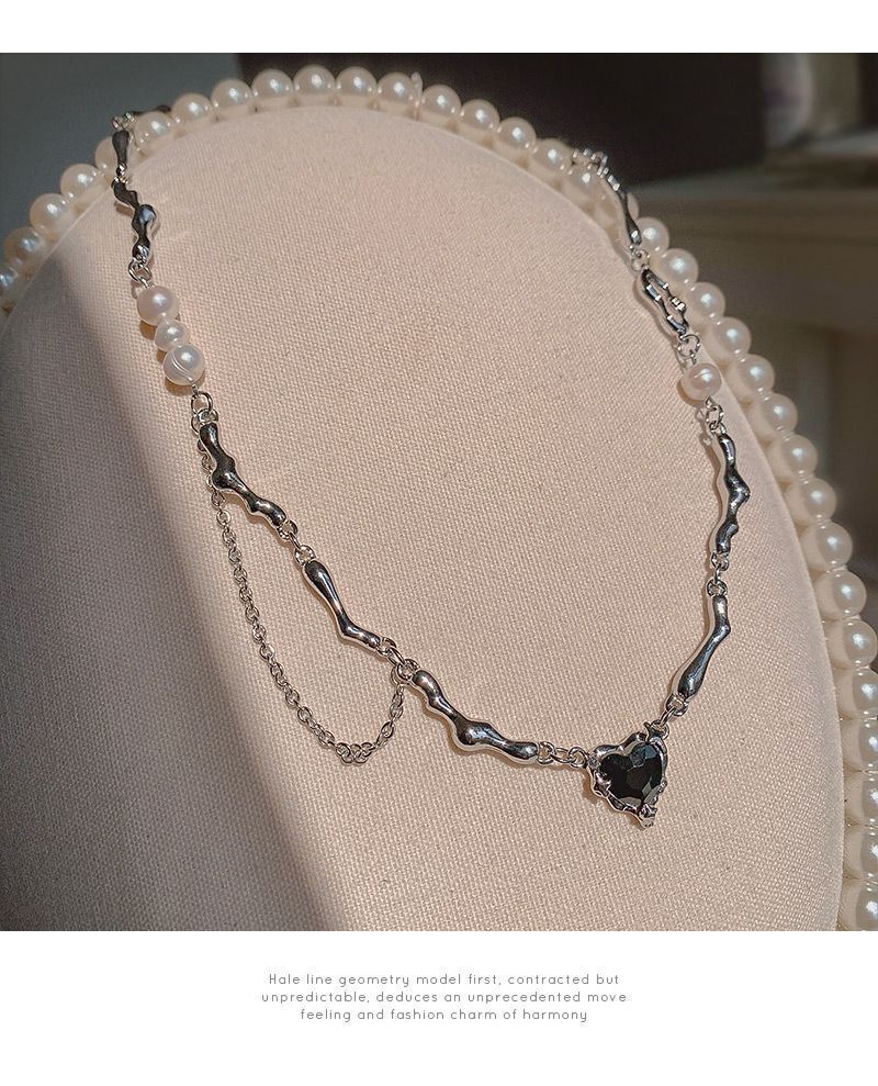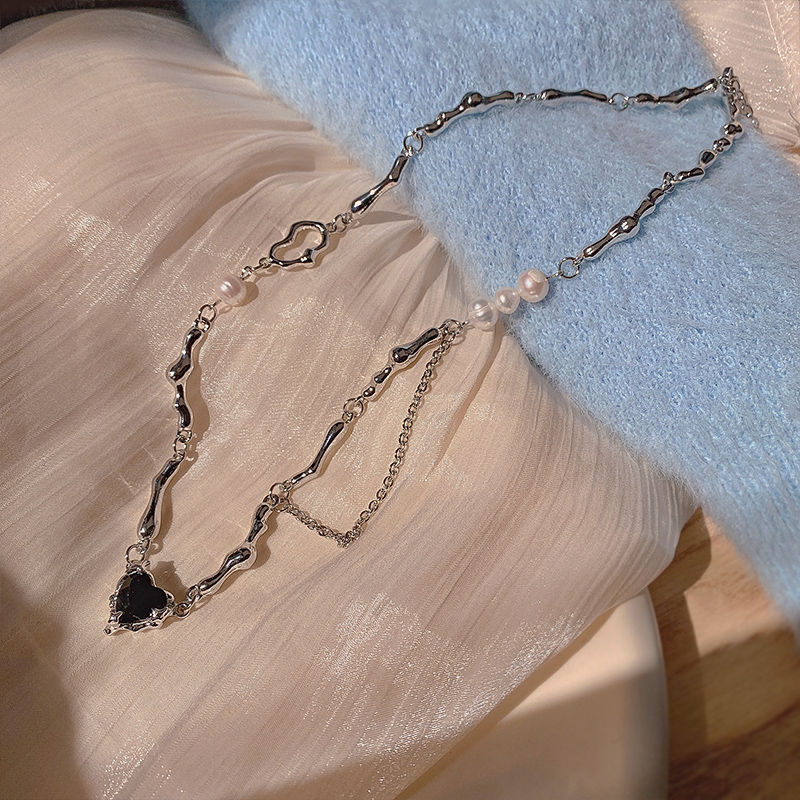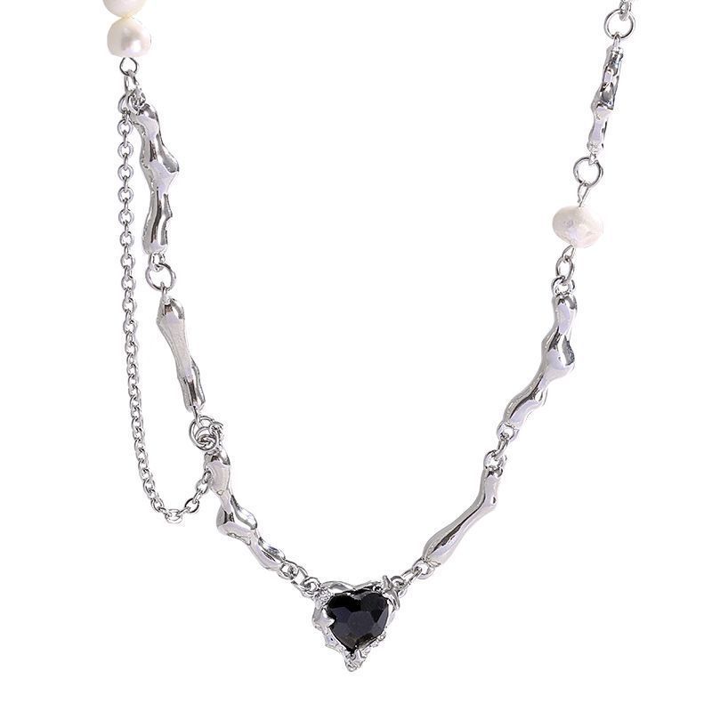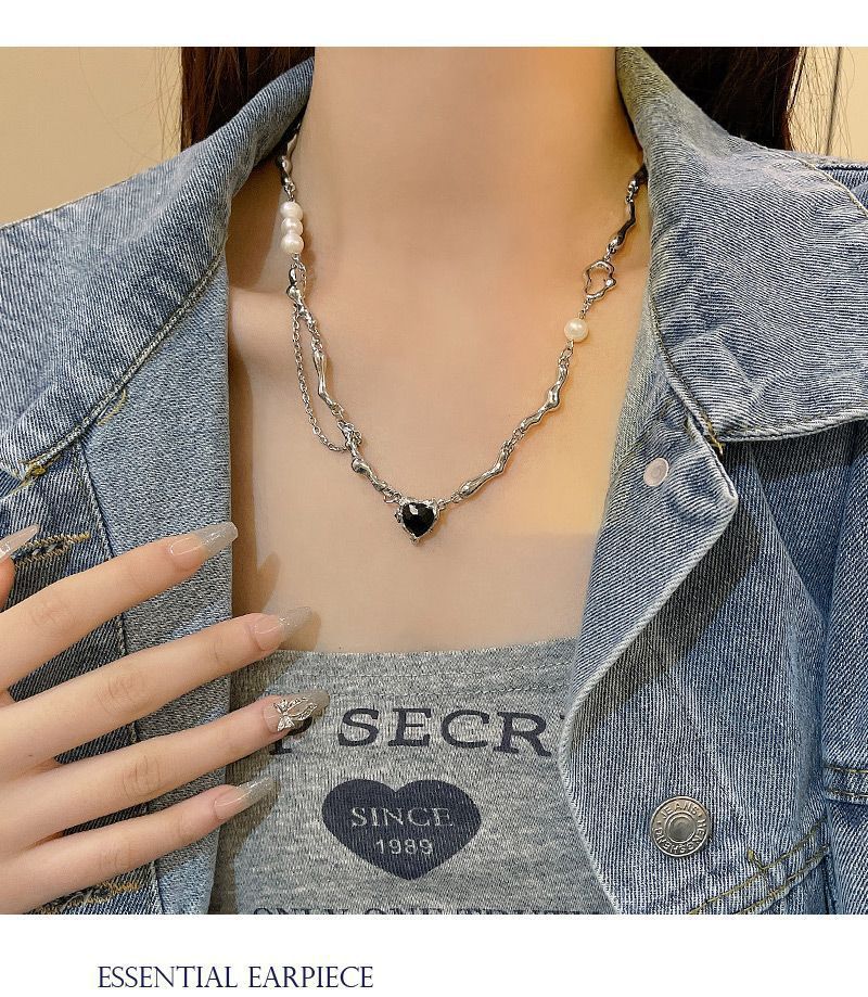 巴洛克珍珠黑锆石爱心项链女款轻奢小众高级感辣妹毛衣锁骨链百搭
