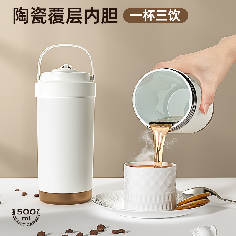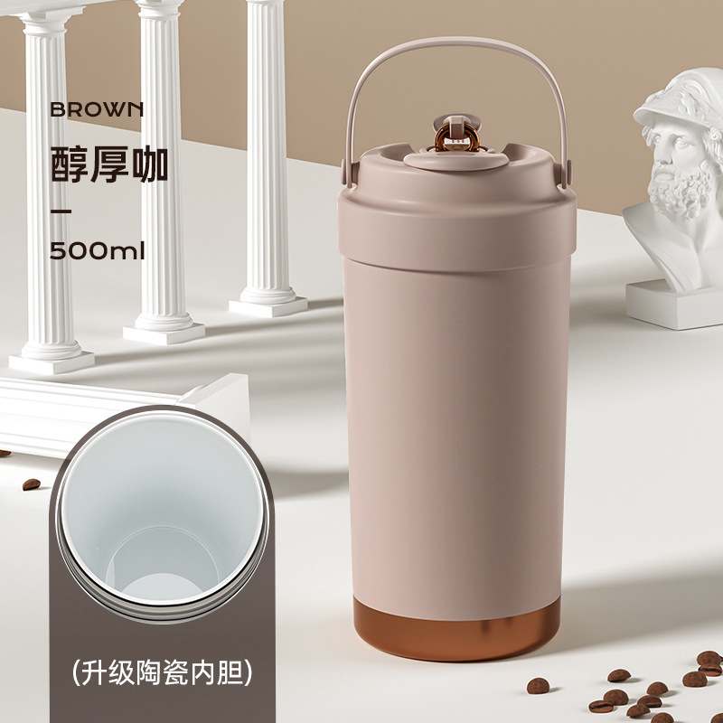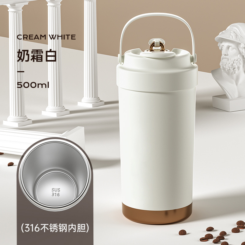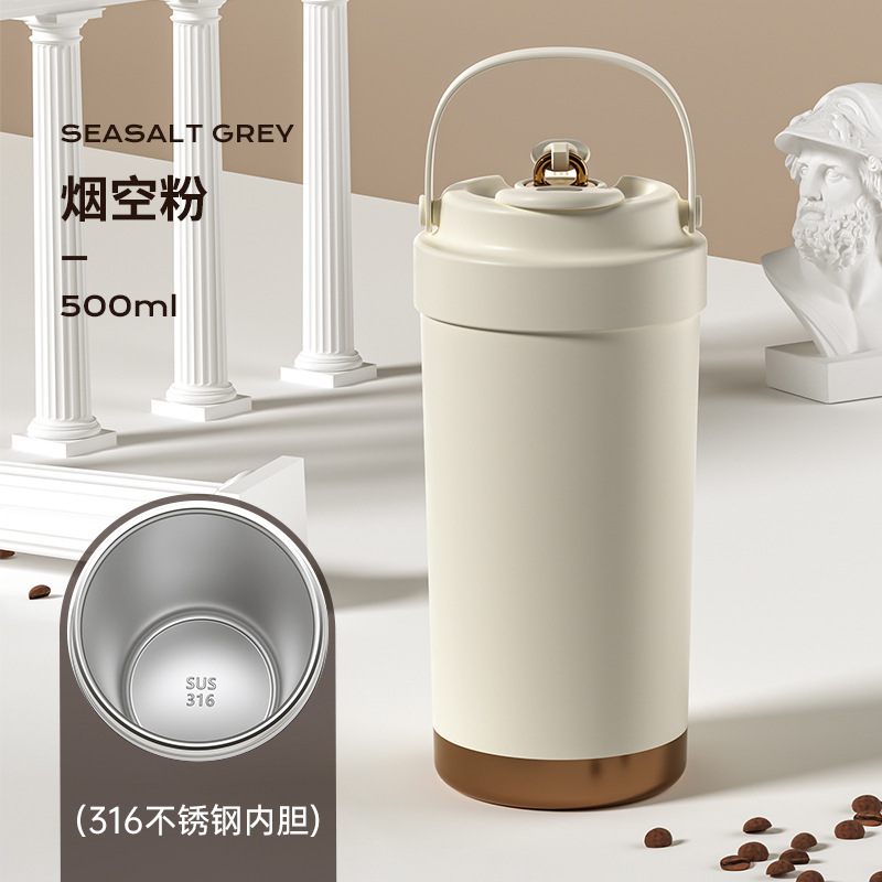 高颜值316不锈钢陶瓷内胆咖啡杯带吸管便携双饮保温杯男女士学生