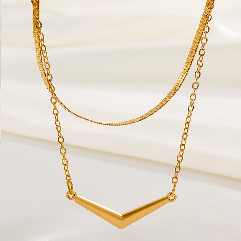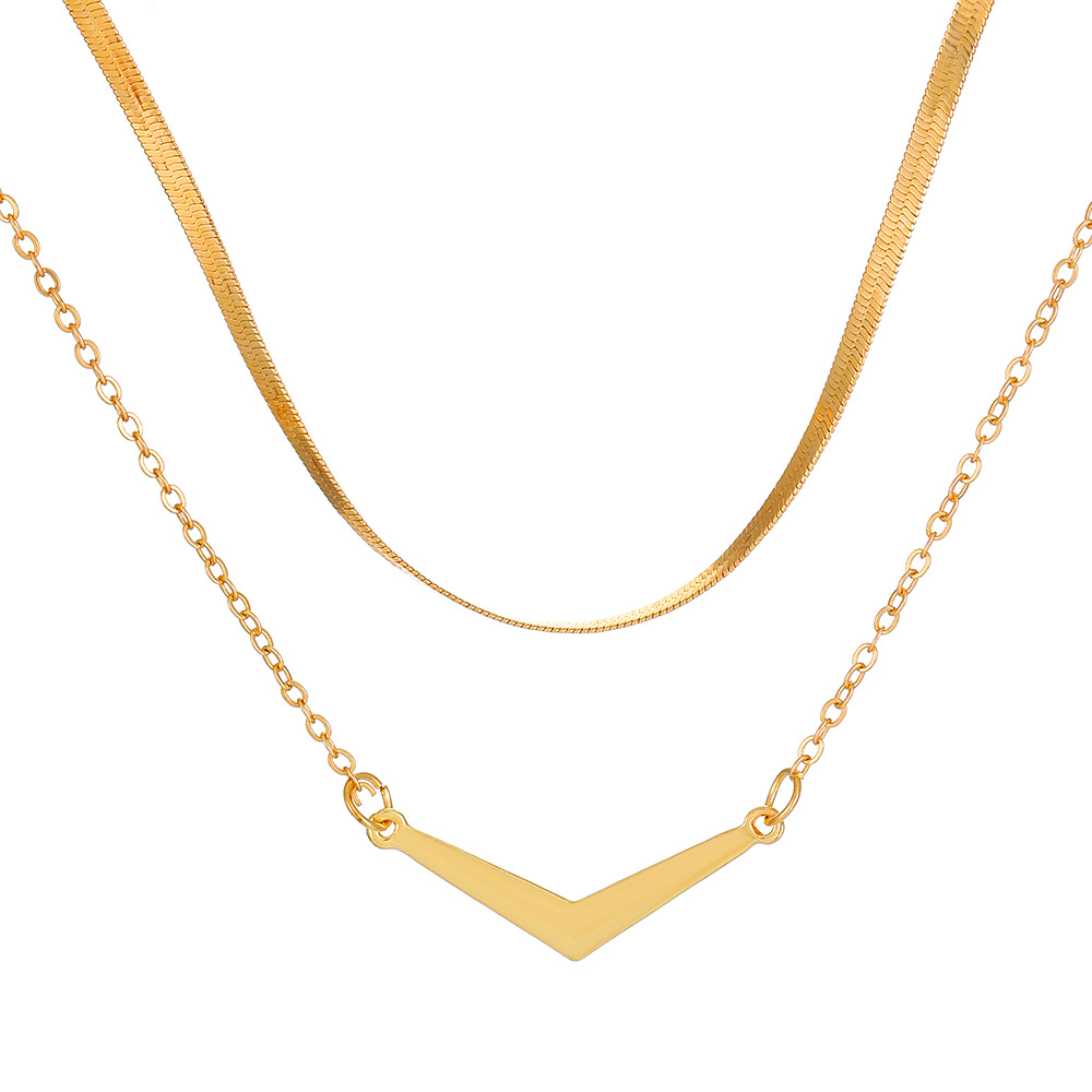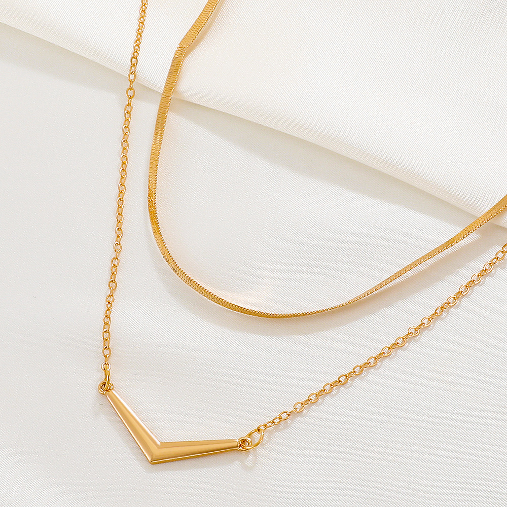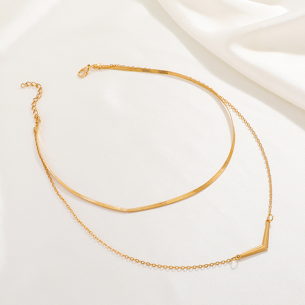 欧美ins简约蛇骨链双层锁骨链 时尚气质小众设计几何三角吊坠项链
