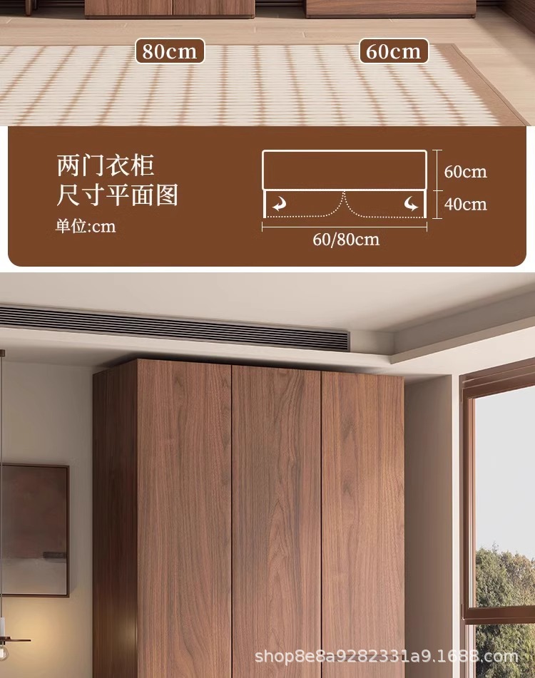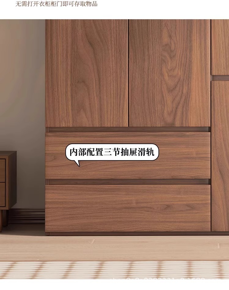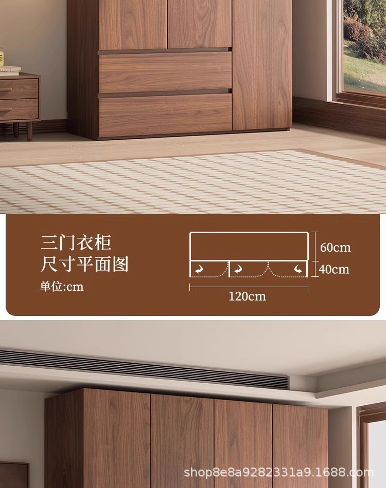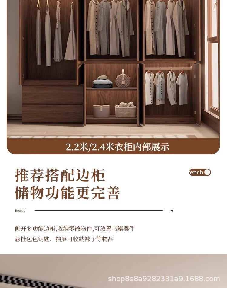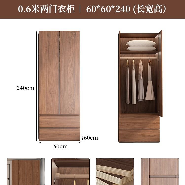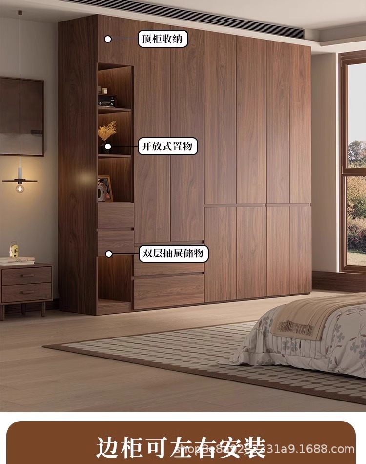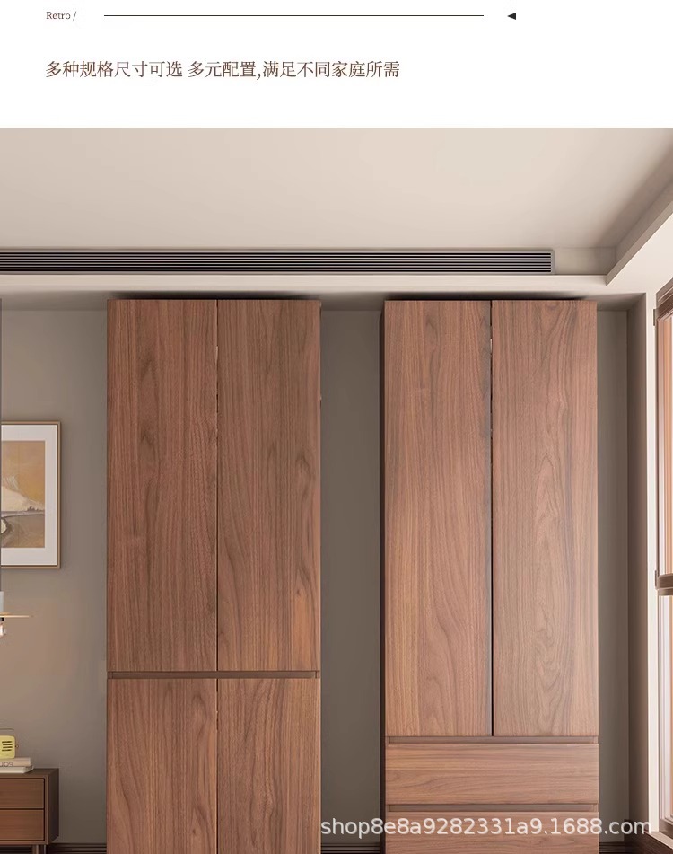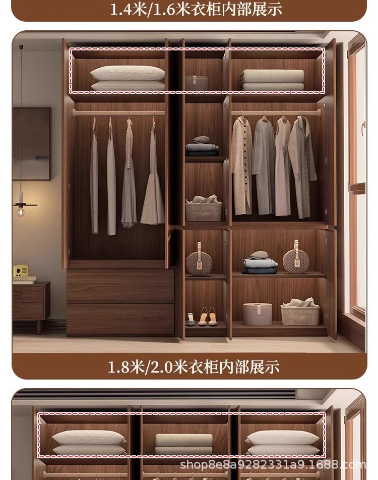 佛山工厂批发实木多层板衣柜家用卧室胡桃色现代简约分段式大衣橱