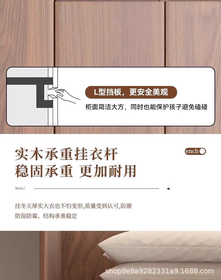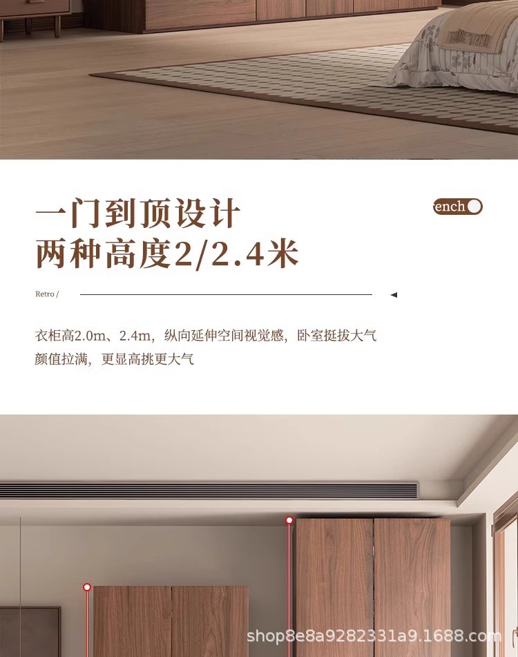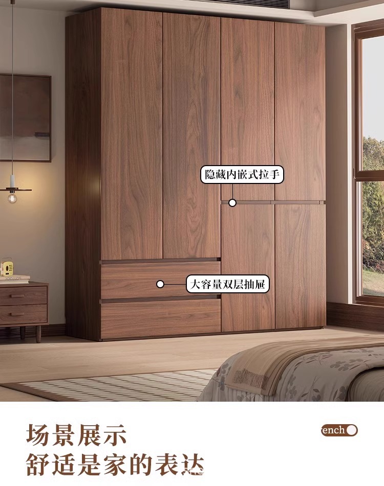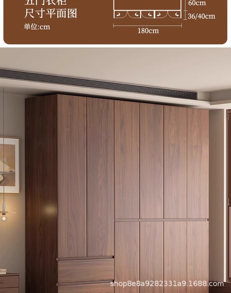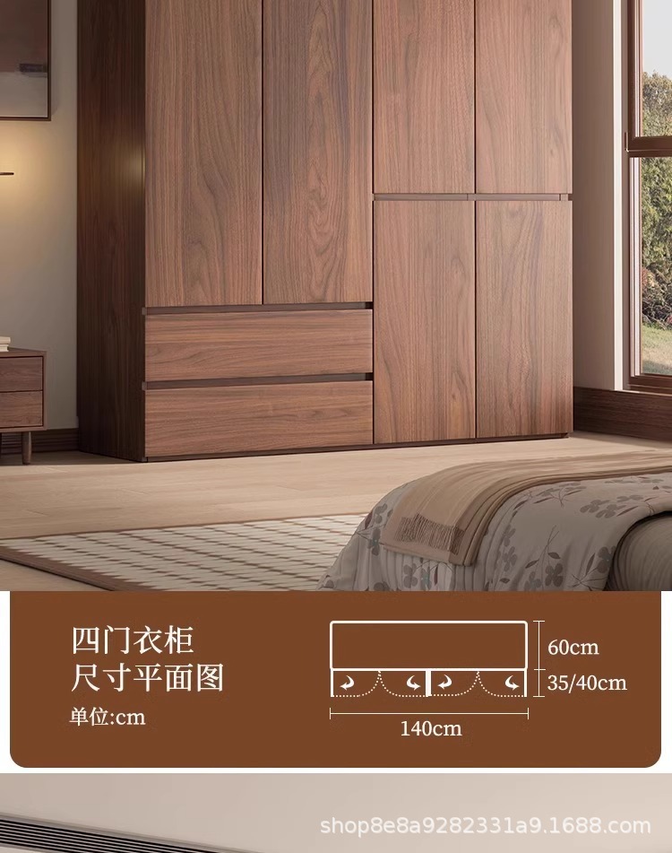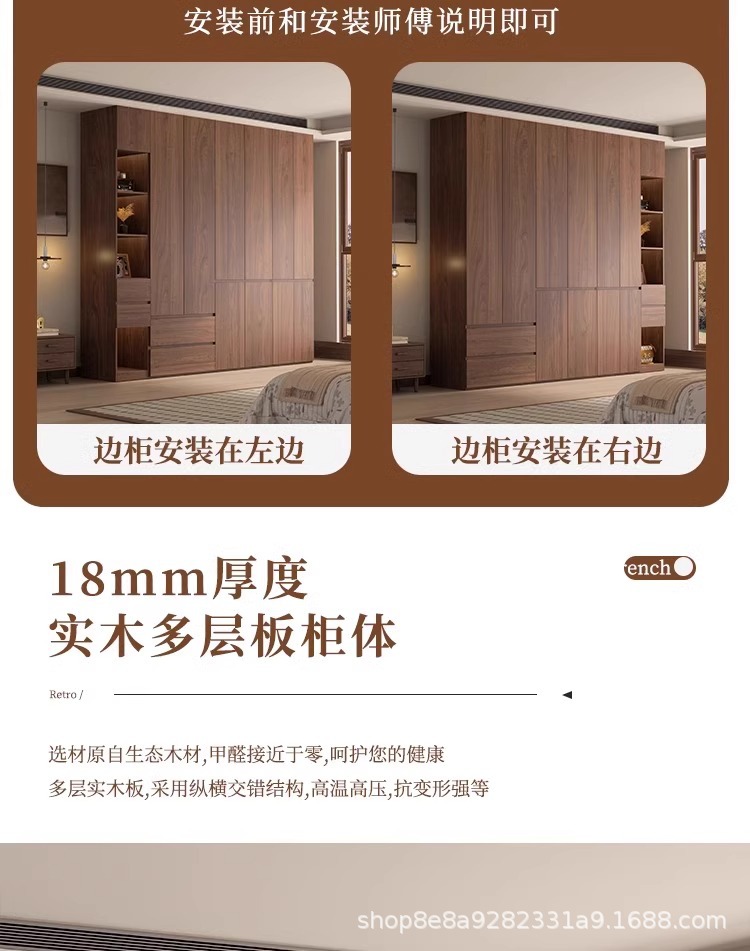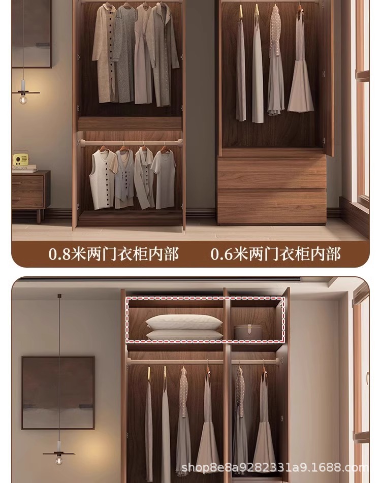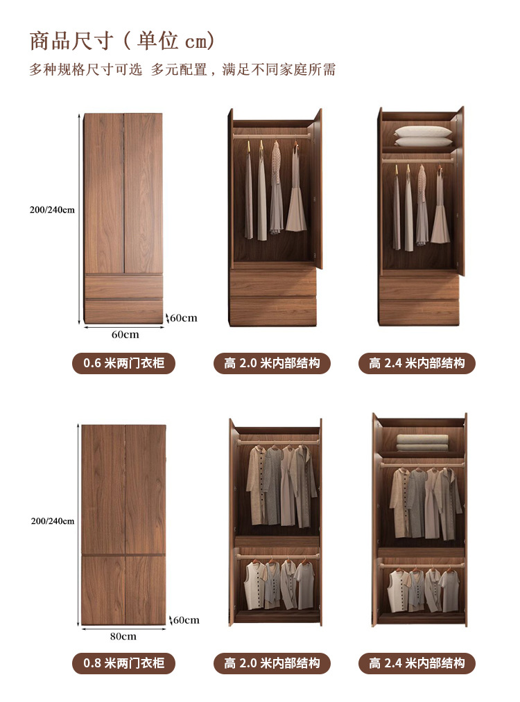 佛山工厂批发实木多层板衣柜家用卧室胡桃色现代简约分段式大衣橱