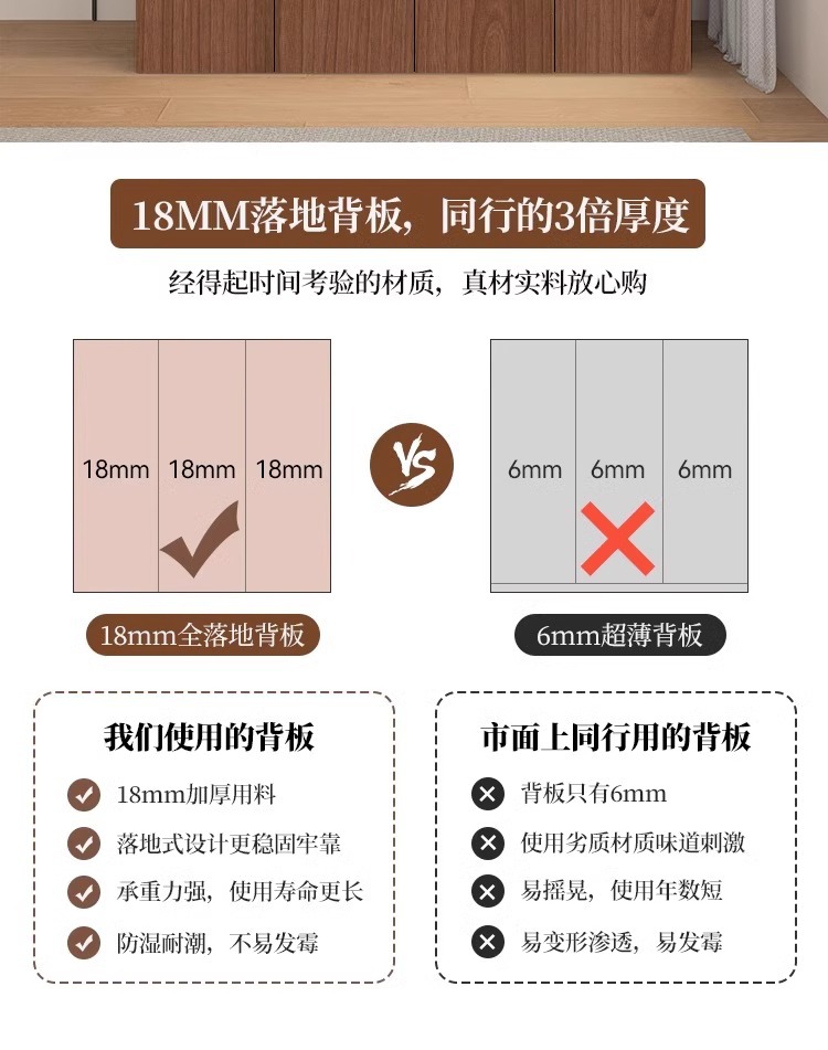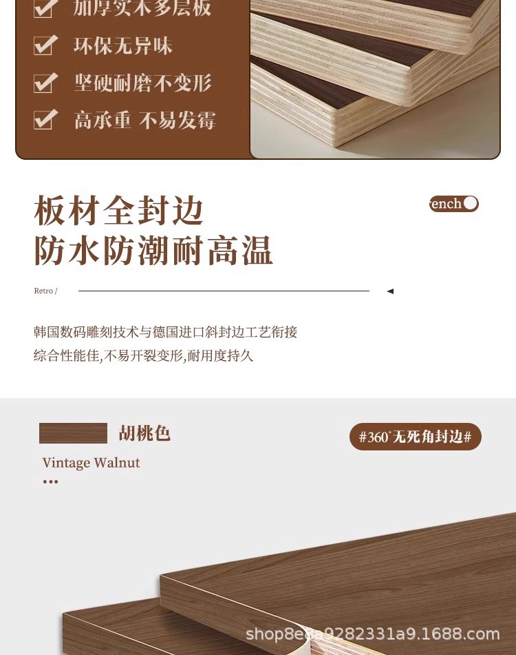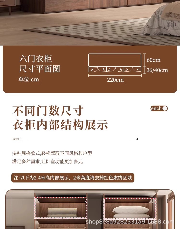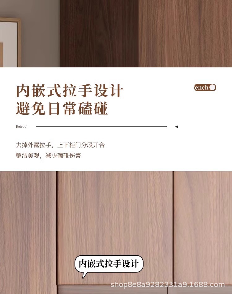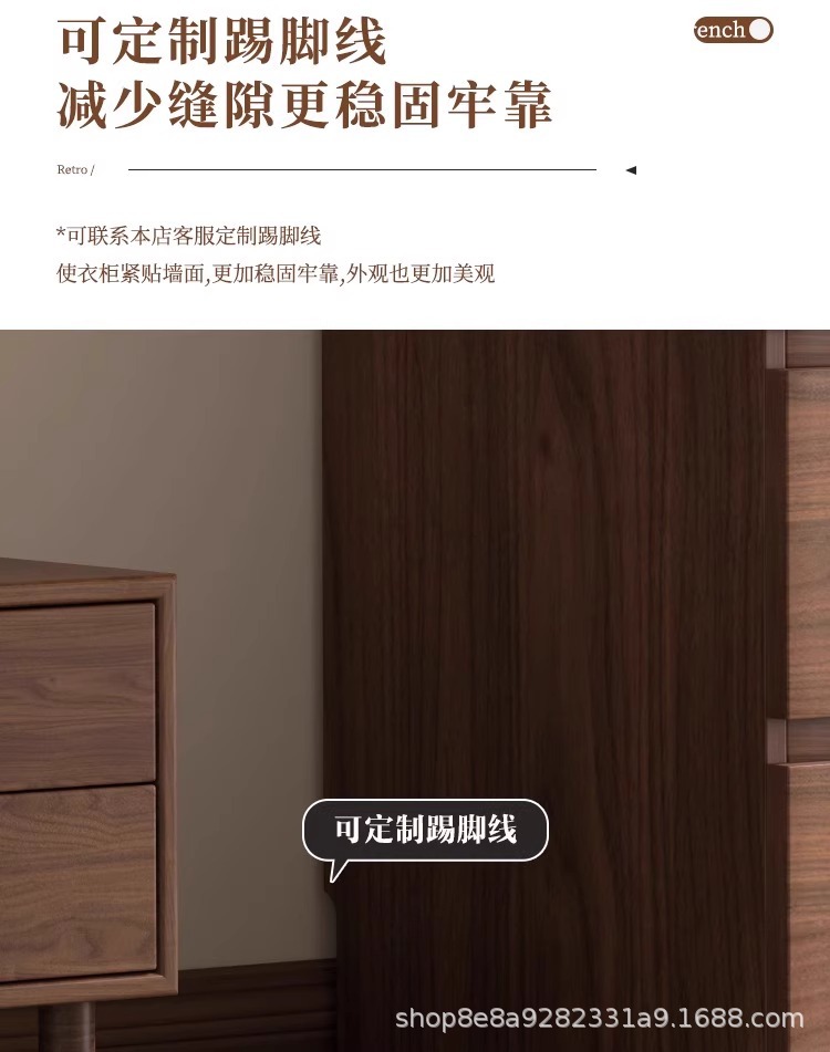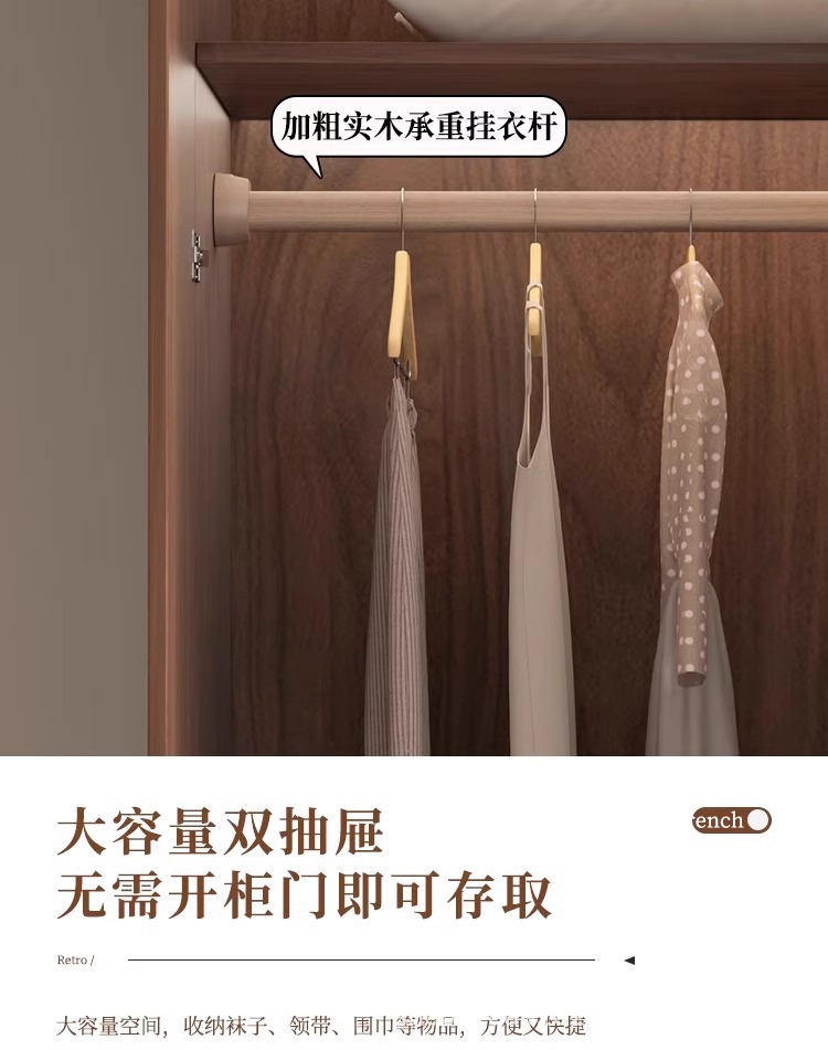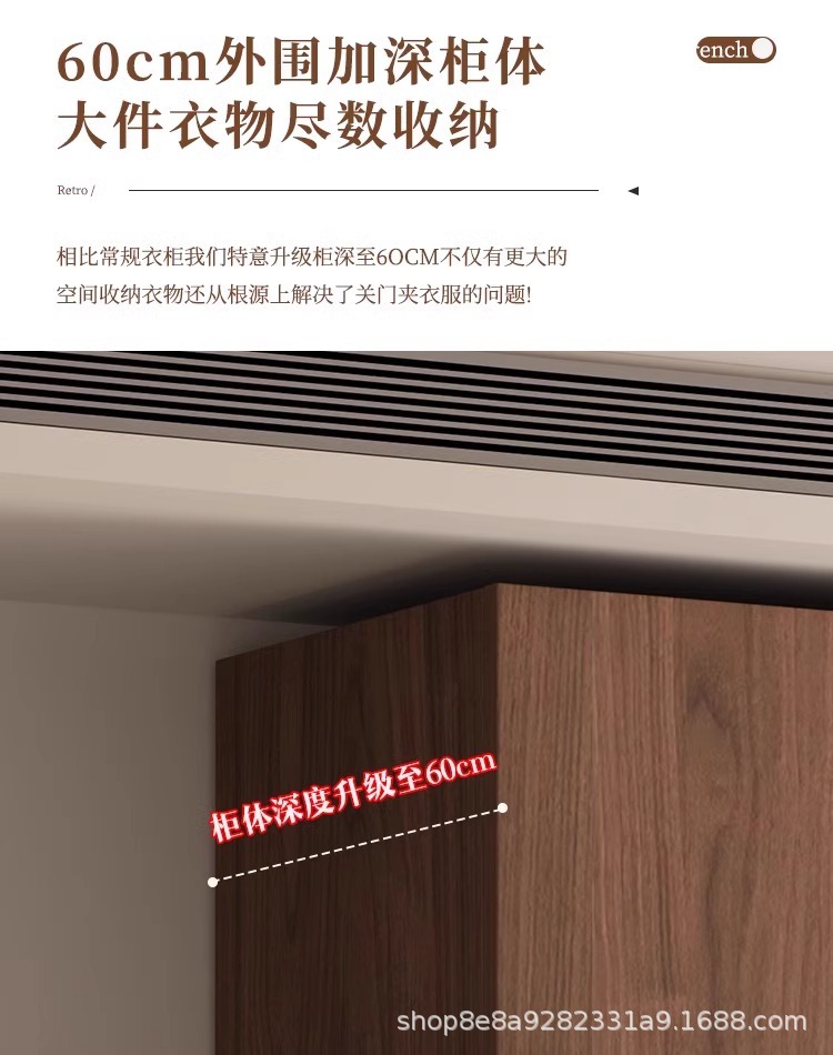 佛山工厂批发实木多层板衣柜家用卧室胡桃色现代简约分段式大衣橱