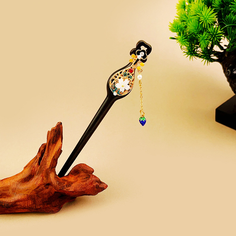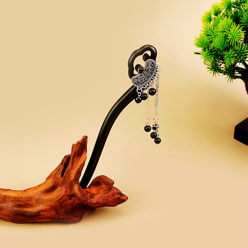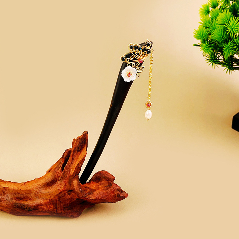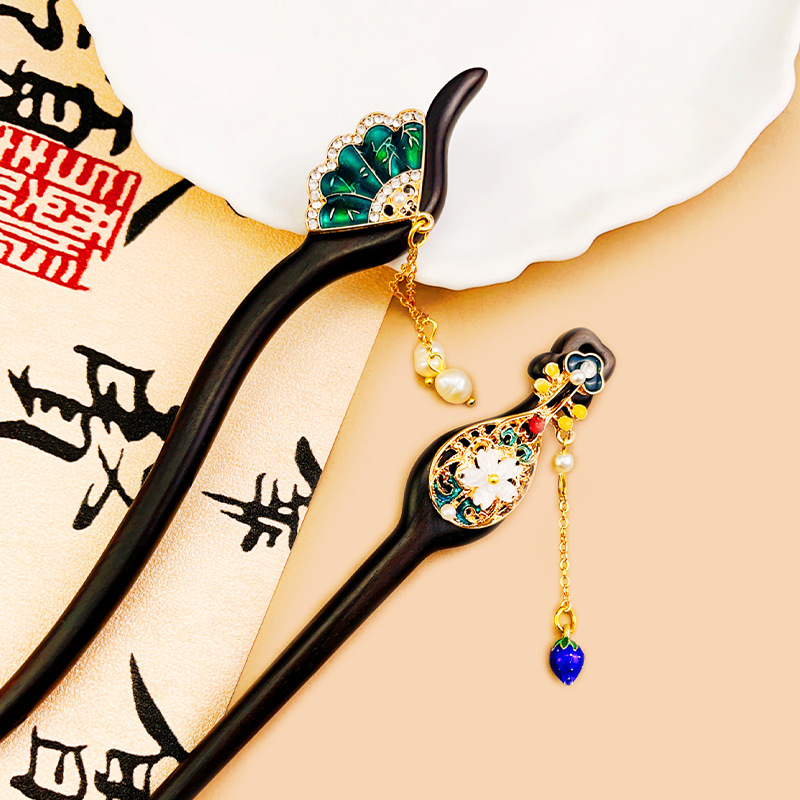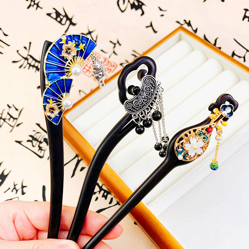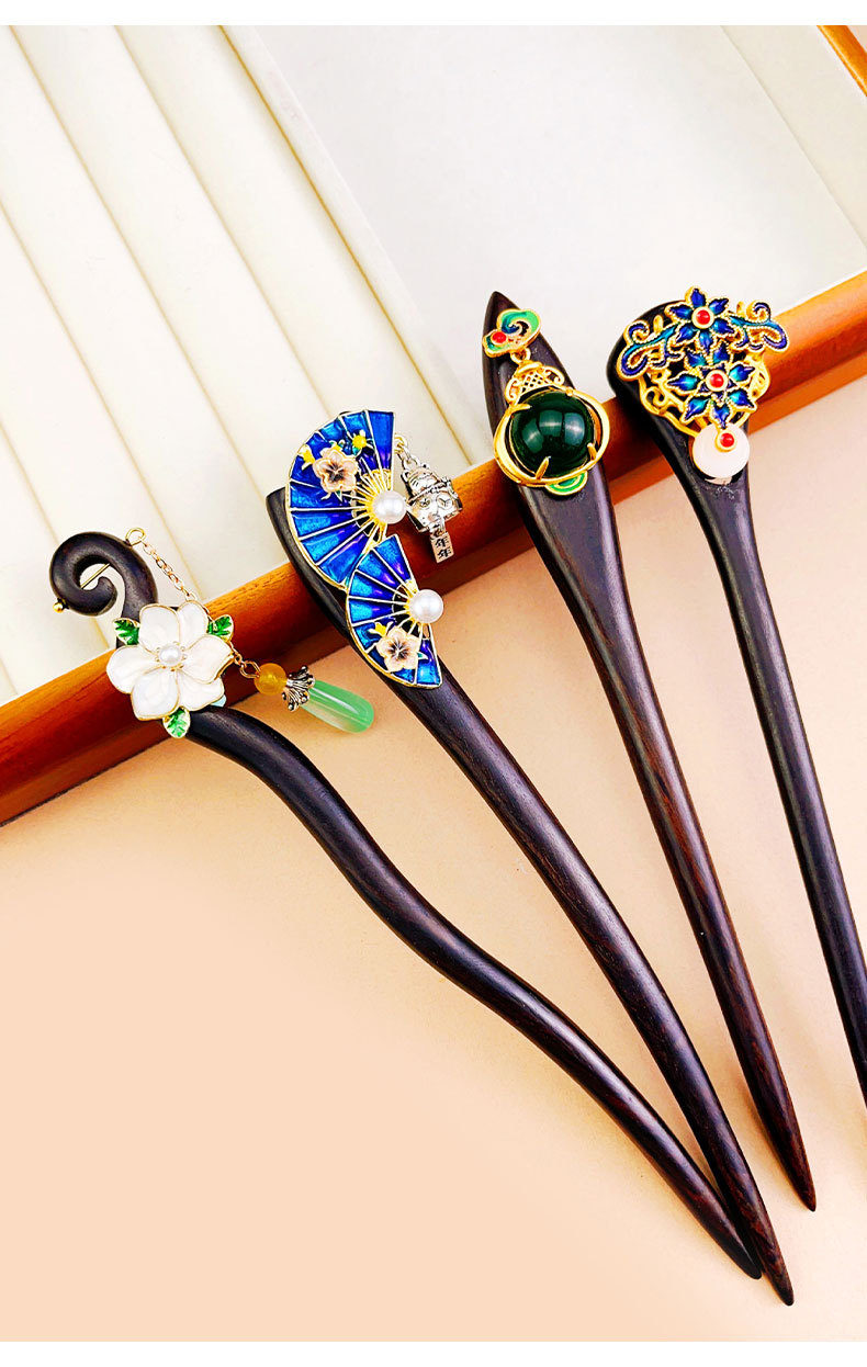 古风系列发簪精工紫光黑檀木簪子古典美女流苏步摇高级感气质发饰