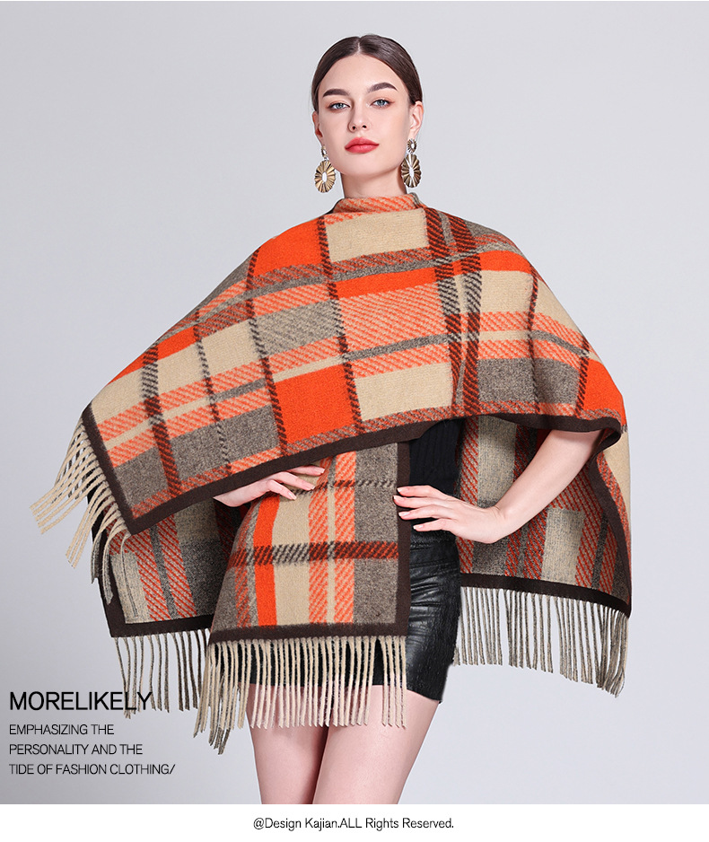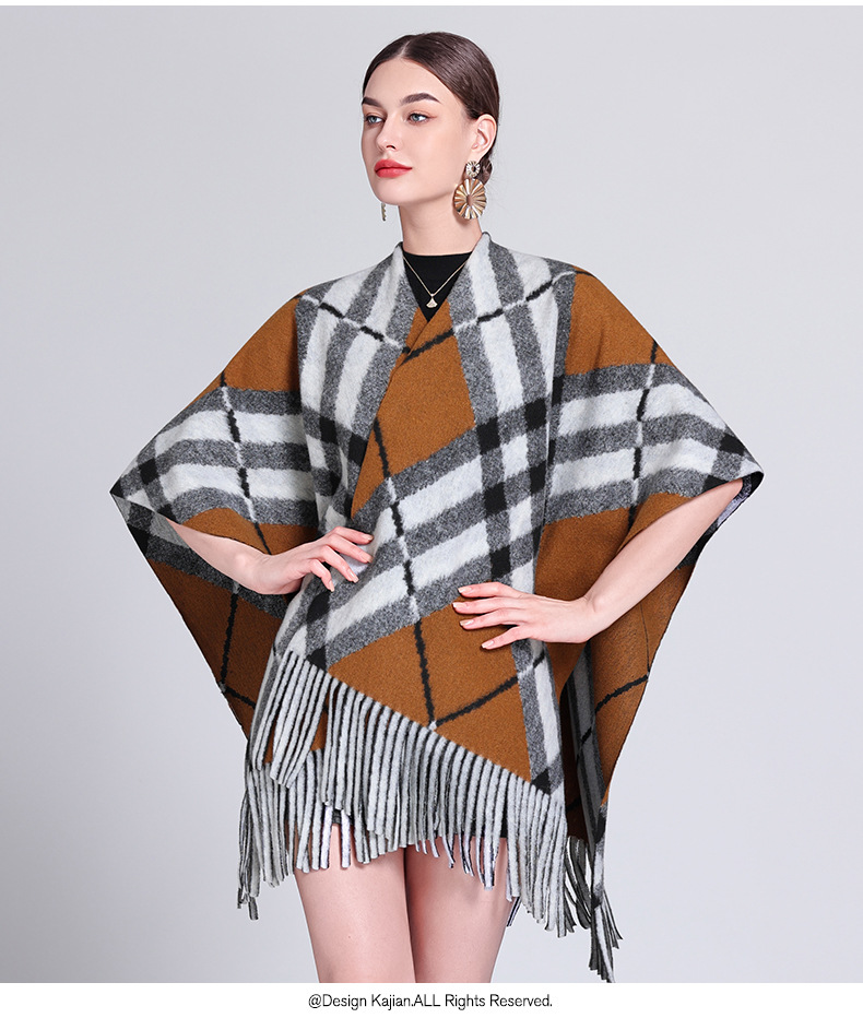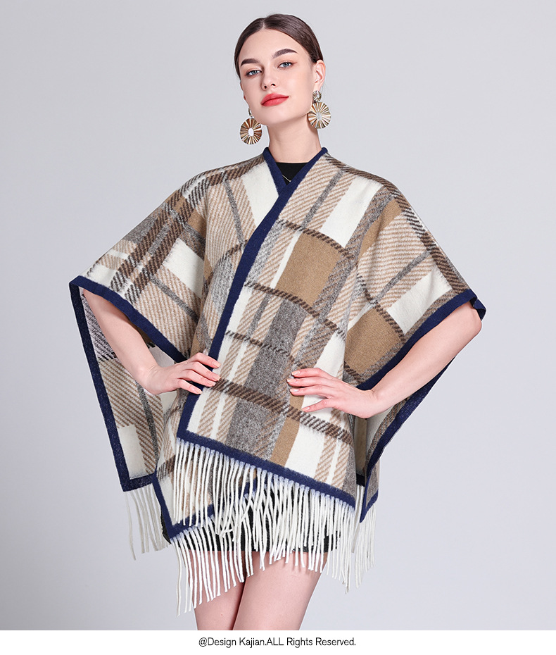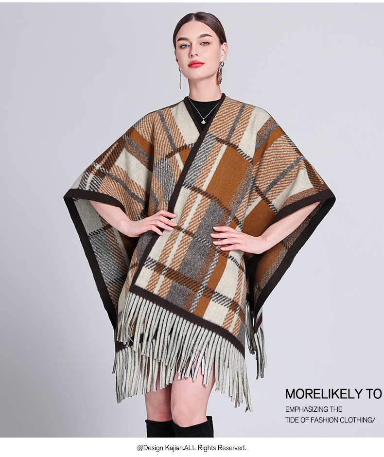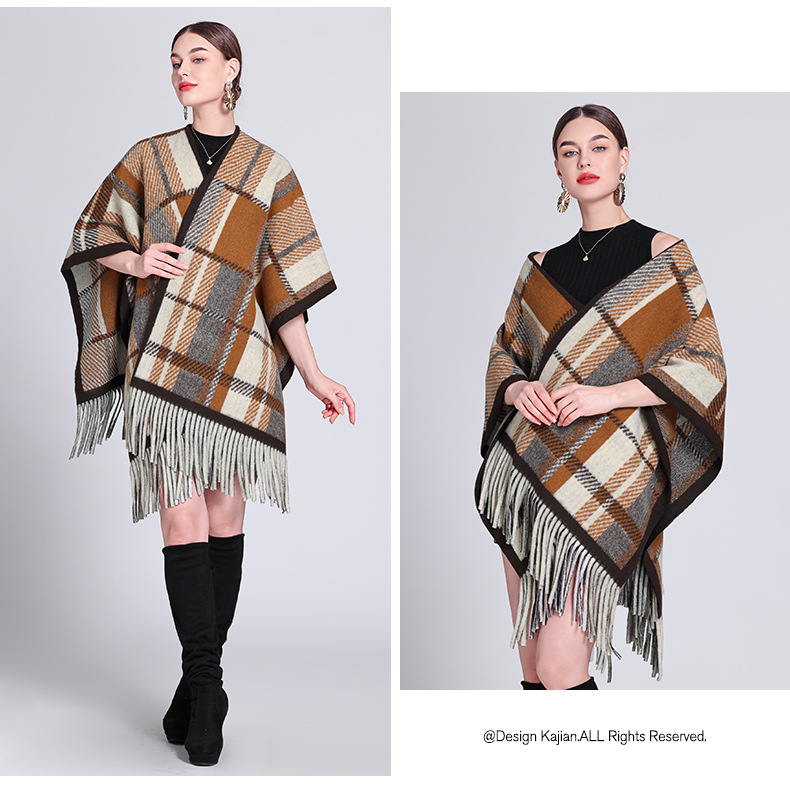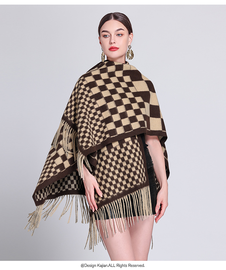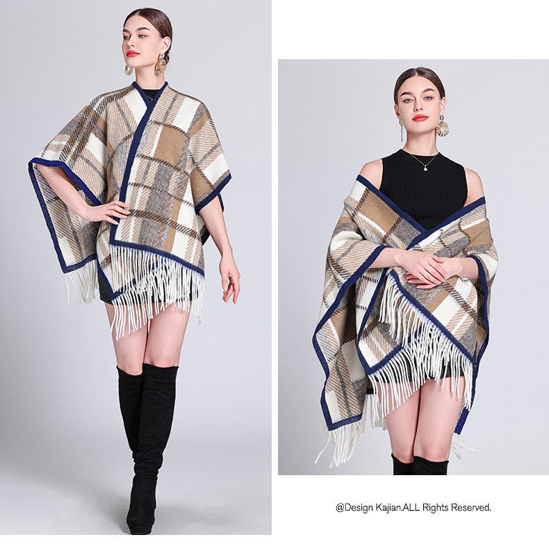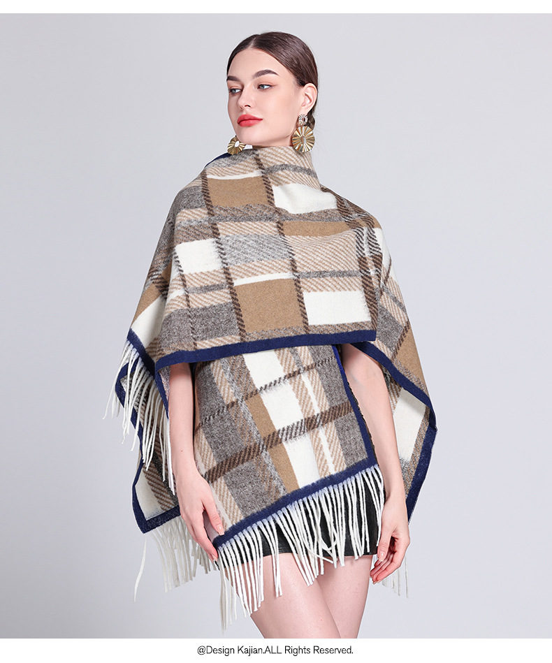 秋冬新款格子披肩外搭气质流苏披肩斗篷披风复古保暖围巾外套女