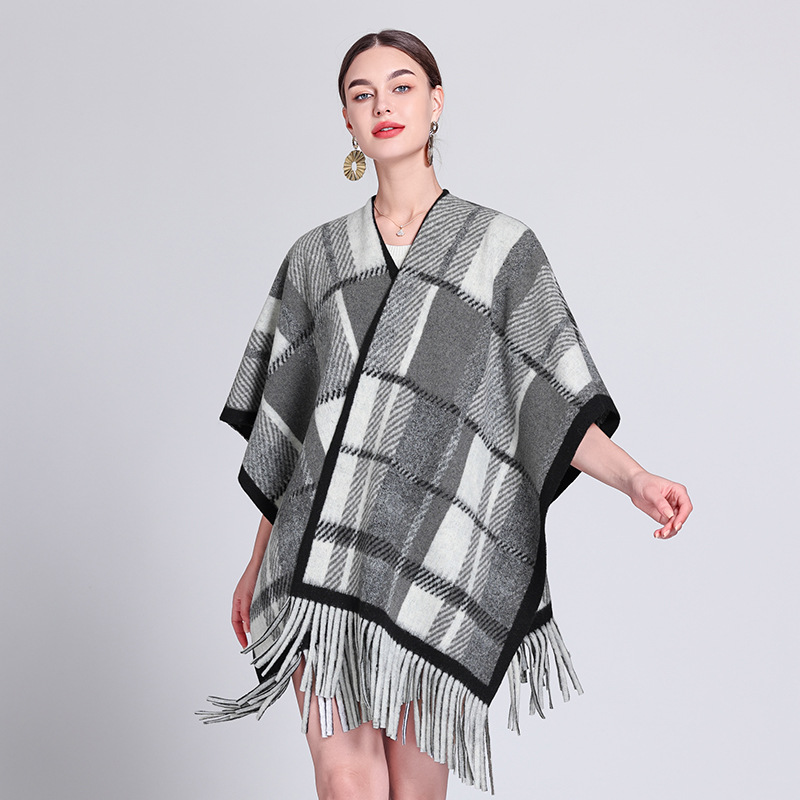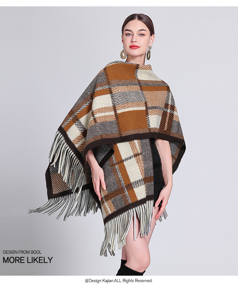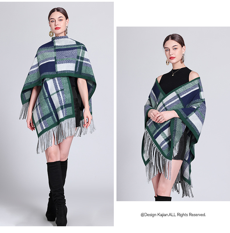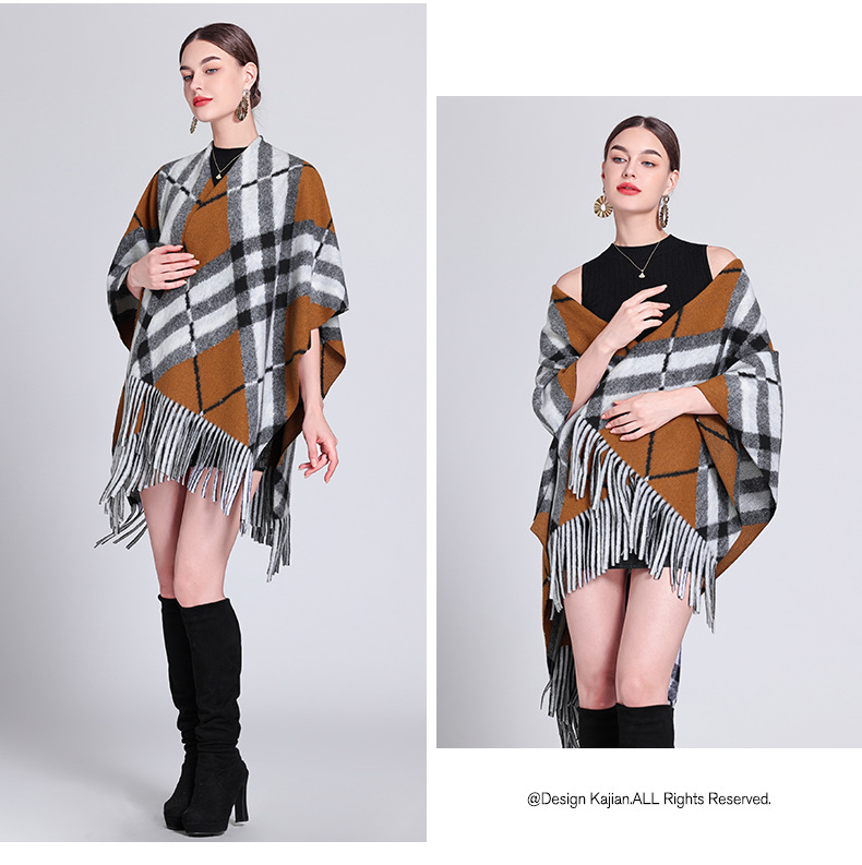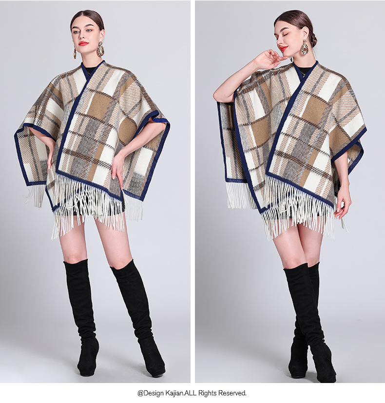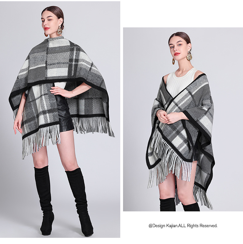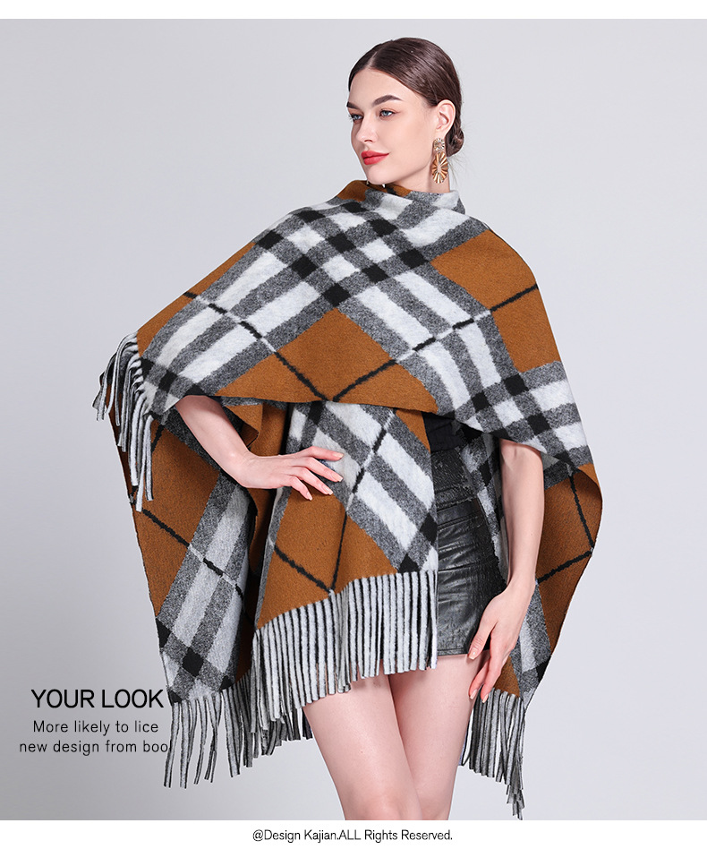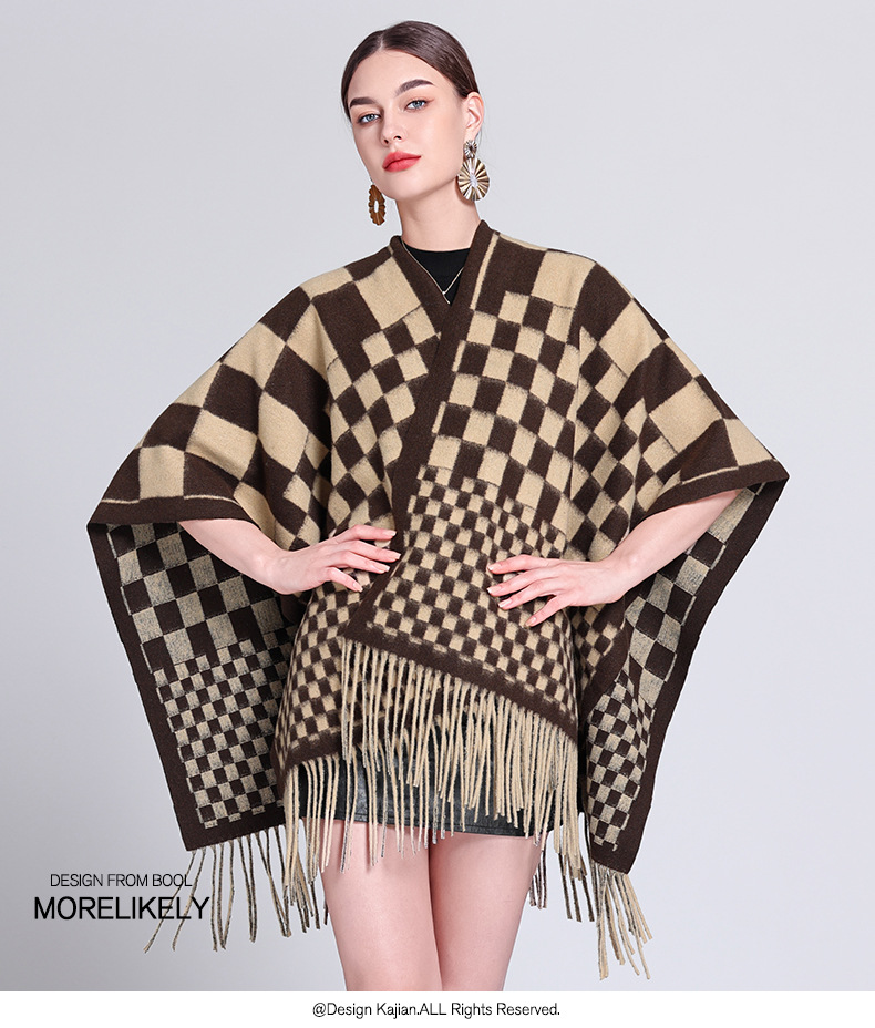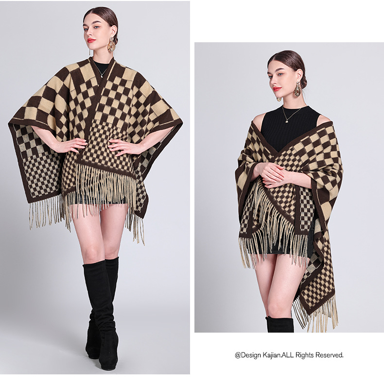 秋冬新款格子披肩外搭气质流苏披肩斗篷披风复古保暖围巾外套女