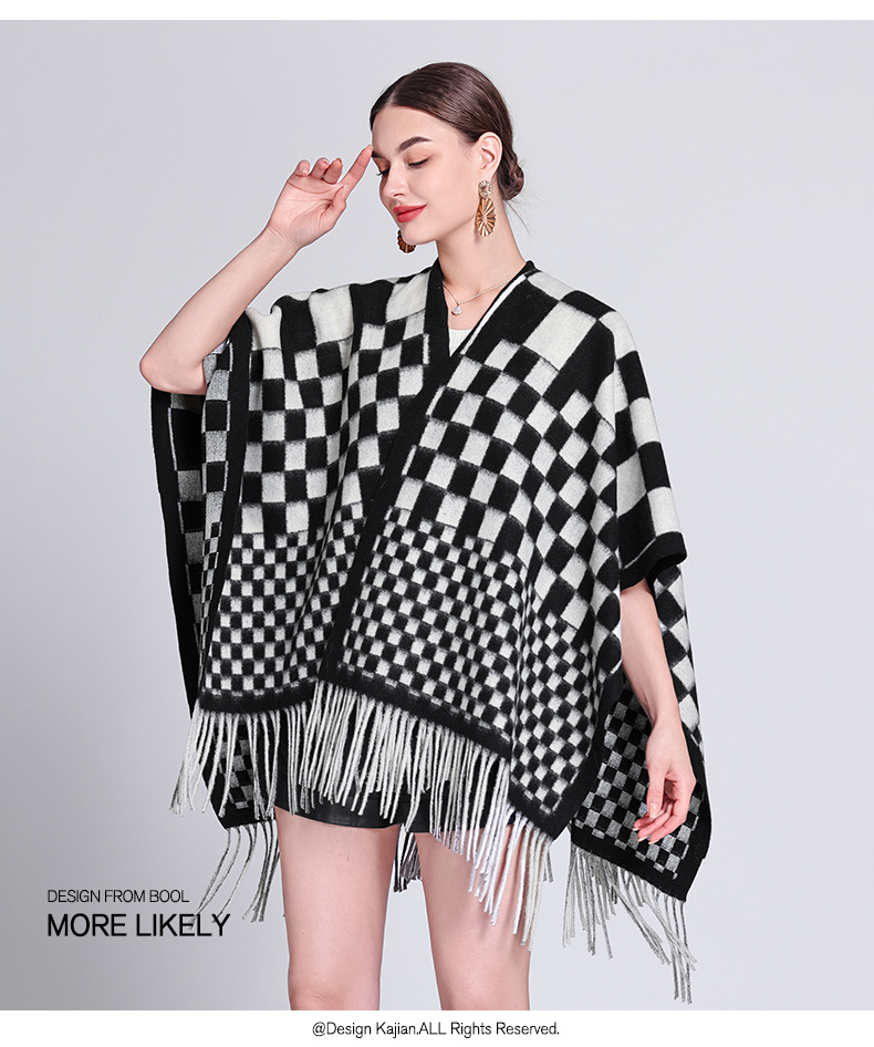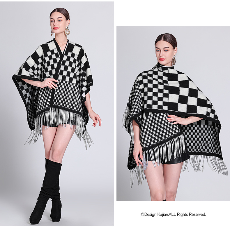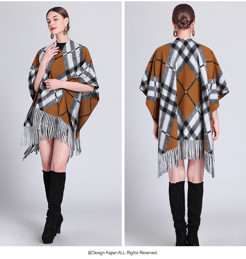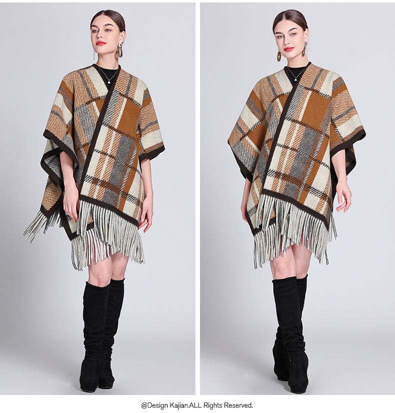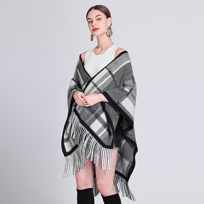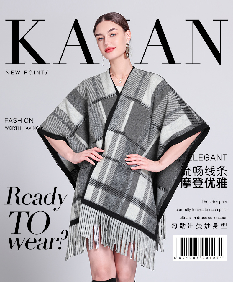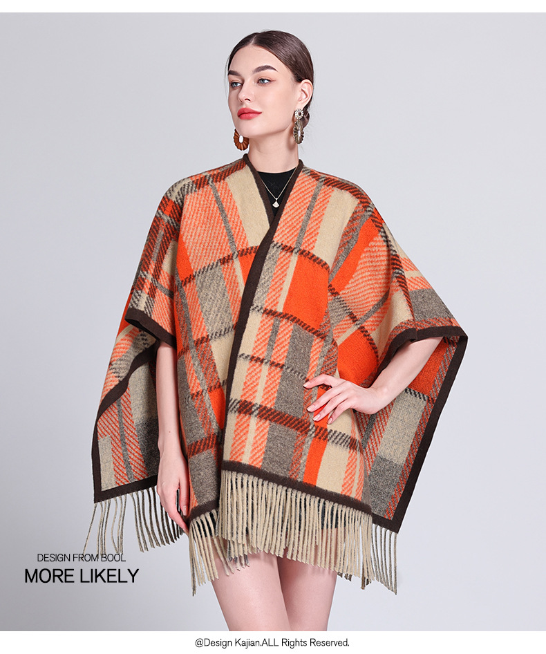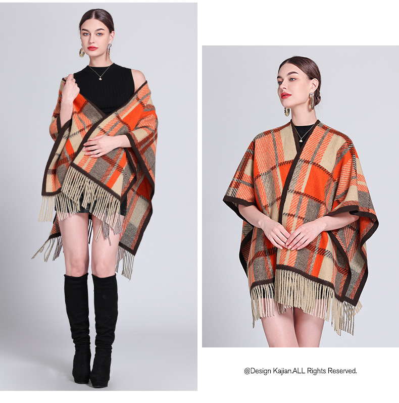秋冬新款格子披肩外搭气质流苏披肩斗篷披风复古保暖围巾外套女