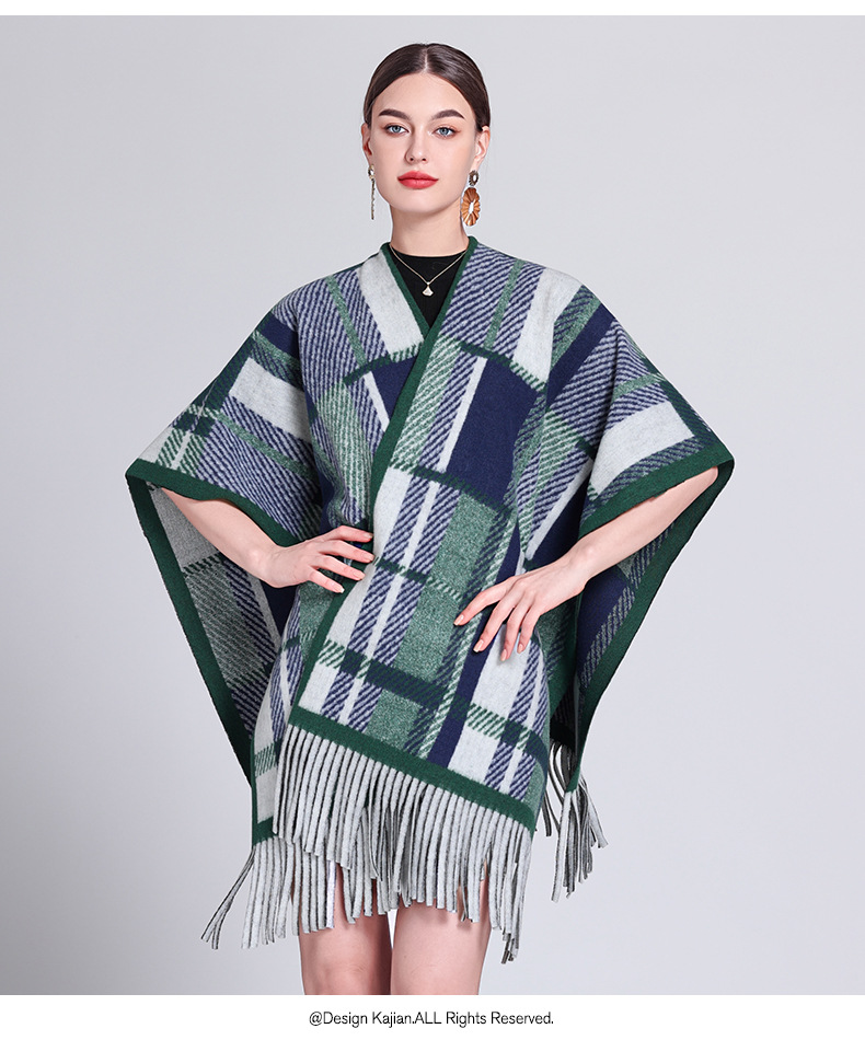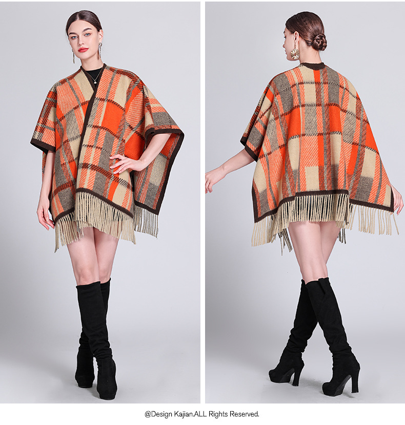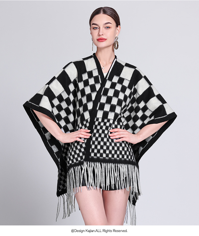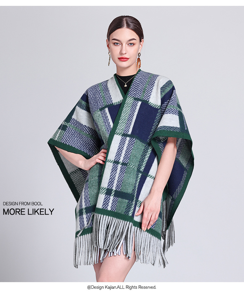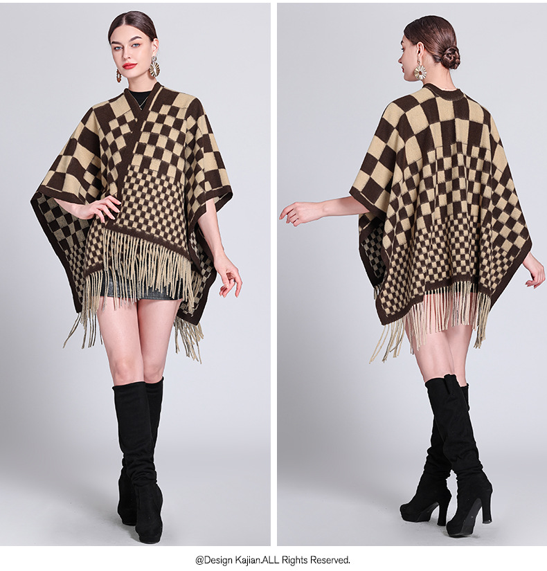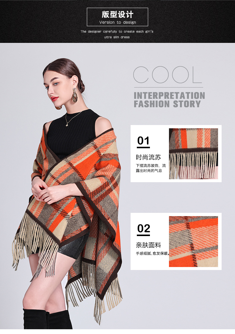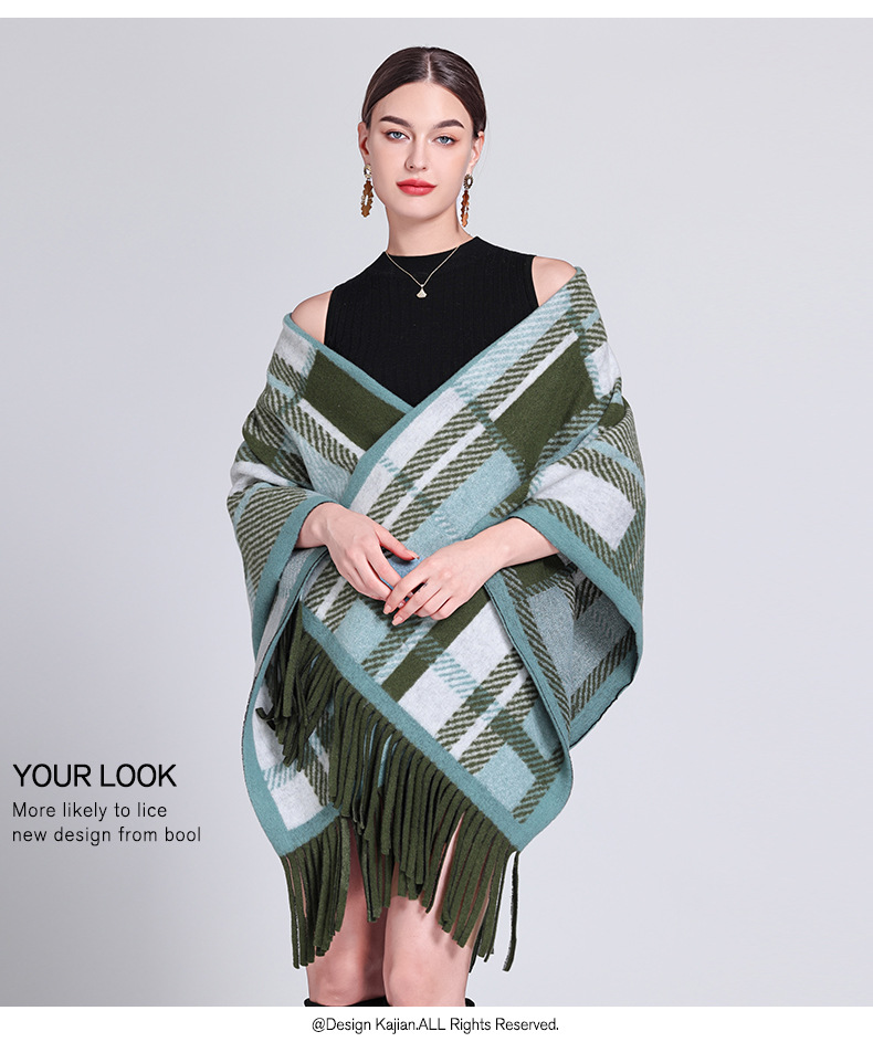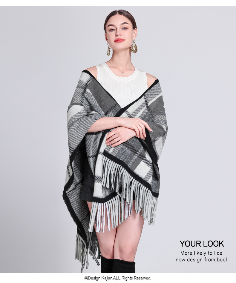 秋冬新款格子披肩外搭气质流苏披肩斗篷披风复古保暖围巾外套女
