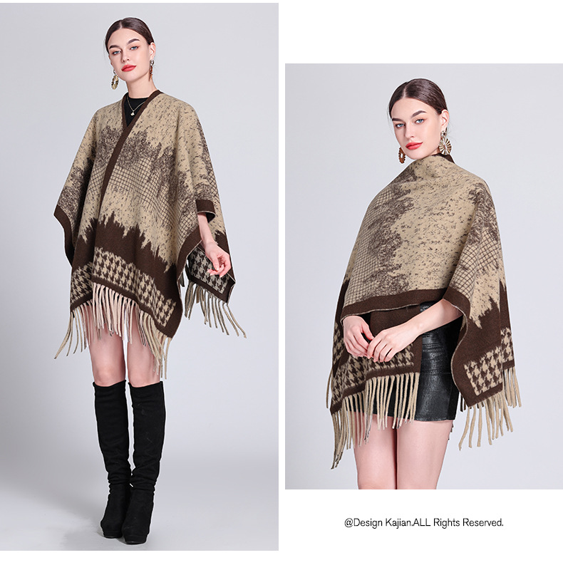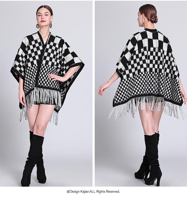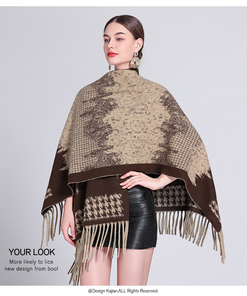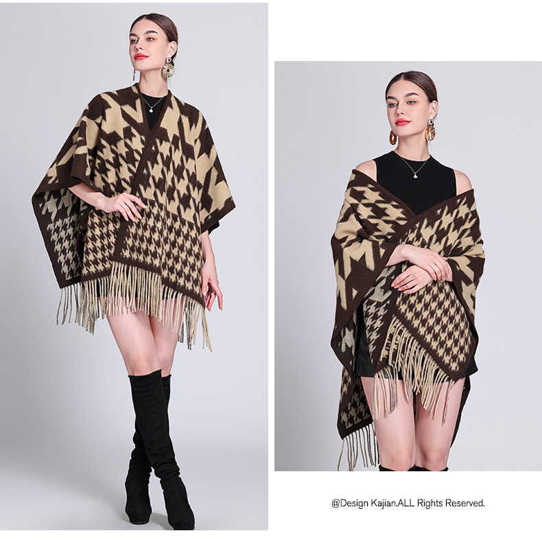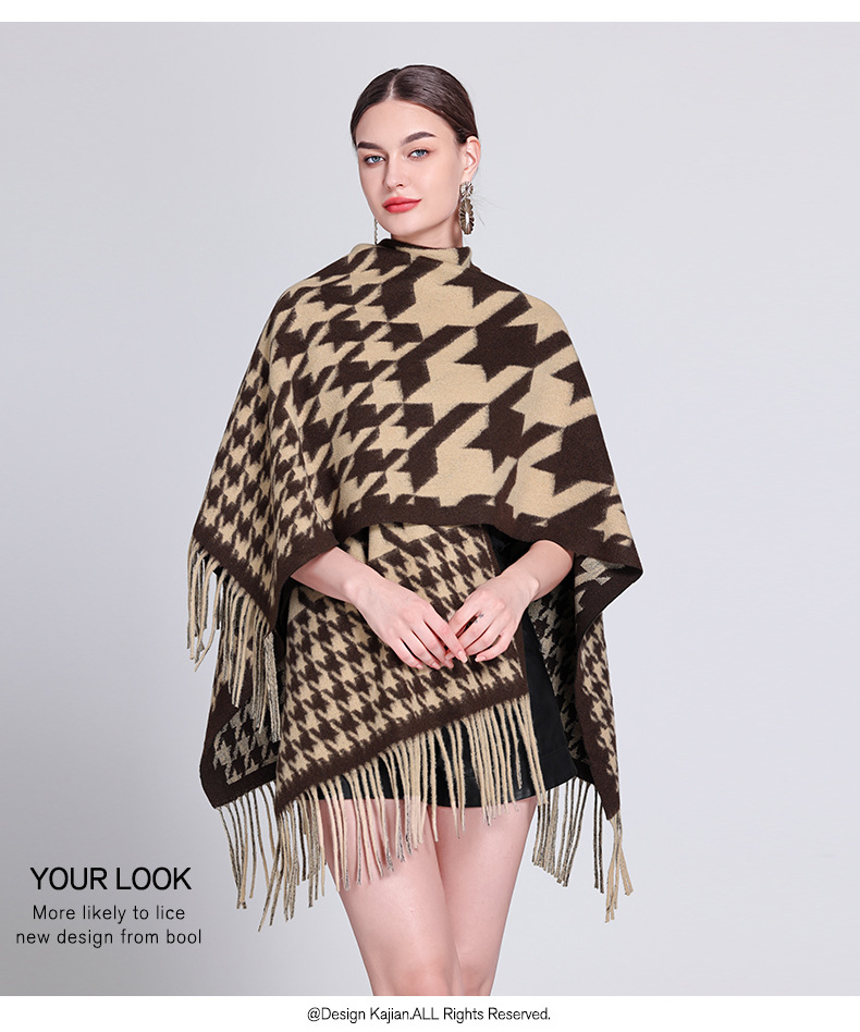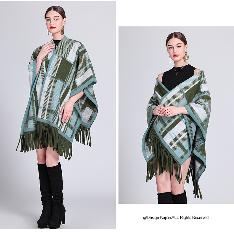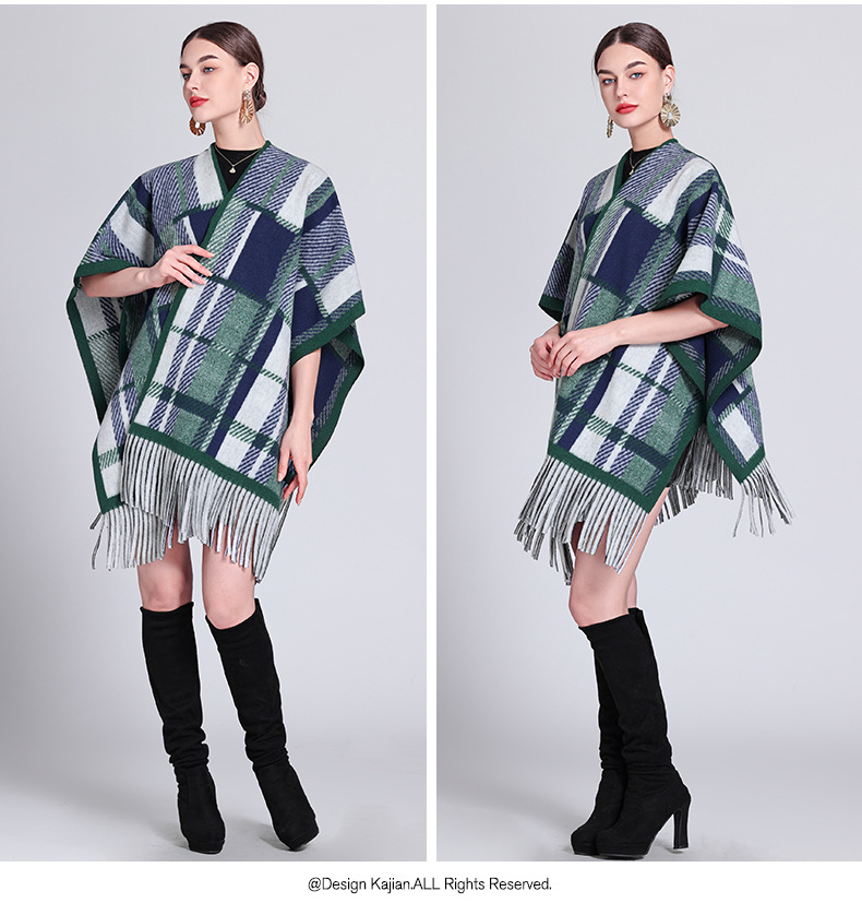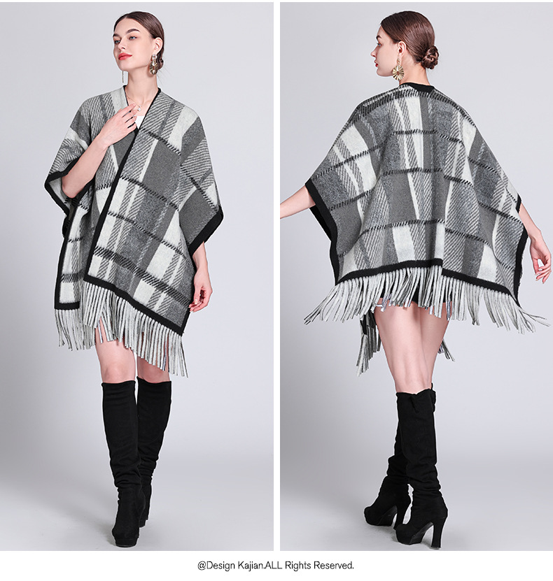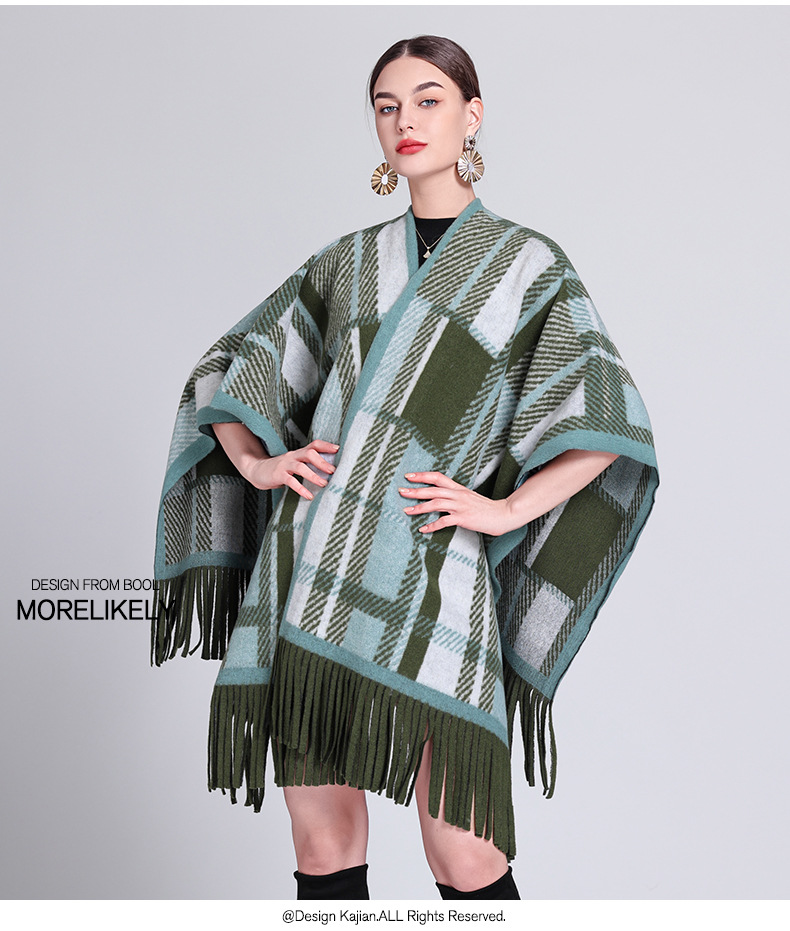 秋冬新款格子披肩外搭气质流苏披肩斗篷披风复古保暖围巾外套女