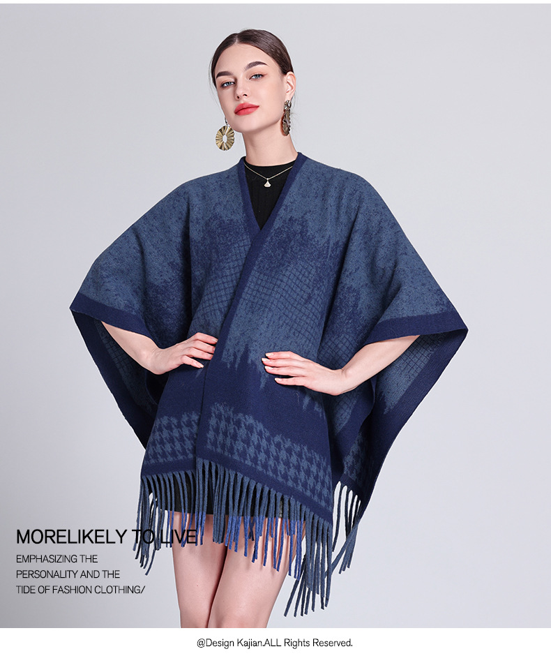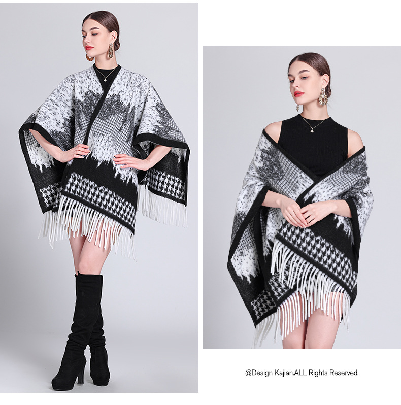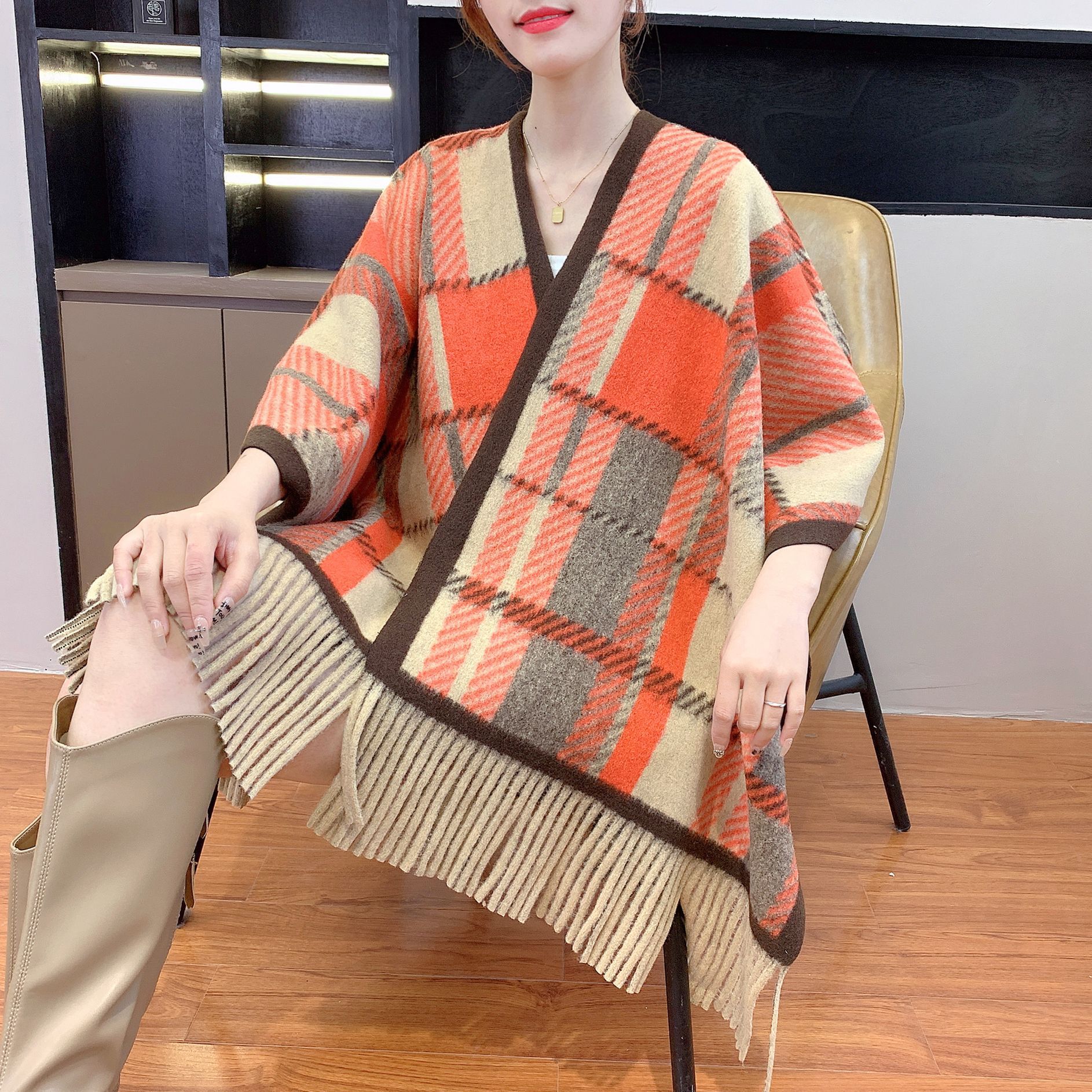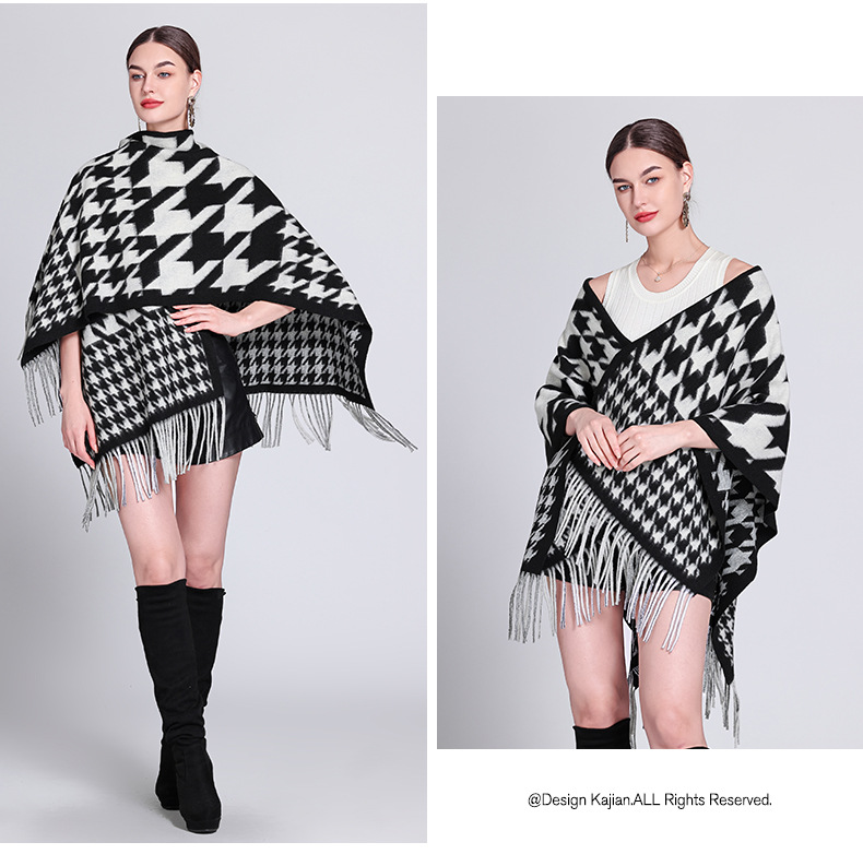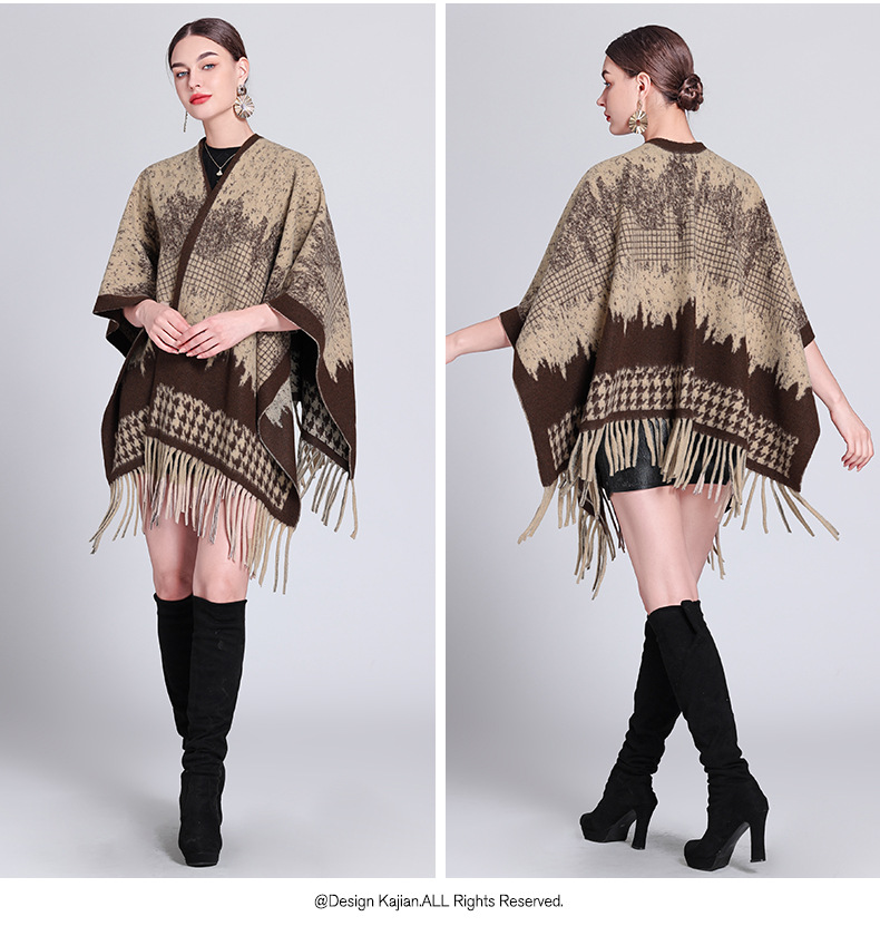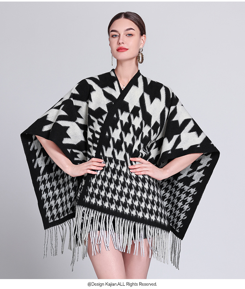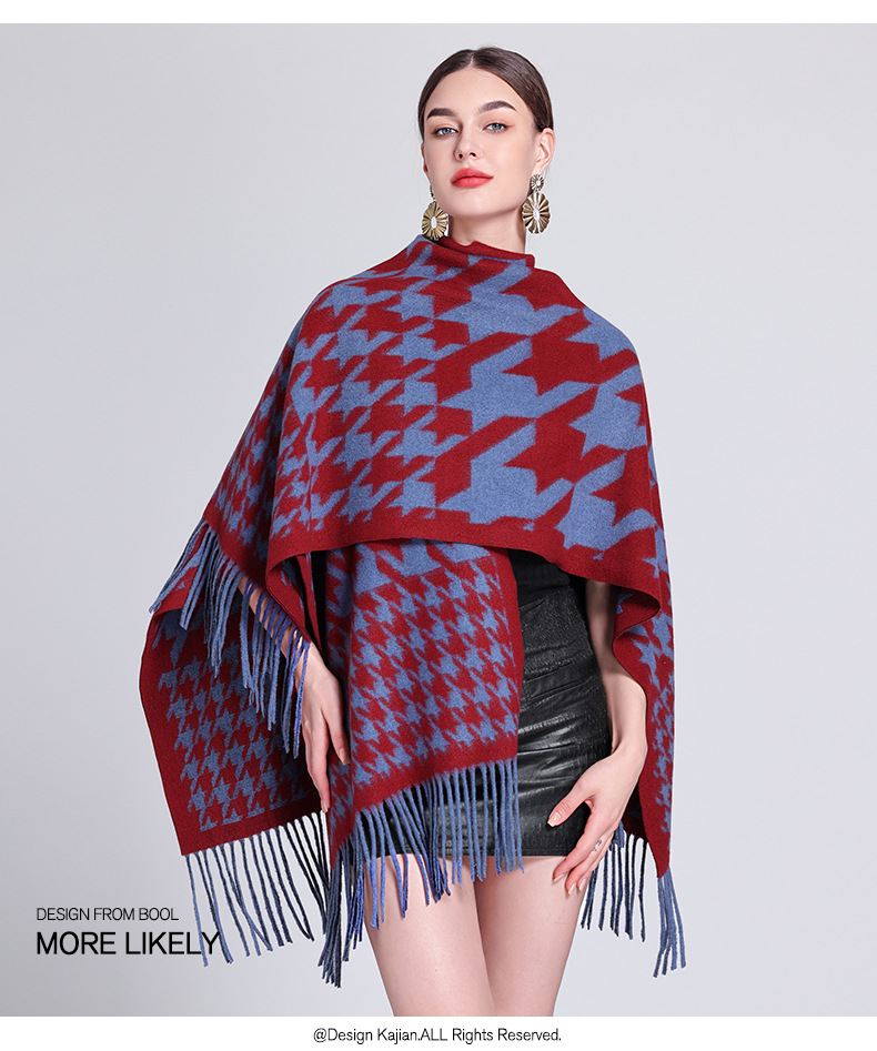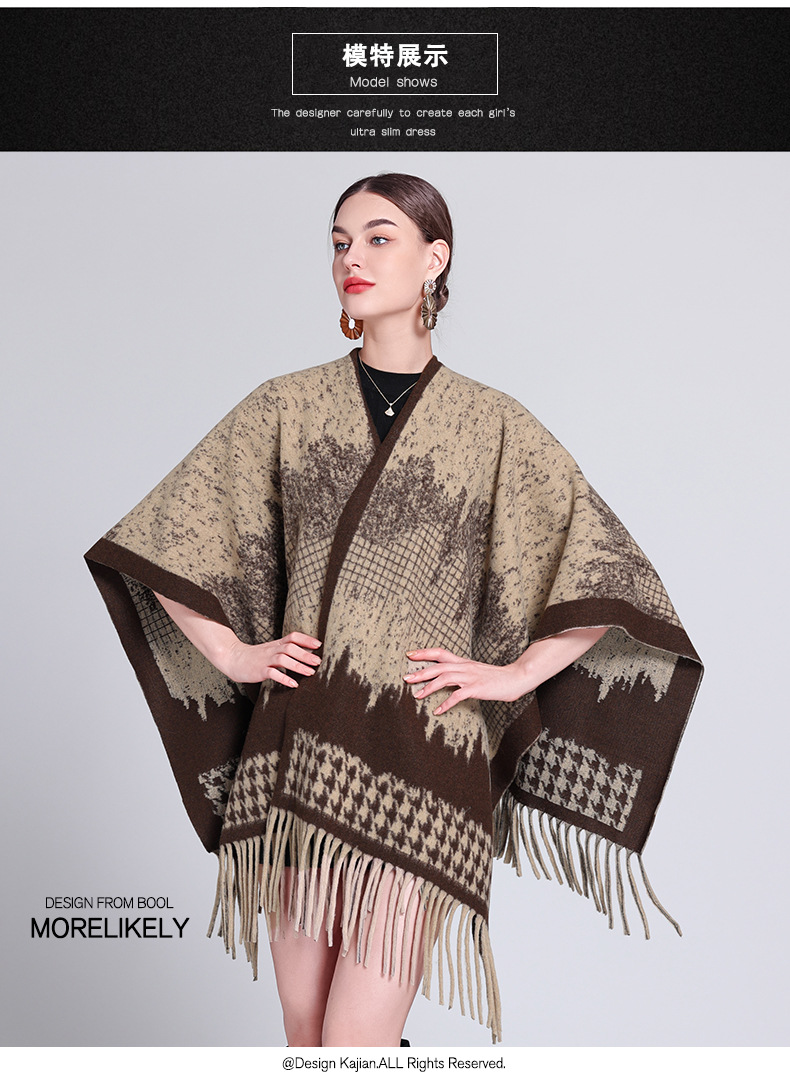 秋冬新款格子披肩外搭气质流苏披肩斗篷披风复古保暖围巾外套女