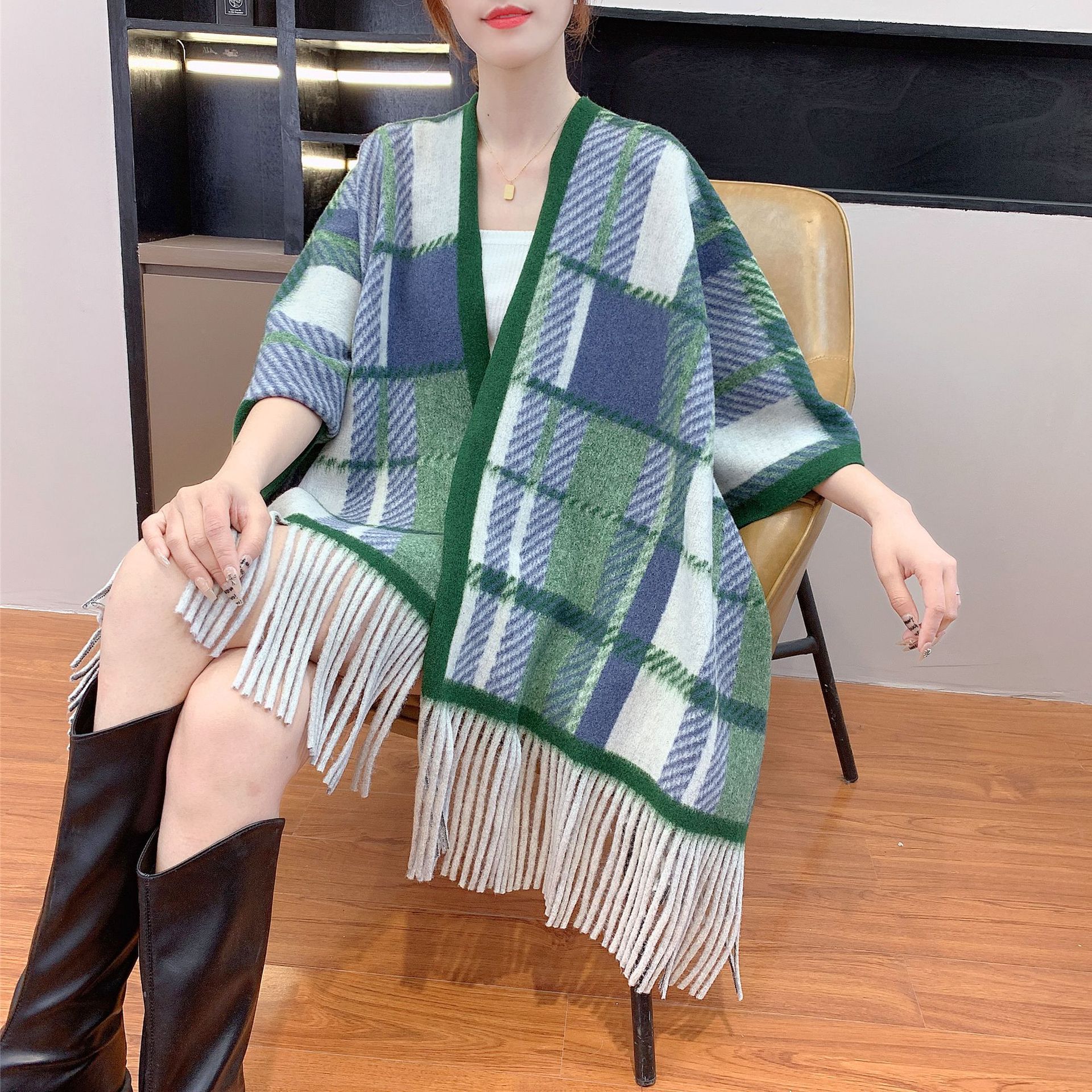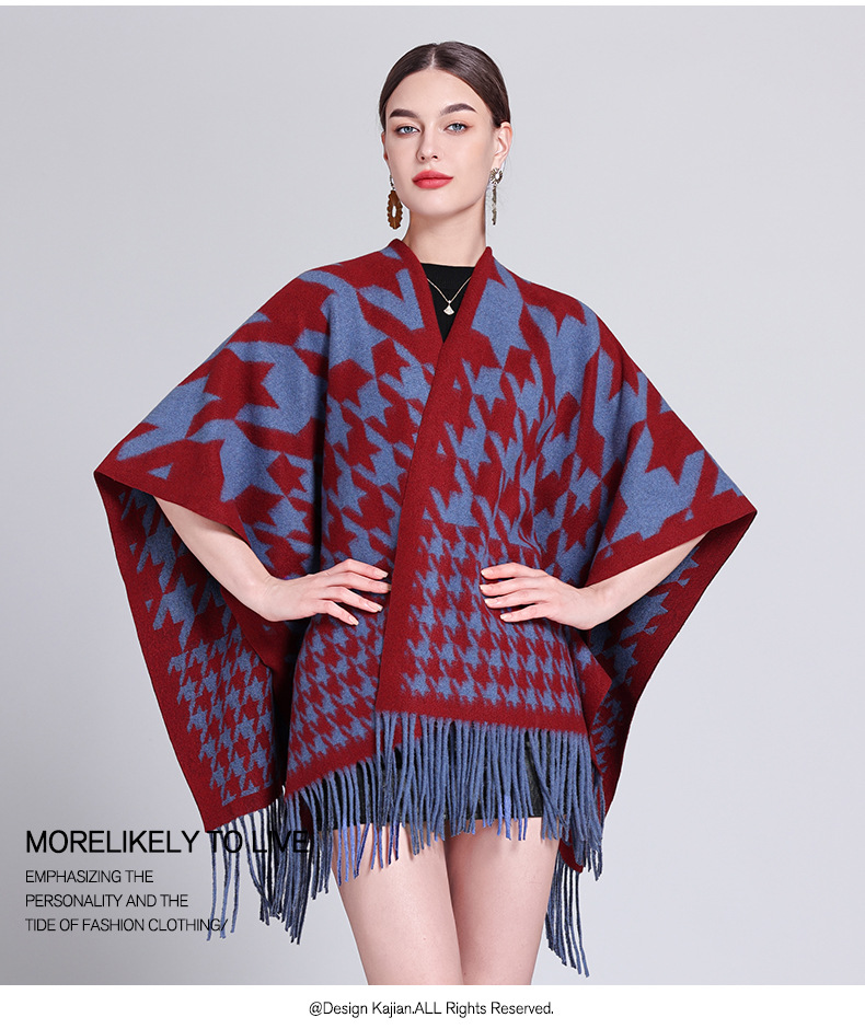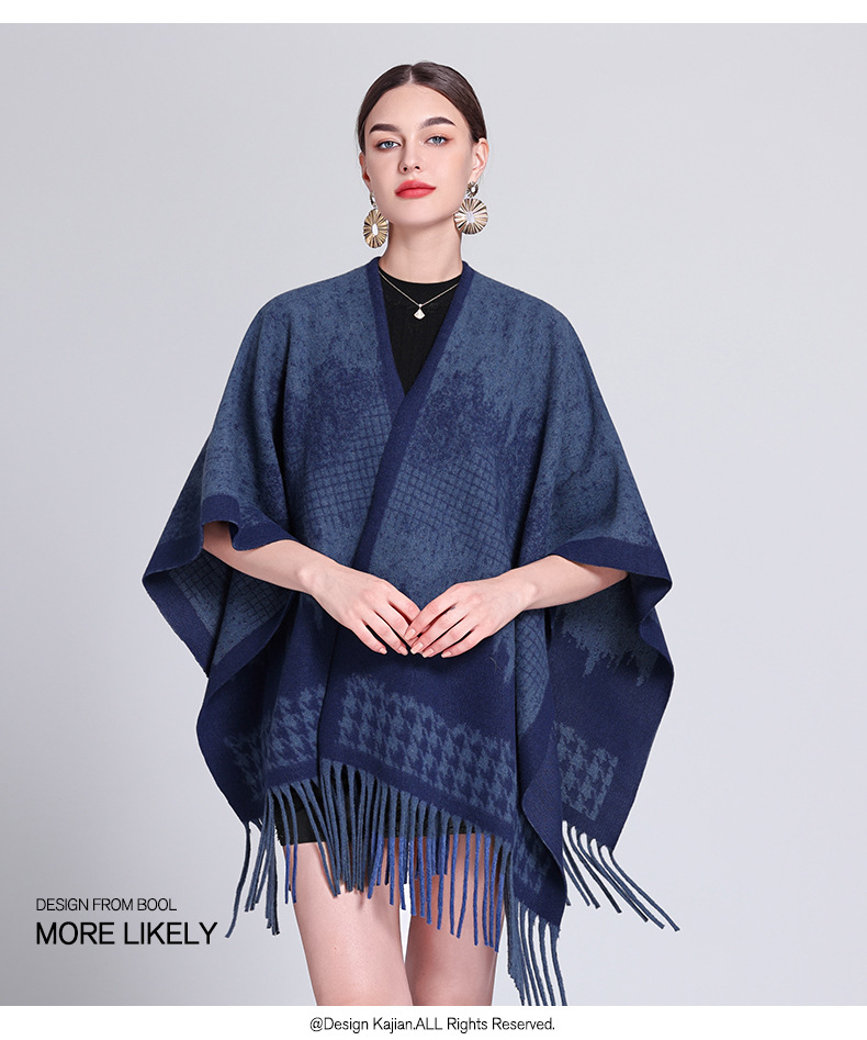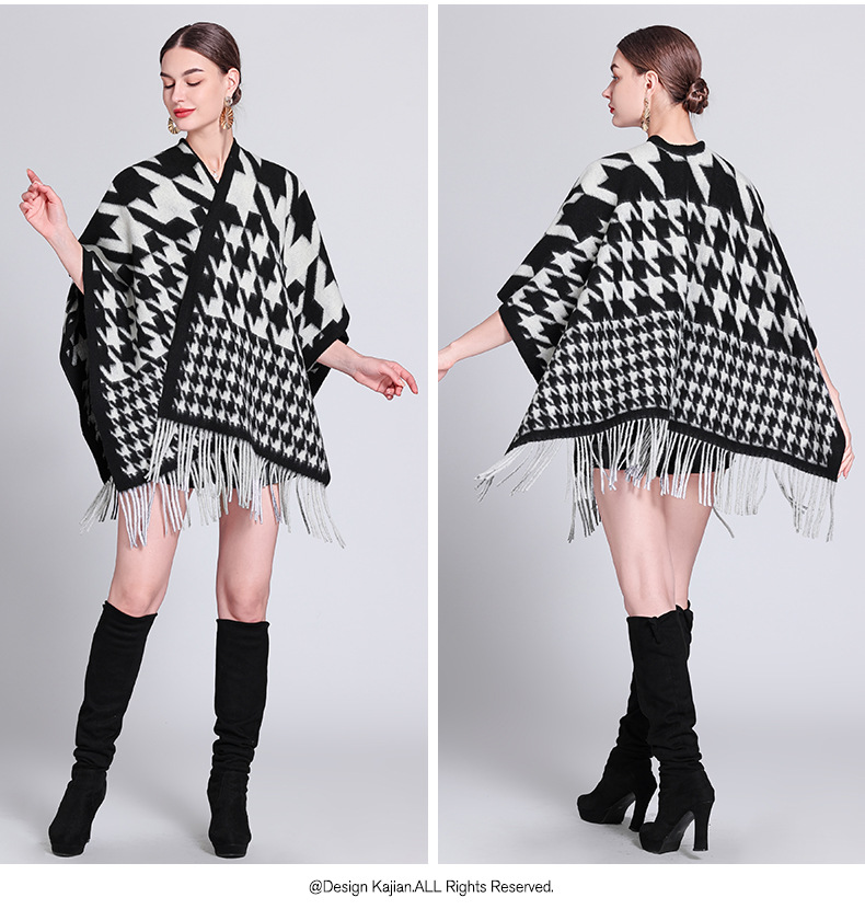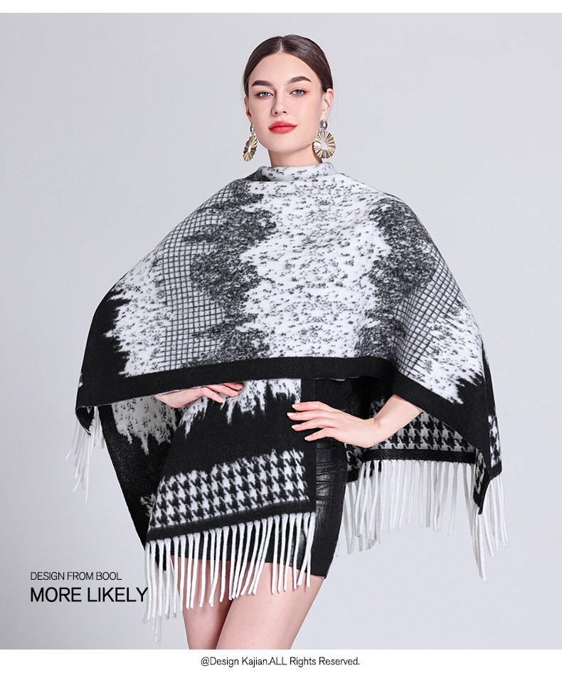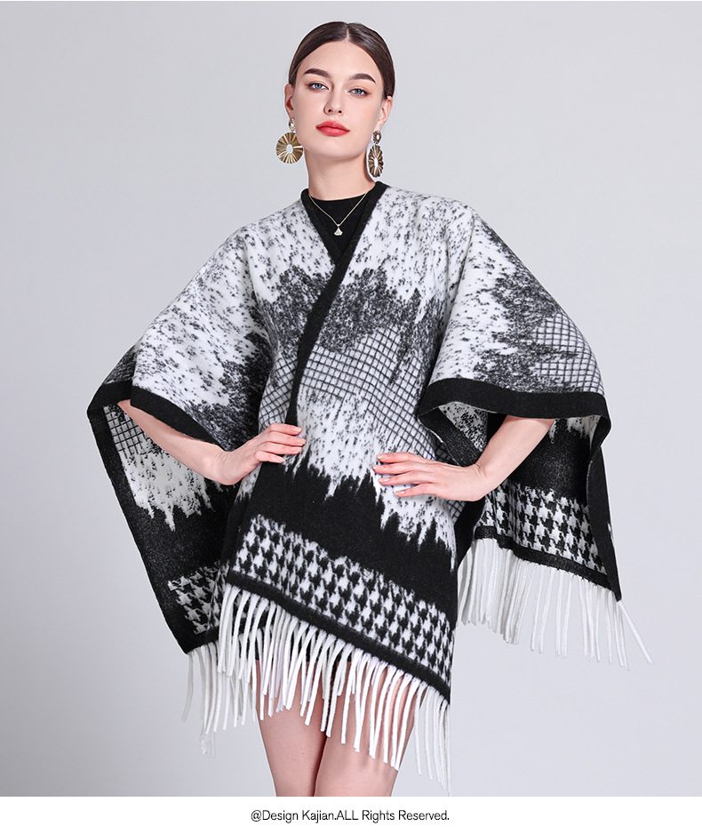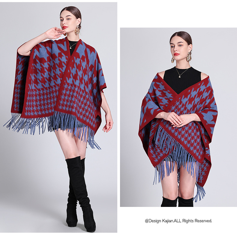 秋冬新款格子披肩外搭气质流苏披肩斗篷披风复古保暖围巾外套女
