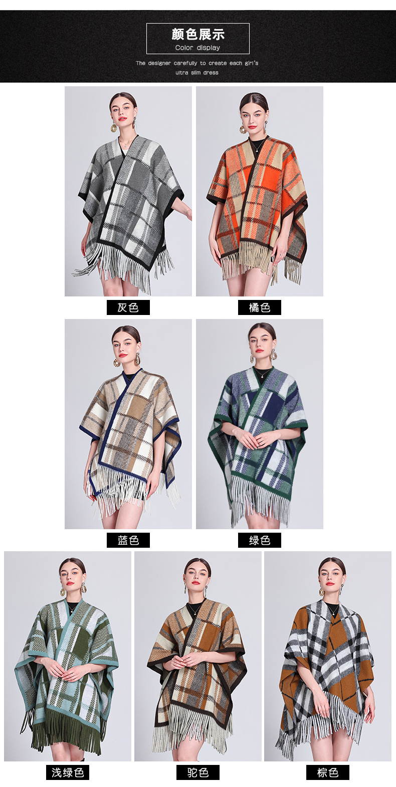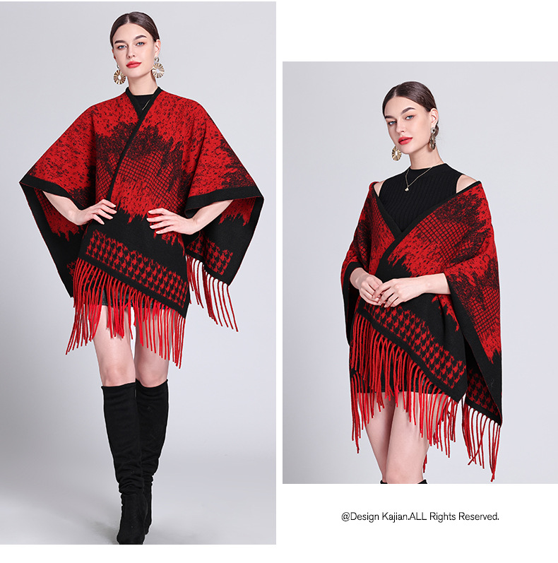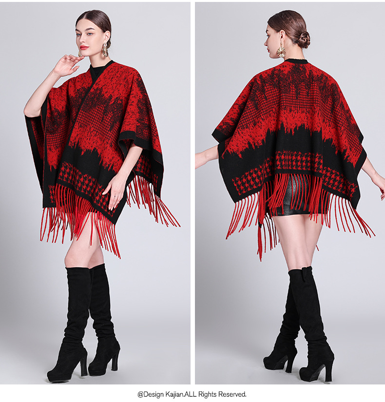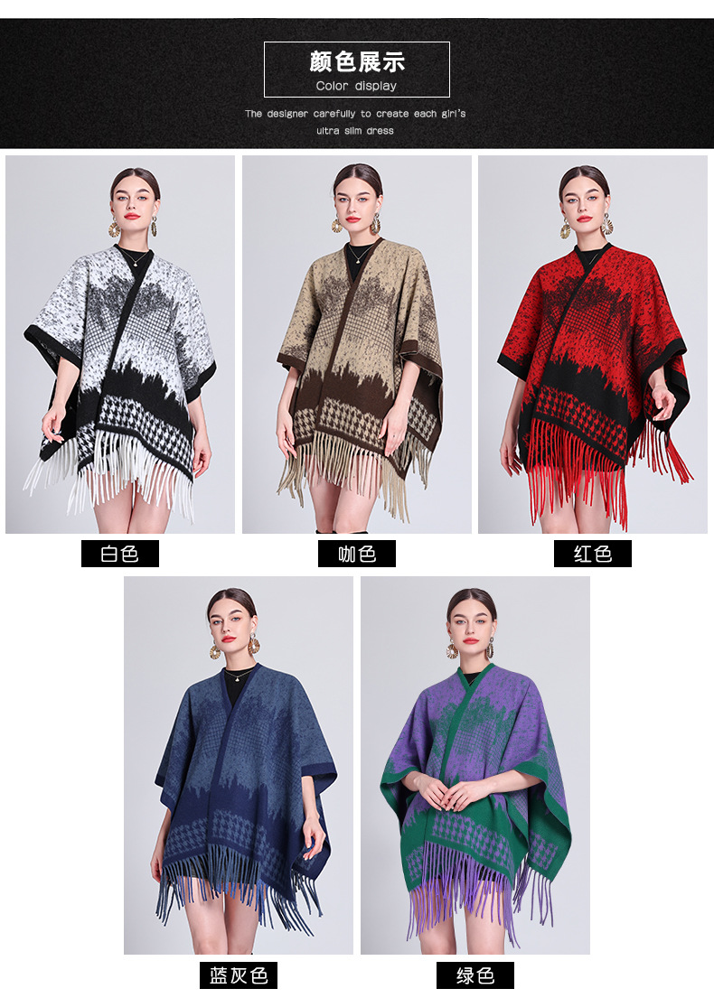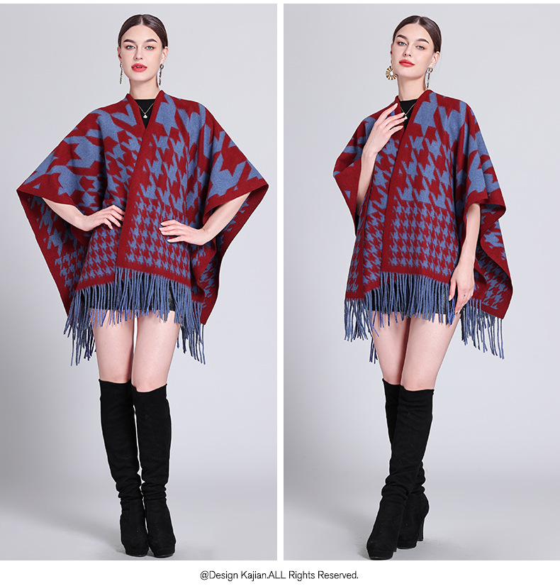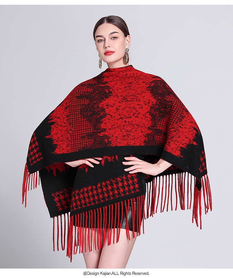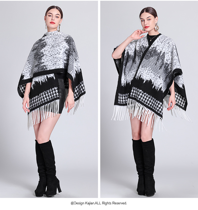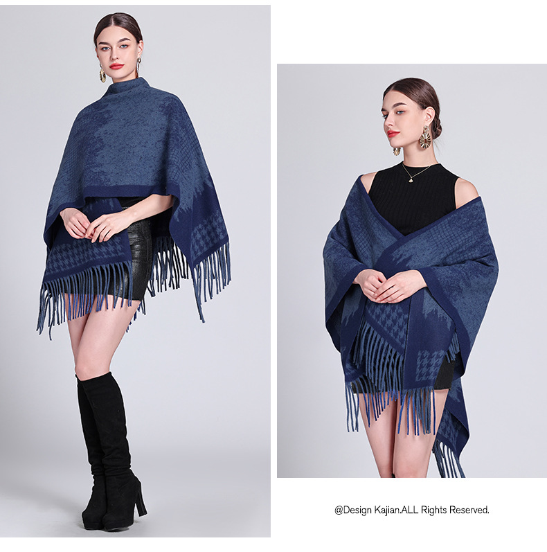 秋冬新款格子披肩外搭气质流苏披肩斗篷披风复古保暖围巾外套女