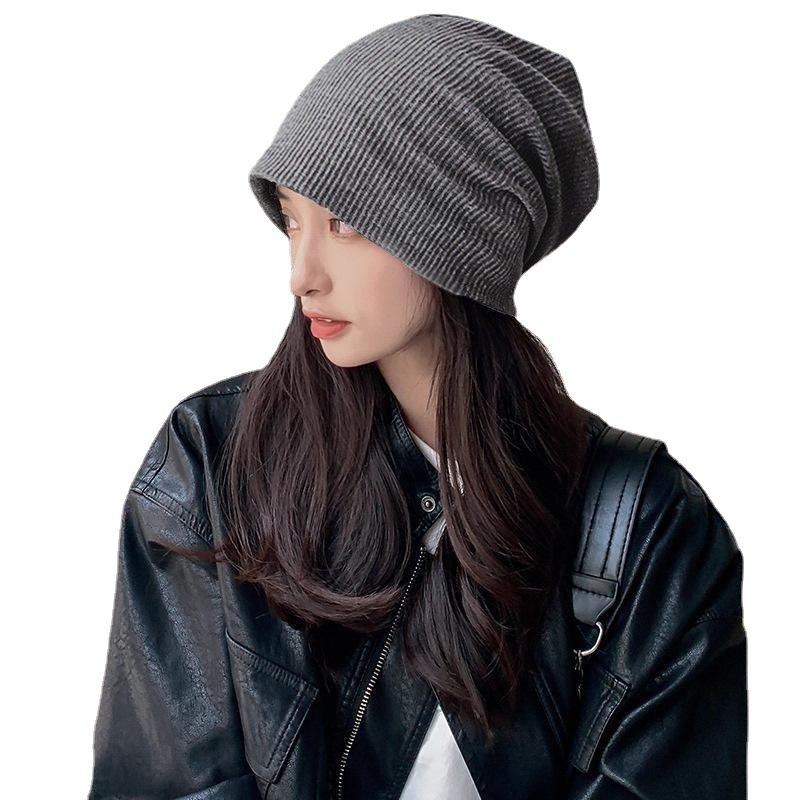 韩版针织堆堆帽子女春秋休闲百搭大头围显脸小套头冷帽月子包头帽