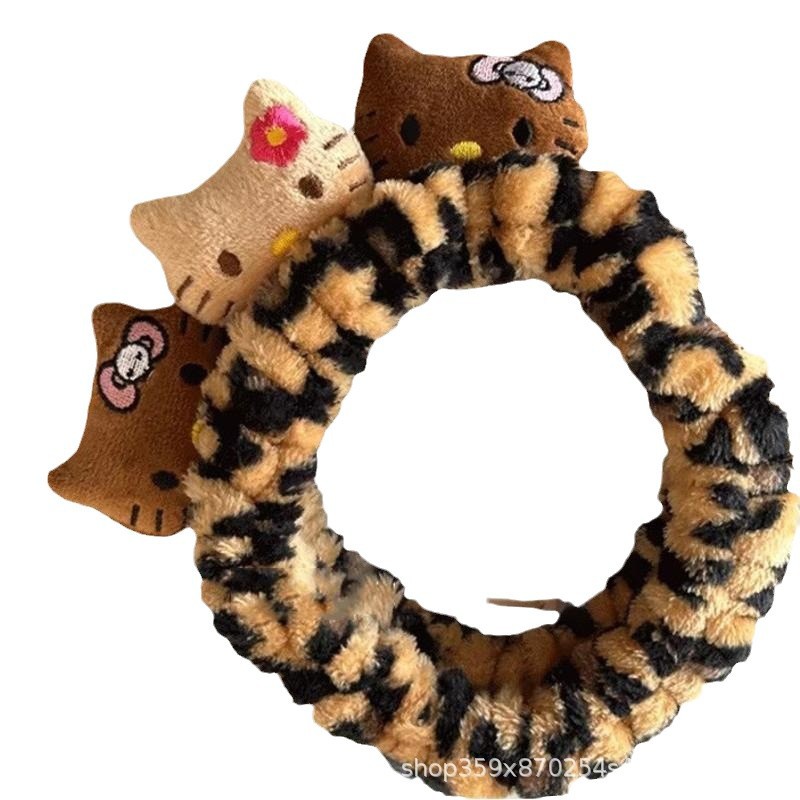 可爱Kitty猫毛绒豹纹发箍女洗脸化妆敷面膜专用卡通头箍发饰批发