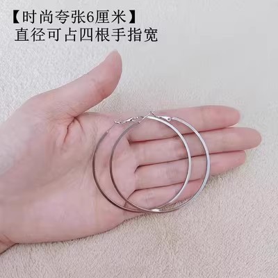 925纯银针耳圈防过敏耳饰品大小圈圈耳环日韩时尚圆环夸张潮流女