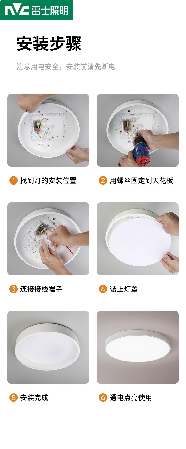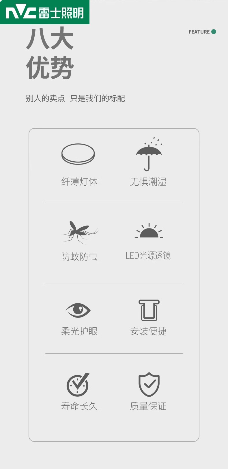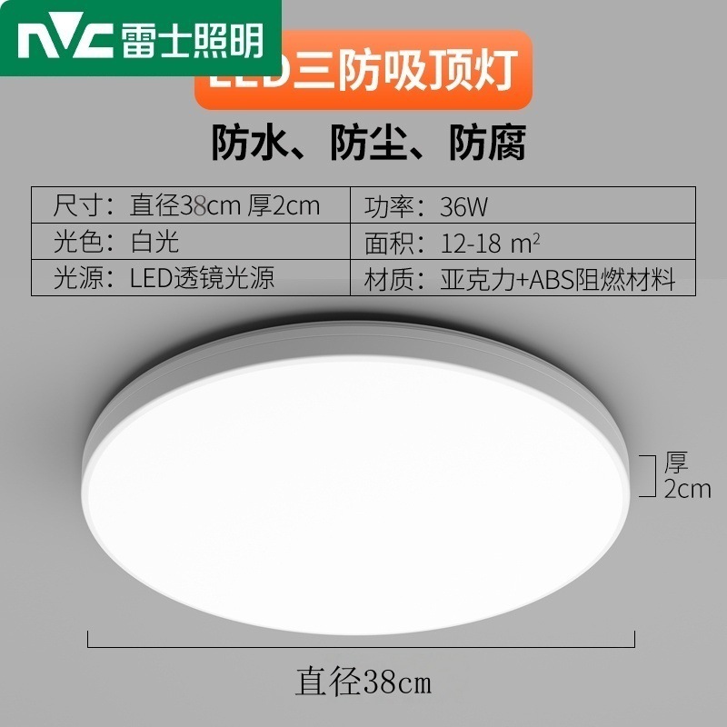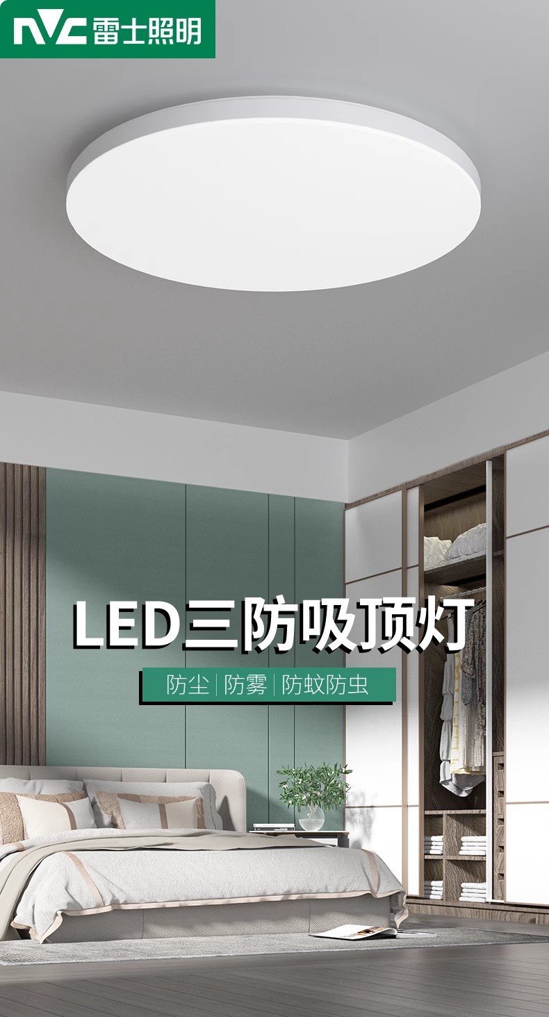 雷士照明led三防吸顶灯圆形卫生间浴室阳台卧室厨卫灯过道走廊